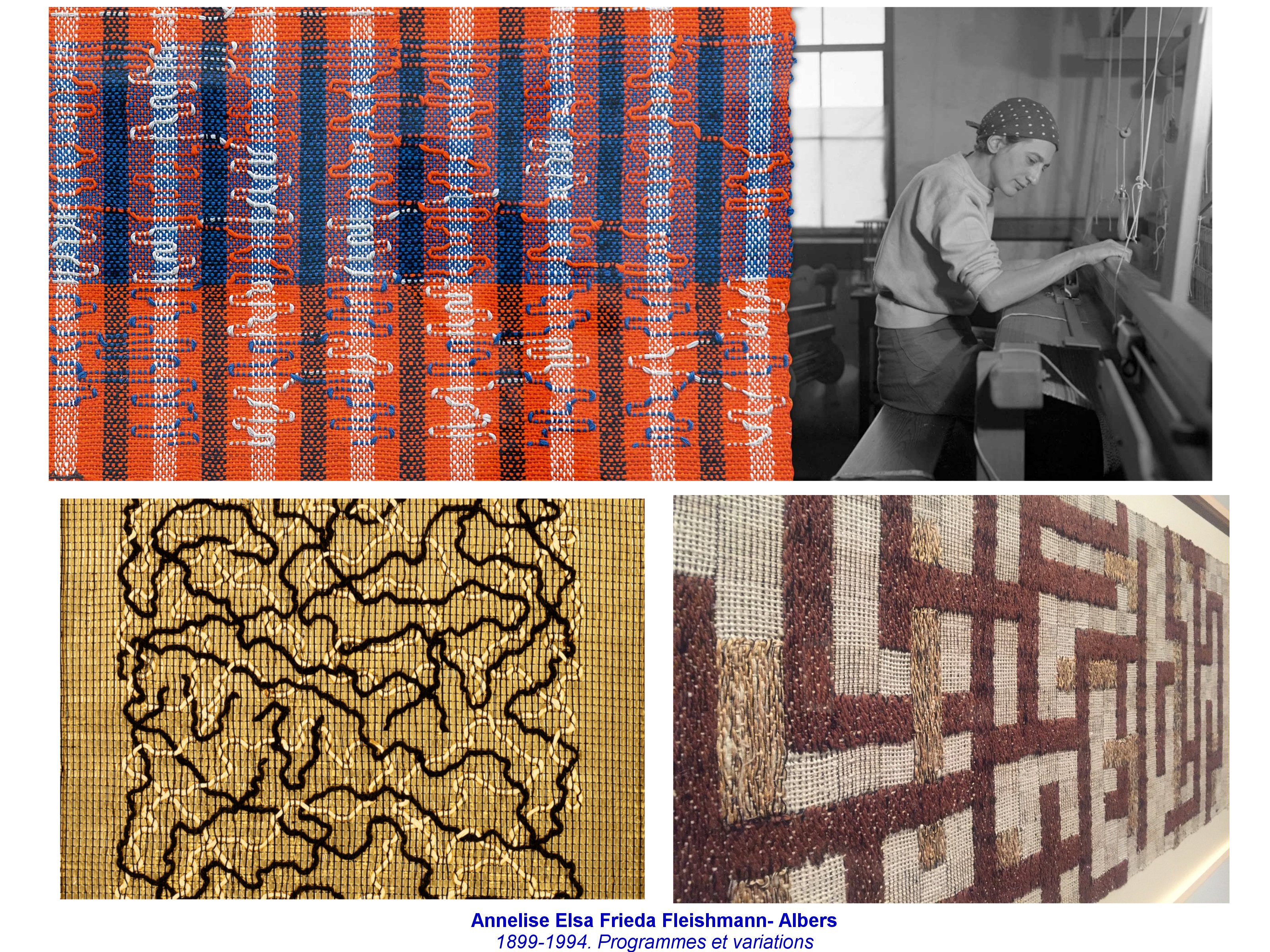 Tous ces travaux s’apparentent à une programmation , car les contraintes sont constantes, les matériaux aussi ( fils) et le croisement aussi. Restent à inventer des variations anticipées et/ou hasardeuses. Ces artistes composent des rythmes et des figures.On pourrait apparenter à lamusique sérielle contemporaine. De la tapisserie comme décore, elles font une expérience plastique .