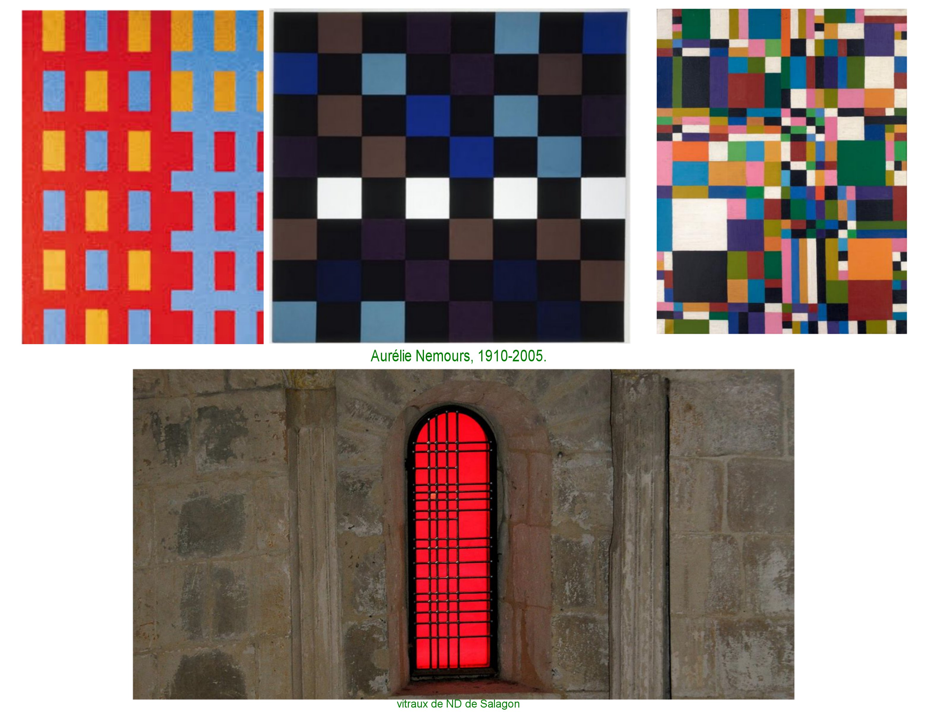 Bien que le lien ne soit pas encore clairement établi, on peut voir dans les travaux picturaux et sculpturaux d’ Aurélie Nemours, une continuation des recherches et des variations sérielles des ateliers textiles du bauhaus.