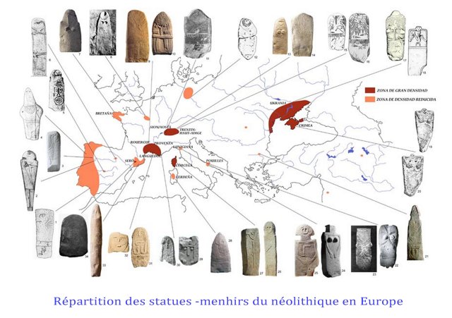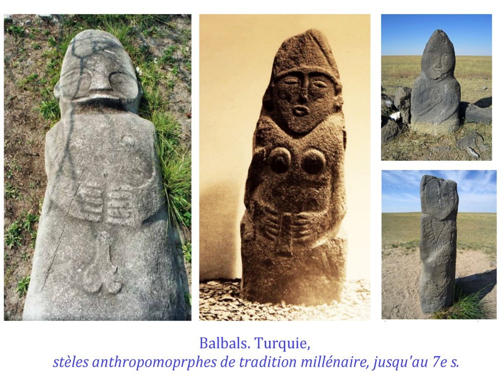 Ensuite, les statues menhirs du Rouergue et du sud de l’Europe, qui peuvent être reliées aux stèles turques et aux « Balbals » des grandes steppes d’orient.
