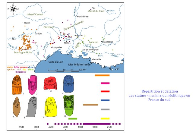 On peut émettre l’hypothèse de liens avec les cultures pastorales et semi-nomades de Göbekli Tepe, la récurrence de la posture hiératique, bras pliés, ceinture est étonnante. Des groupes de pasteurs ont-ils migré vers l’ouest et l’est, se fixant dans des contrées de terres assez arides ( Rouergue, Corse, landes, massif de Fontainebleau), quand d’autres préféraient les plaines alluviales ? Les recherches en sont au début.
