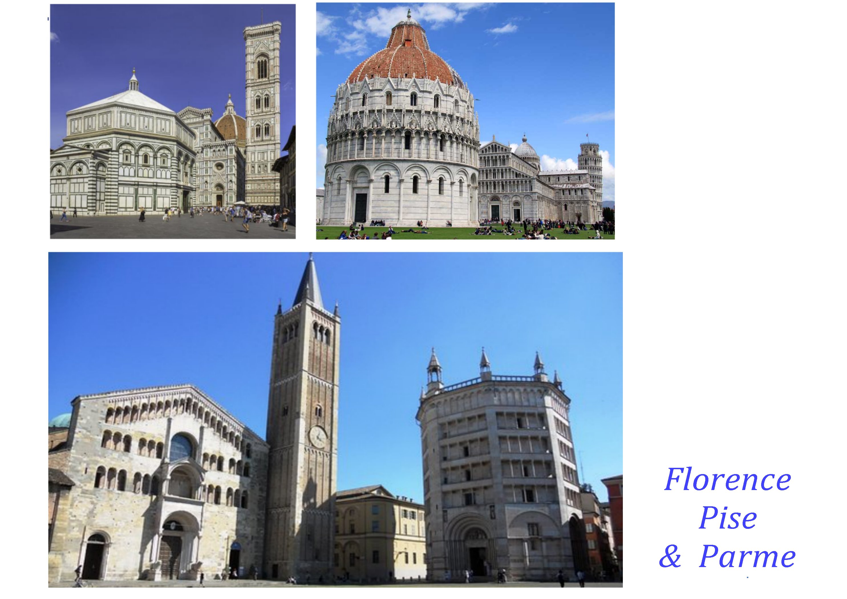 L’un des enjeux de cette nouvelle architecture, est aussi de renouer avec la grandeur du passé Romain et de se démarquer de la tradition gothique, semblant importée du « nord » et dont témoignent certains édifices, comme les grands baptistères.