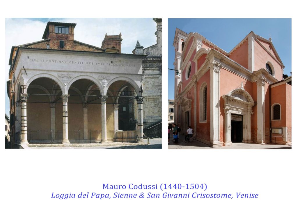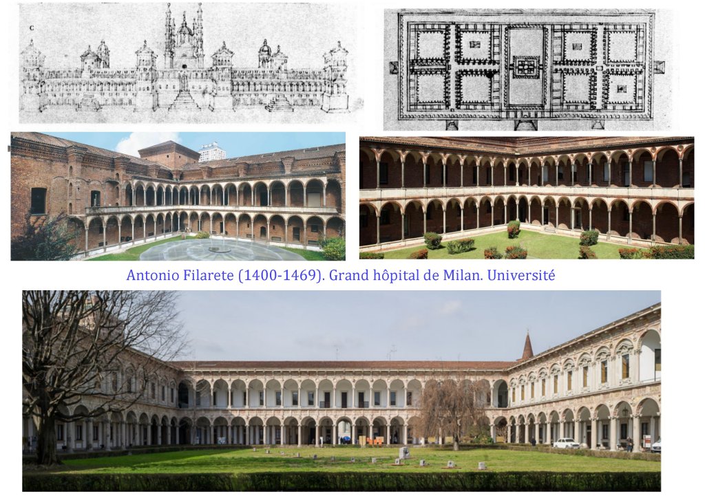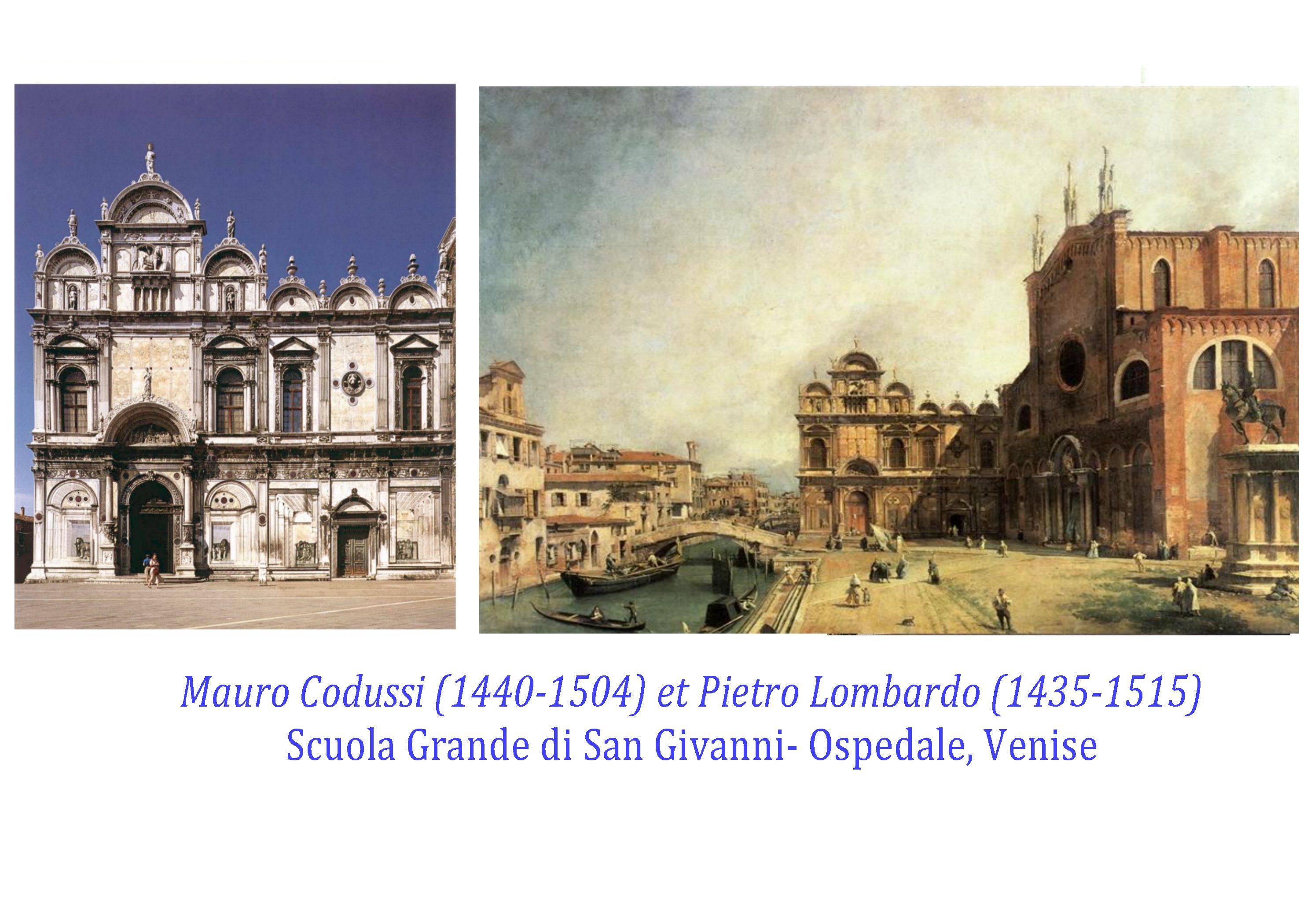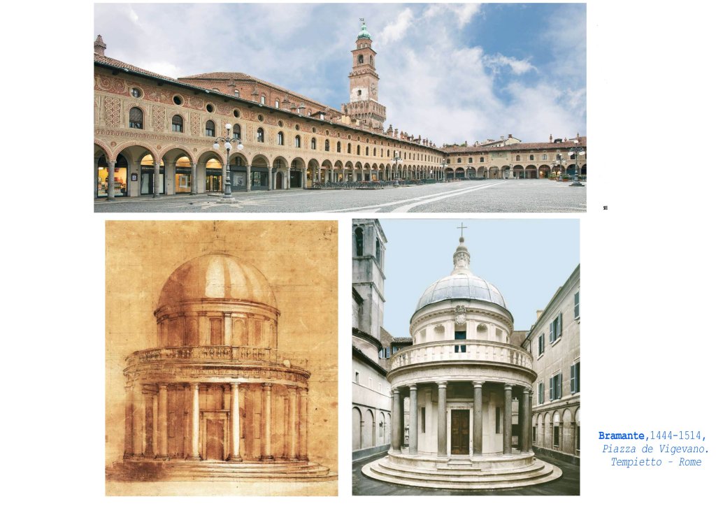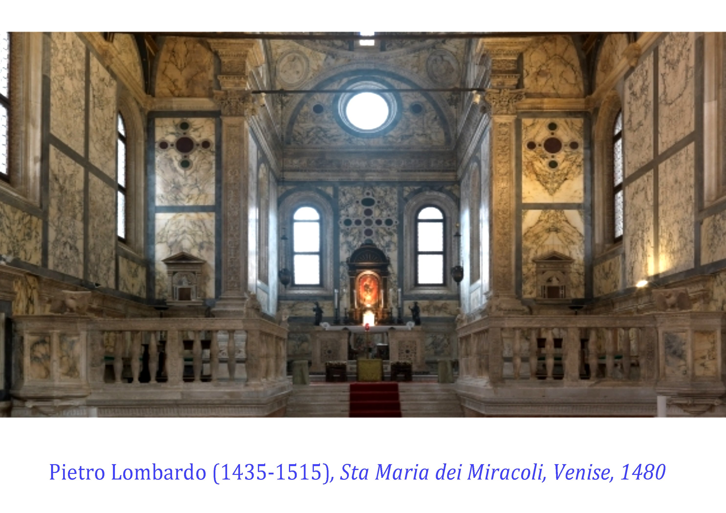 Nous voyons ensuite, comment à de nombreux architectes , Filarete, Bramante, Codussi, Lombardo effectuent des variations sur ce programme esthétique, théorique et architectural.