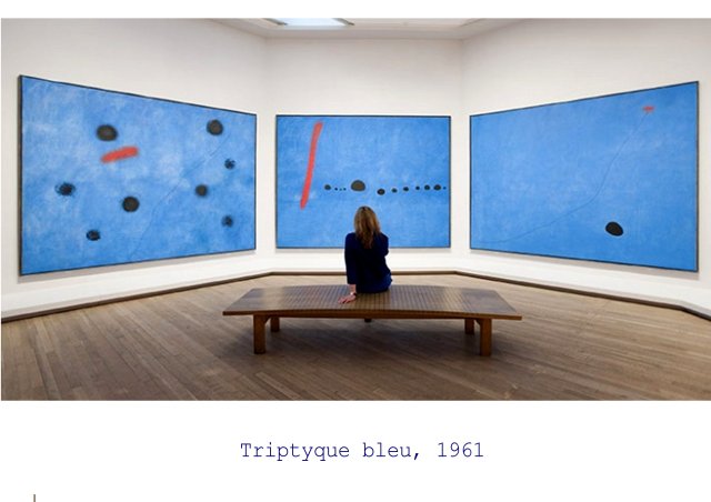 Joan Miro, mérite une grande attention, car derrière une apparente simplicité et répétition, il y a une grande finesse de notions propres au surréalisme, mais aussi une recherche constante, et ceci jusqu’à la fin de sa longue vie. De fait il a accompagné, voire anticipé des évolutions et des pratiques avant-gardistes. Il s’inscrit clairement dans l’histoire du siècle, comme Catalan-Espagnol.