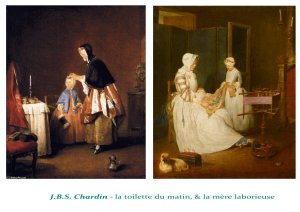Jean Baptiste Siméon Chardin, au delà d’un peintre de natures mortes et de scènes de genre, développe une vision du monde très claire et cohérente, sur les éléments qui lui semblent essentiels et incontournables, autour de valeurs et fonctions premières. Il accorde de ce fait une importance manifeste aux matières et objets en mesure d’être transformés et/ou de transformer.