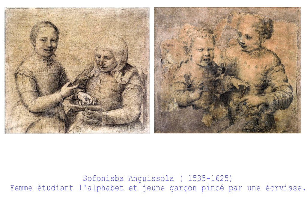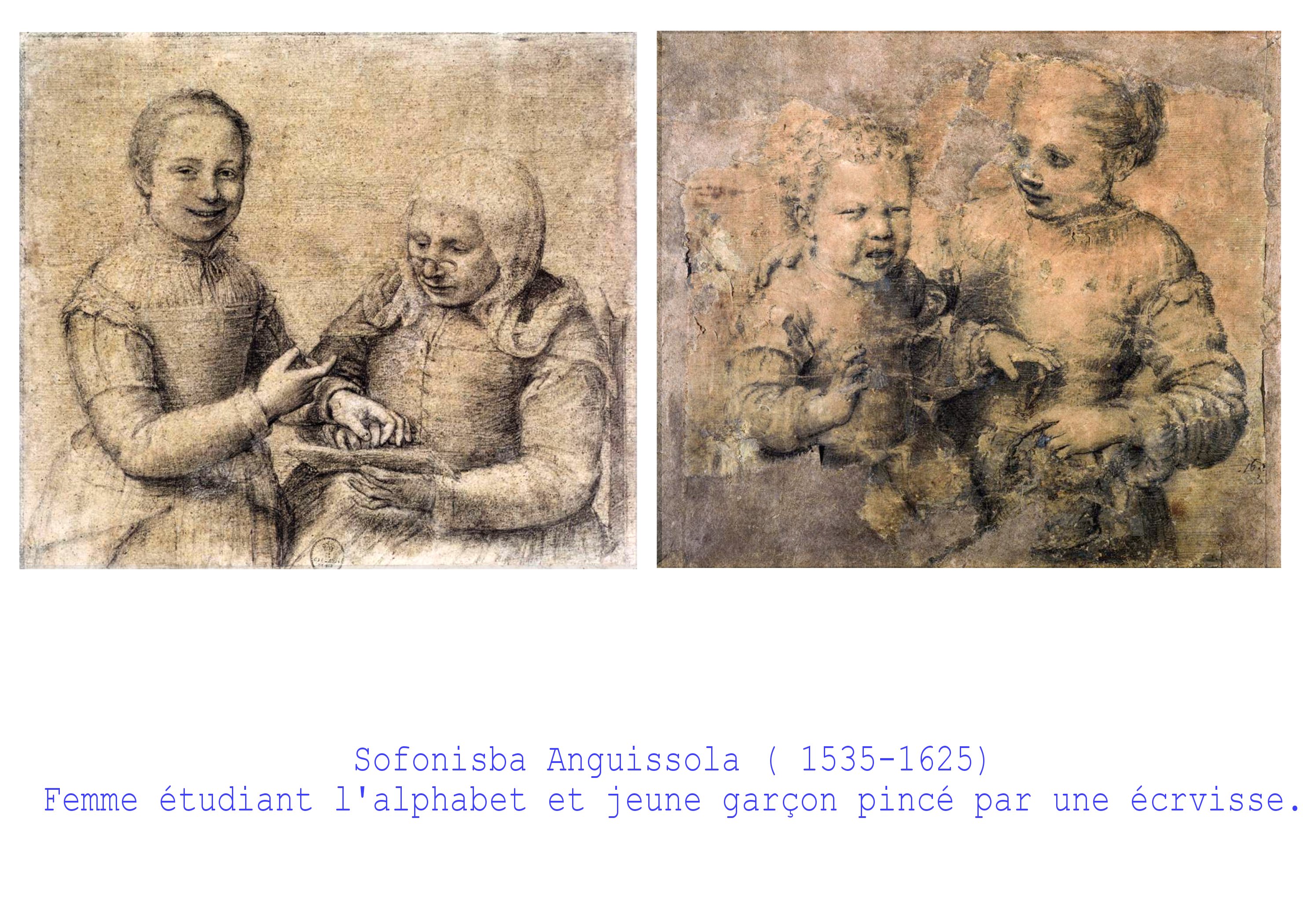 Hélas, on peut penser, que Anguissola, tout comme Lavinia Fontana, ne réussissent à se faire connaître et reconnaître dans le domaine de la peinture que parce que celle-ci est en crise de valeur, avec le maniérisme et l’effondrement des préceptes hérités de la Renaissance. Il est ainsi caractéristique que la plupart de ces femmes artistes soient cantonnées à l’art du portrait, en commençant par leur autoportrait, comme garantie, de leur potentiel, de leur capacité à peindre. Valeur performative.