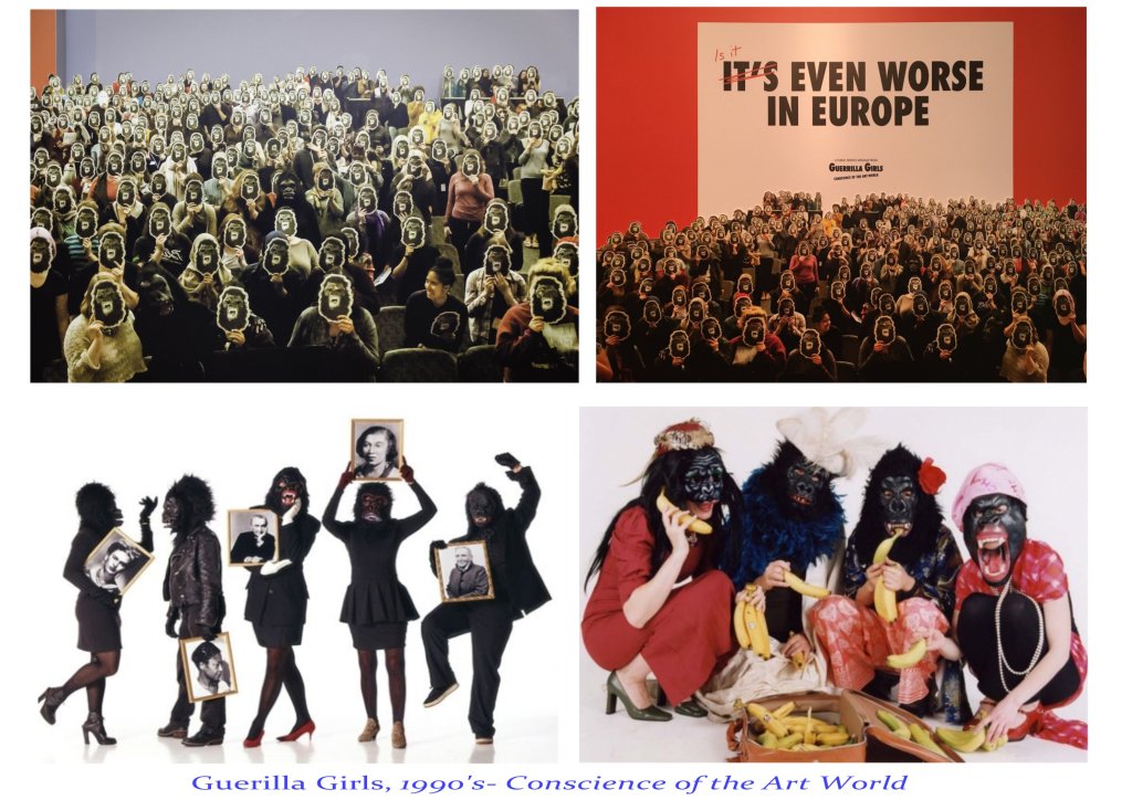 Au sortir de la 2e guerre, dans un monde en bouleversement culturel secoué par des guerres et des revendications sociétales beaucoup d’ artistes femmes se sont exprimées clairement sur ces questions et bien sûr, en premier lieu sur la place des femmes dans le monde et le monde de l’art en particulier. Explorant l’intérêt paradoxal des slogans et de l’écriture ou se plaçant au centre de leurs créations.