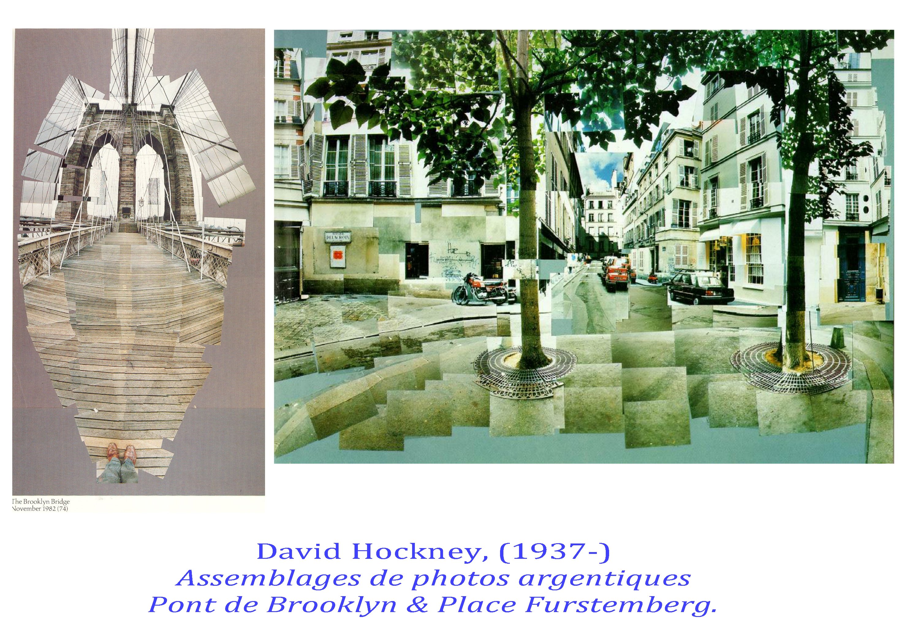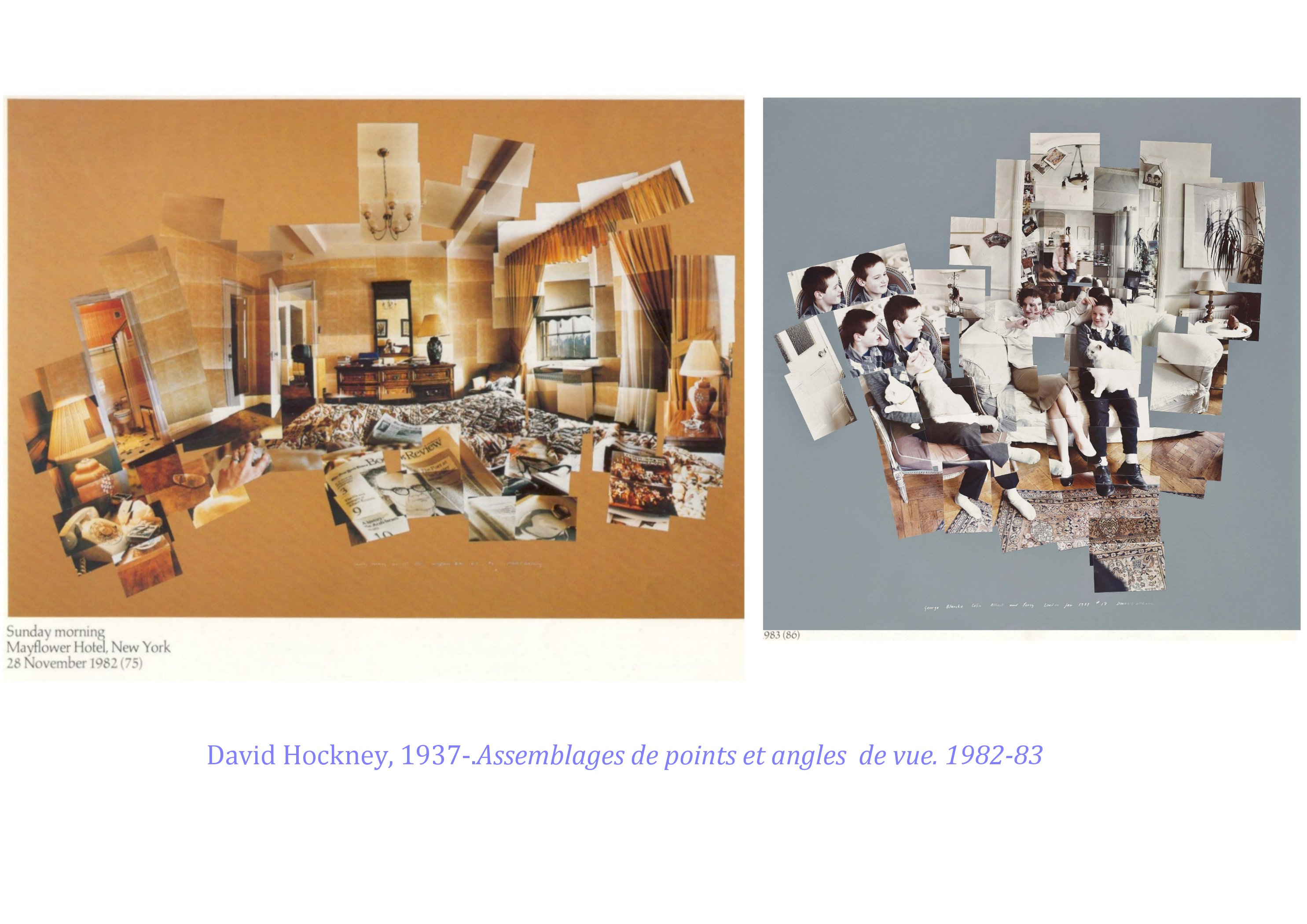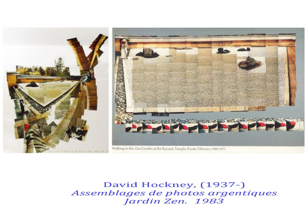 Il a intégré de façon brillante le couple cadrage/instant révélé par les déplacements cubistes autour de leur sujet ( prises de notes et points de vues inscrits dans la durée et restitués sur le plan de la toile) jusqu »à expérimenter cette durée dans ses grands assemblages photographiques. Espace/temps un rapport qui n’a été exploré de façon rigoureuse que par Hockney.