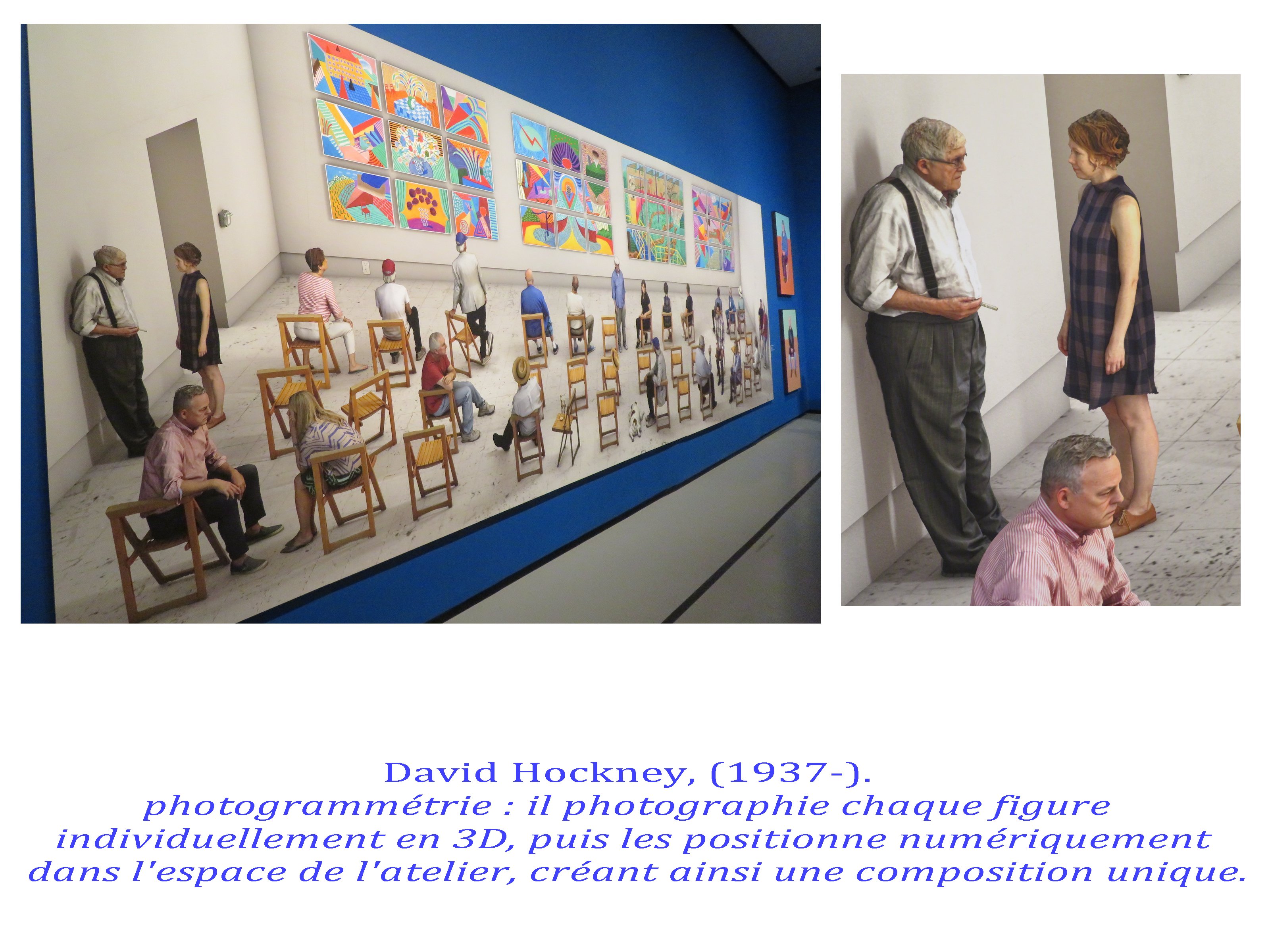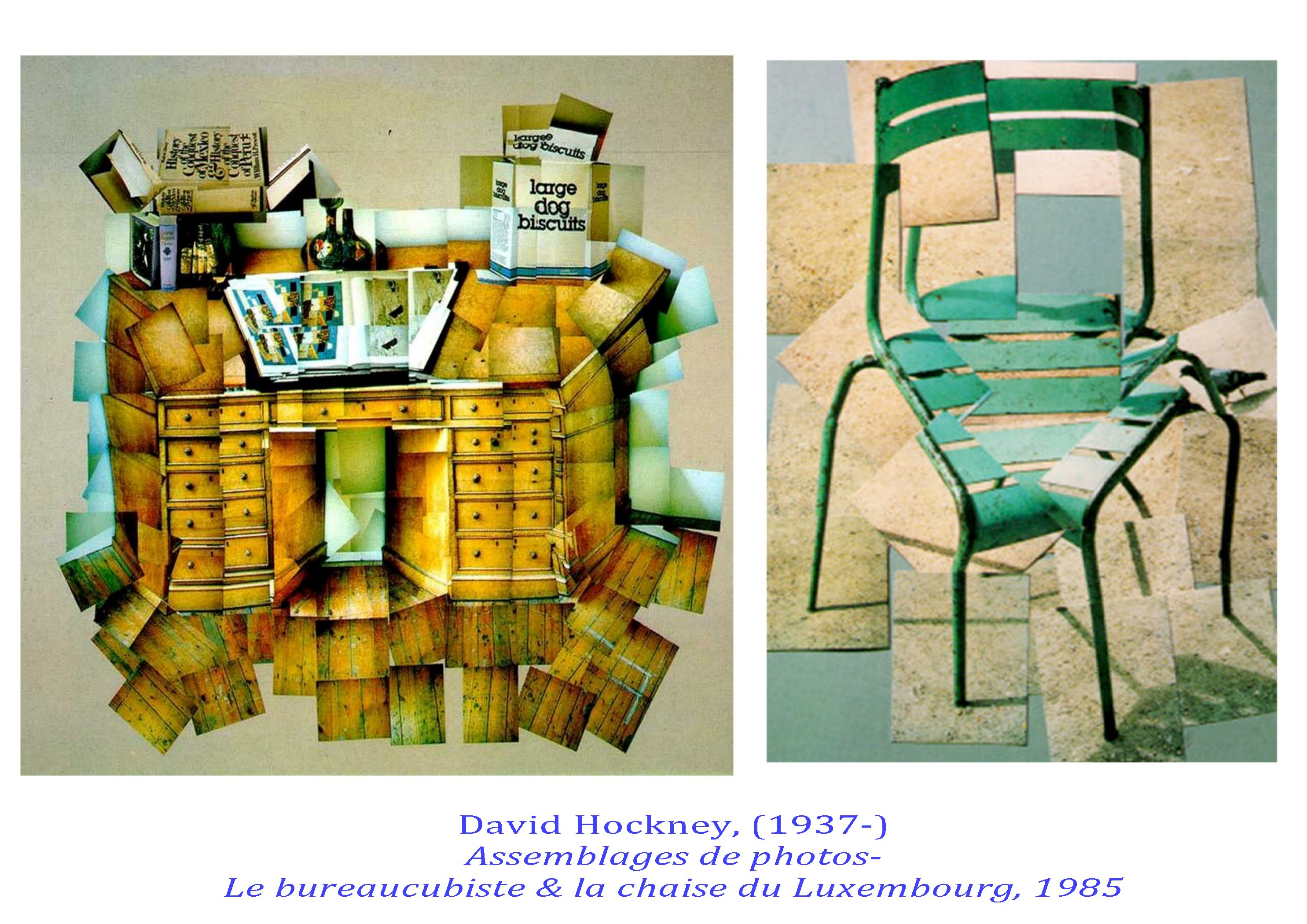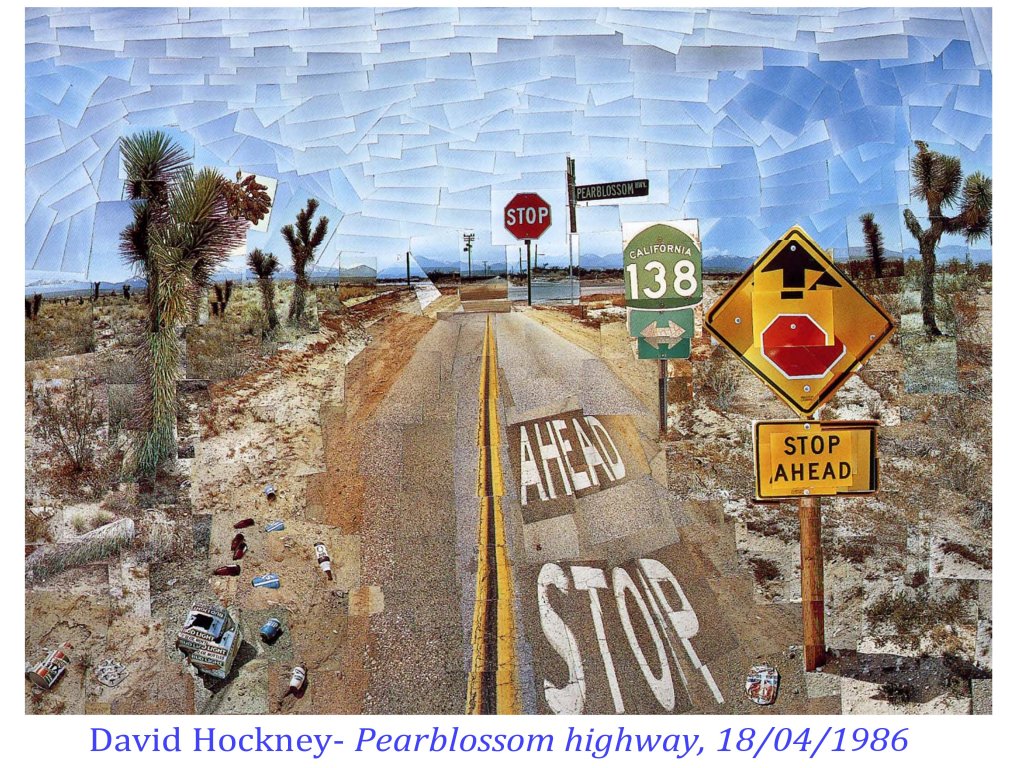 Il a intégré de façon brillante le couple cadrage/instant révélé par les déplacements cubistes autour de leur sujet ( prises de notes et points de vues inscrits dans la durée et restitués sur le plan de la toile) jusqu »à expérimenter cette durée dans ses grands assemblages photographiques. Espace/temps un rapport qui n’a été exploré de façon rigoureuse que par Hockney.