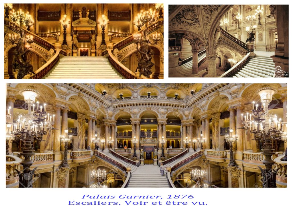 La continuité esthétique est manifeste, de Versailles aux grandes perspectives haussmanniennes, intégrant le Palais Garnier au quotidien scénographié de la nouvelle classe dirigeante. Continuité des appartements bourgeois aux loges de l’ Opéra, en passant par la célébration du nouveau moteur de l’économie capitaliste rayonnante, les Grands magasins.