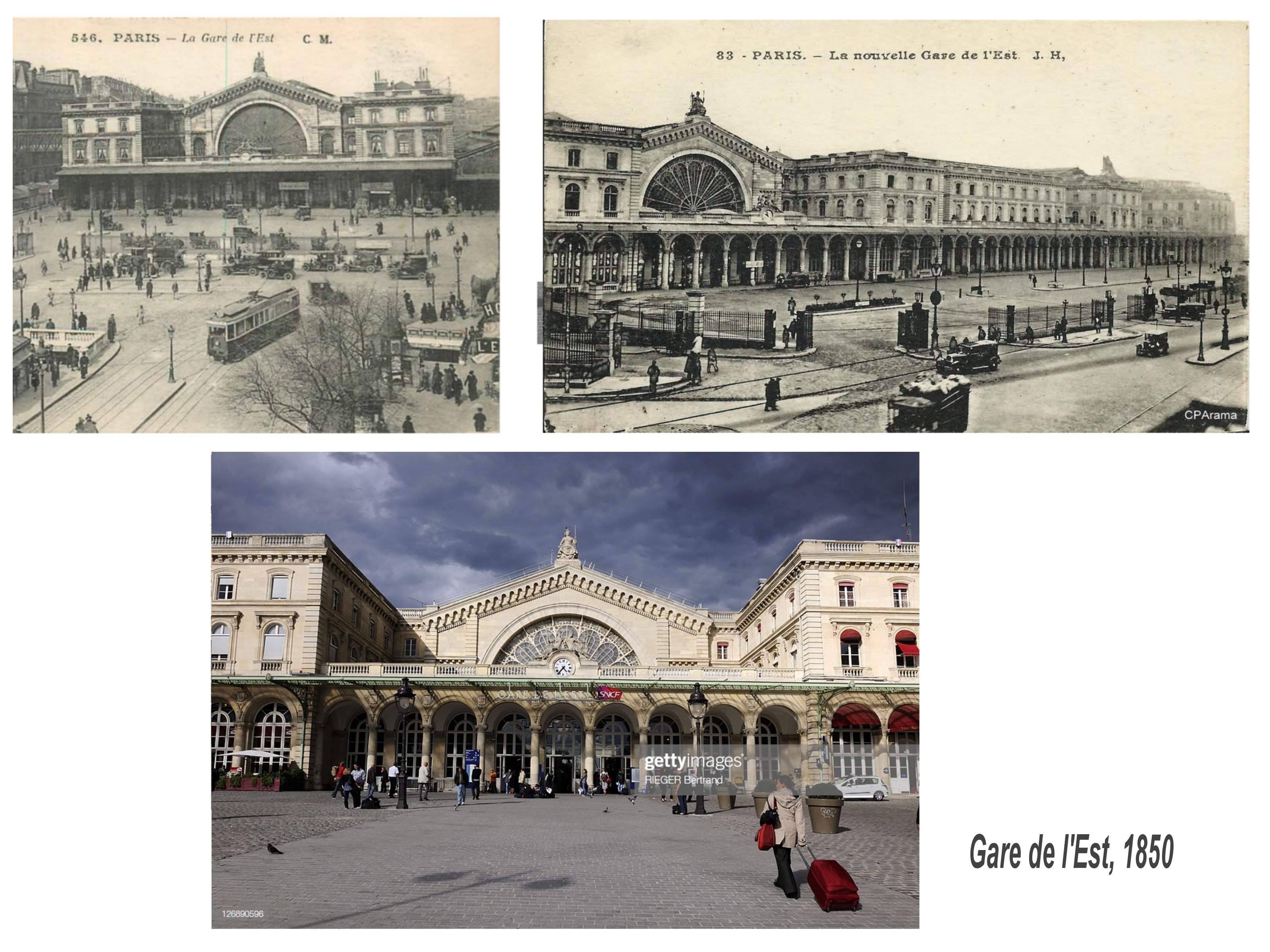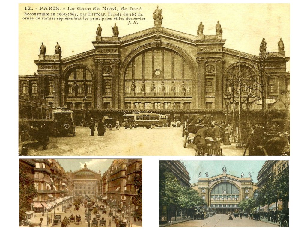 Ainsi, les gares aussi , sont des nécessités paradoxales : fuir la ville polluée ET amener les travailleurs et travailleuses dans la capitale. Elles seront intégrées au continuum urbain parisien, par de grandes façades scénographiées, comme celle du Palais Garnier.