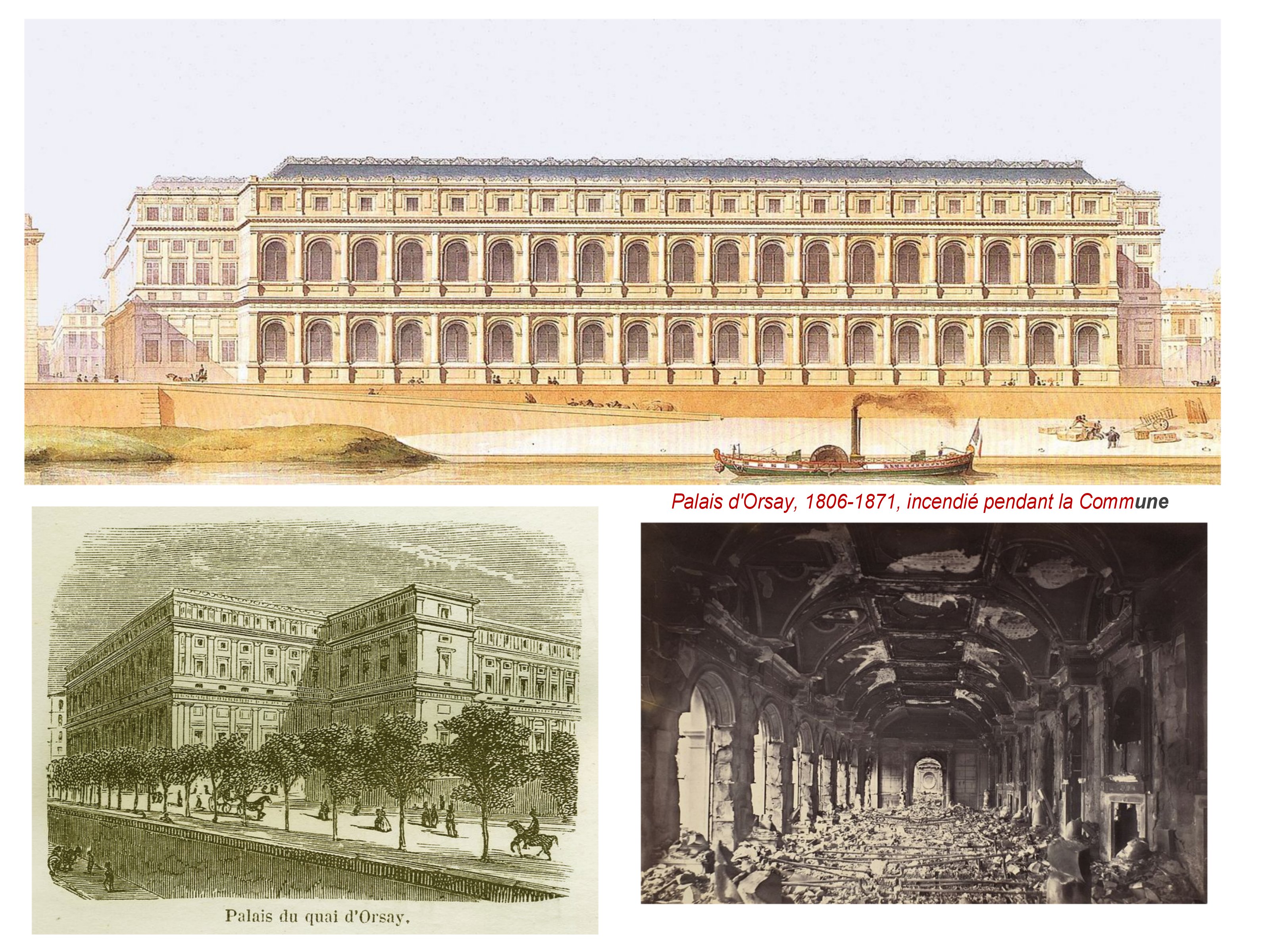 Directement lié et associé au Palais des Tuileries, afin de relier le Palais Impérial de Napoléon III et l’édifice dont la finalité est d’instaurer, de construire un référentiel culturel commun à l’aristocratie malmenée par les temps moderne, mais choyée par Napoléon 1er et son neveu, et la classe montante, la bourgeoisie d’affaires, de finances et d’industrie, qui n’a aucune tradition culturelle à faire valoir.
