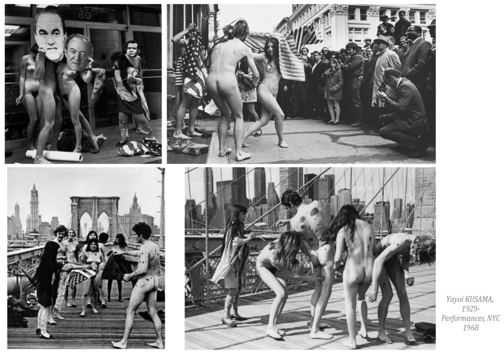 On peut se référer à l’article Femmes, artistes….. l’ardoise magique, histoires d’effacements pour apprécier encore la détermination exceptionnelle de Kusama contre les silences des institutions artistiques.