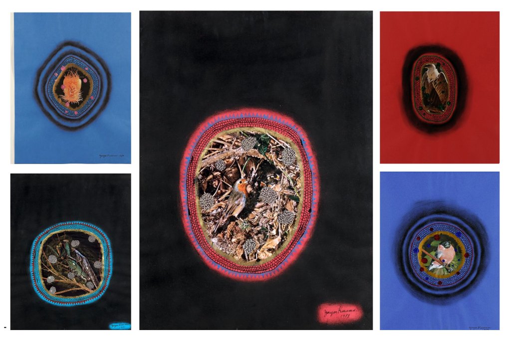 Des points et du graphisme minimaliste elle a abordé les couleurs et une sensualité des formes au tournant de sa vie, aboutissant à ses grandes peintures microbiennes et organiques. Evocation de polypes, de cellules, de micro-organismes, dont le point serait l’origine, comme dimension « 0 », avant de se réaliser dans l’espace tridimensionnel.