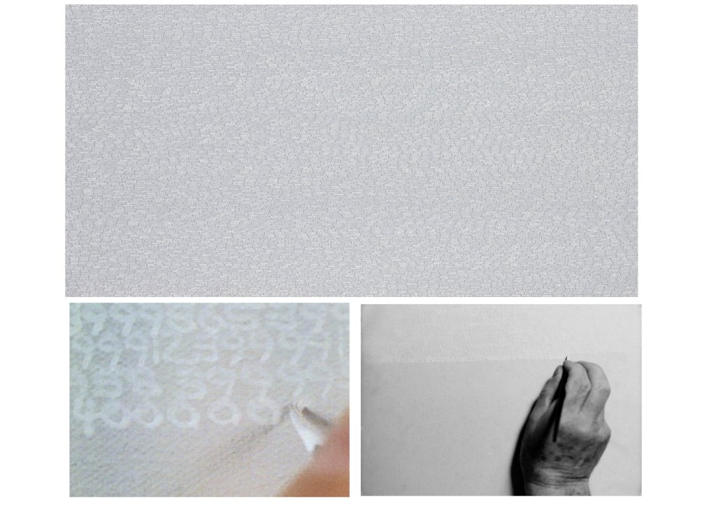 Elle inscrit sa pratique dans la théorie de Clément Greenberg (théoricien de l’expressionisme abstrait) sur l’abstraction, faisant d’un geste minimal et singulier, le point de départ d’une exploration systématiquement déployée.