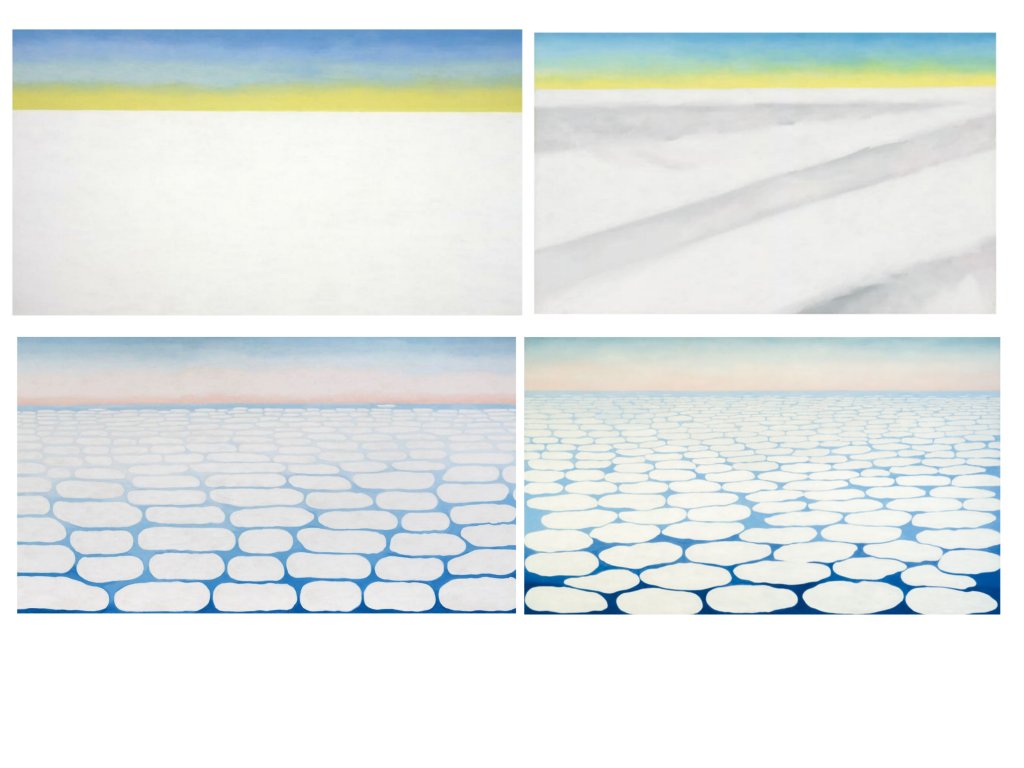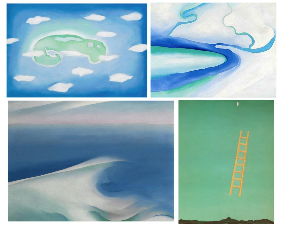 Ses figures dialoguent souvent avec l’ azur et les cieux, mais sa peinture n’aborde pas l’ humide et le mouvement ; son choix d’habiter au milieu de déserts secs , chauds et arides correspond à sa sensibilité esthétique.