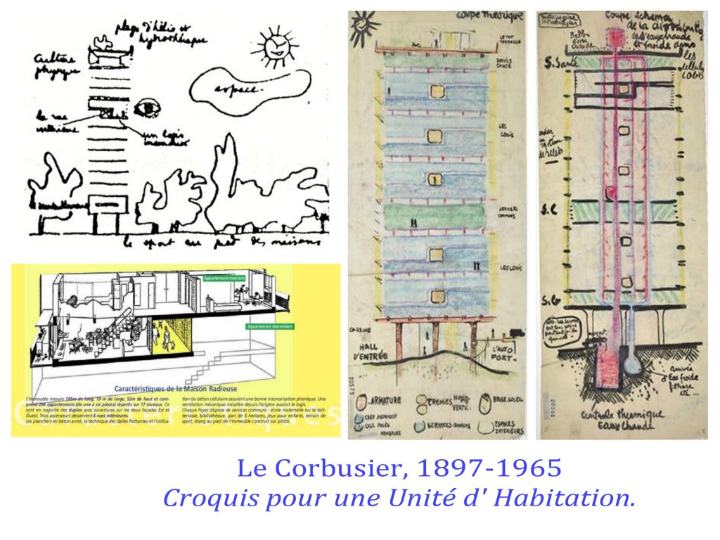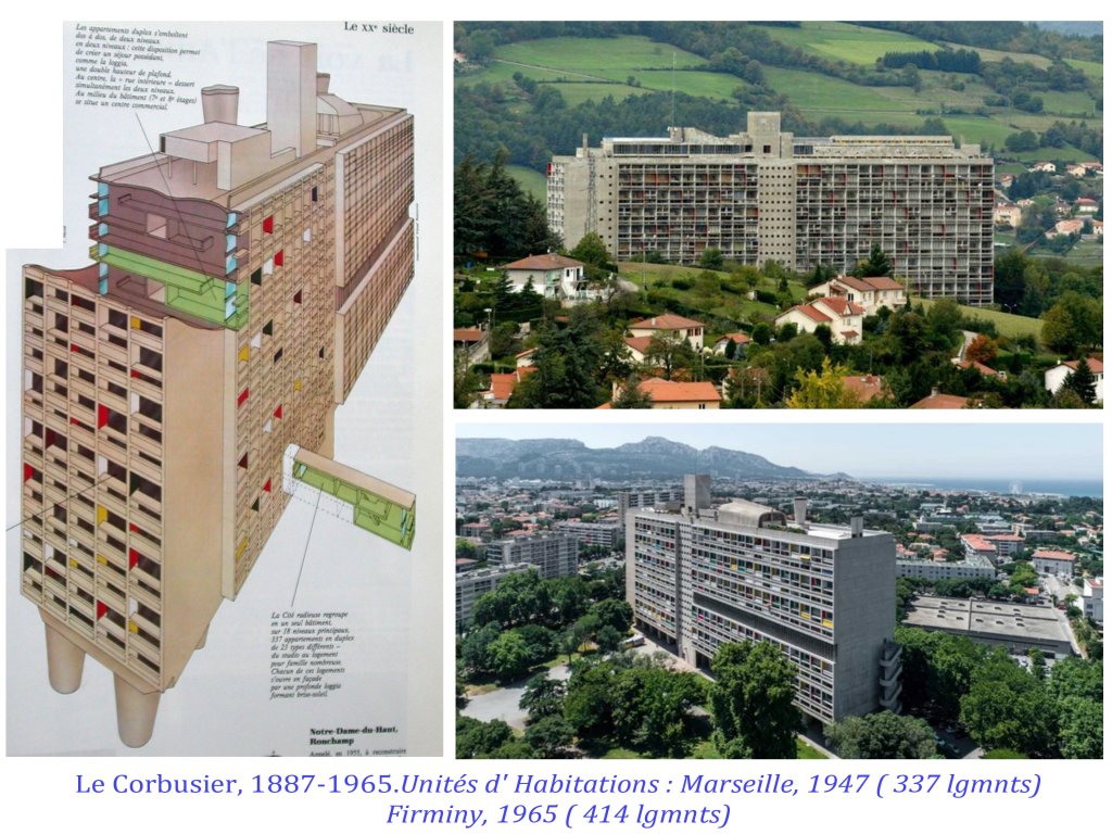 Son grand défaut serait d’avoir écrit et théorisé, avec « l’Esprit Nouveau »1921, puis « la charte d’ Athènes »1933, puis « le Modulor »1945, là ou d’autres promoteurs et constructeurs brutalistes ont produit d’effroyables quartiers de barres et de cités, sans idées, sans projets autres que financiers et spéculatifs.