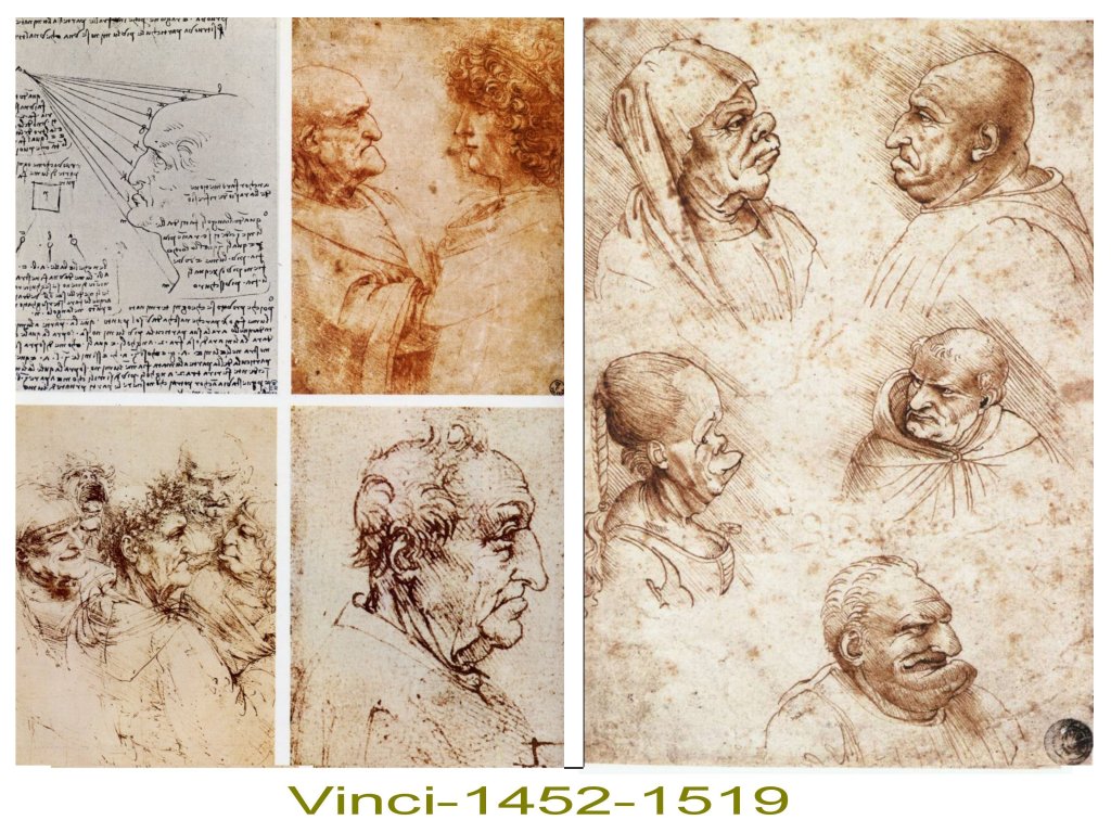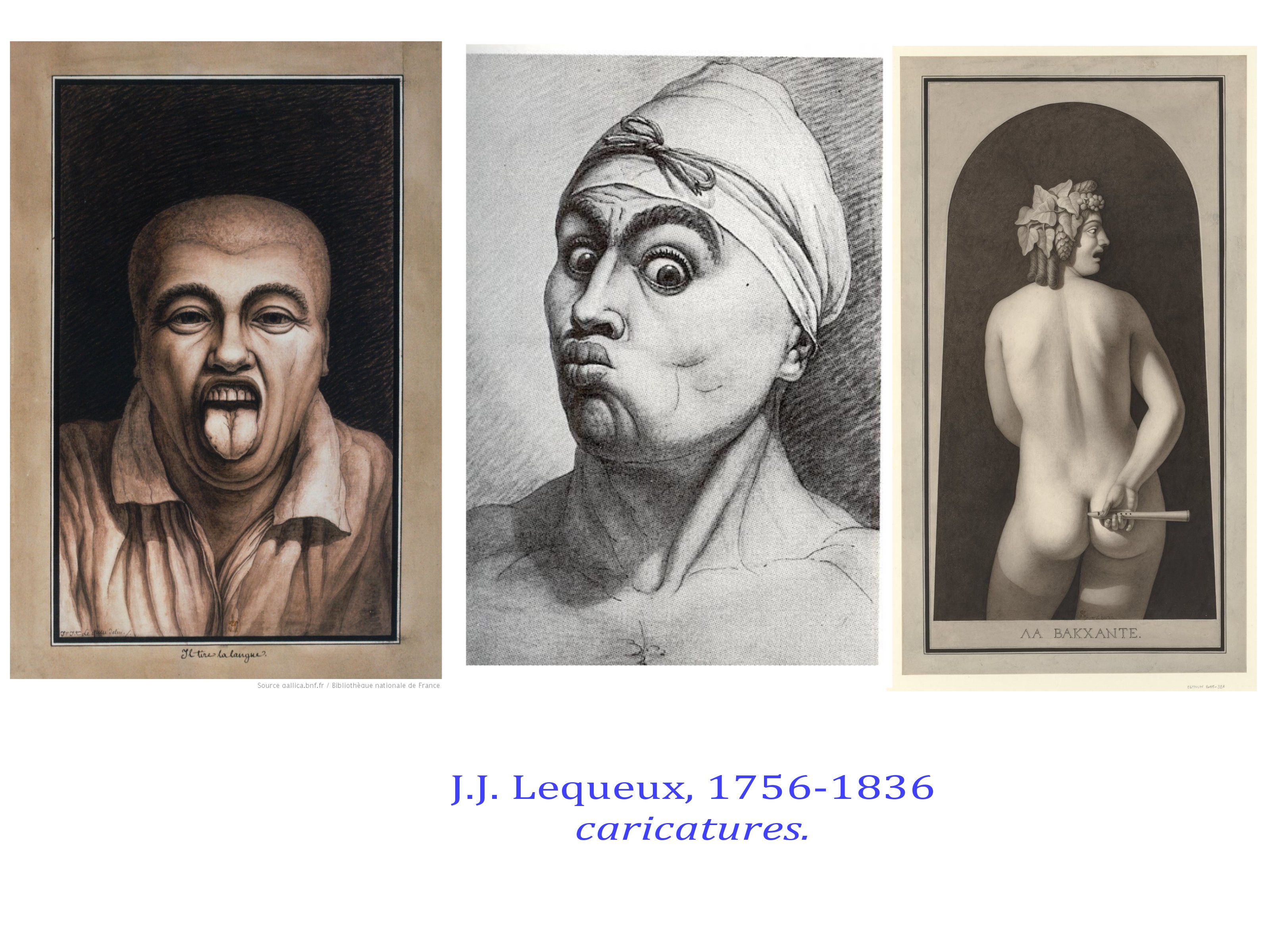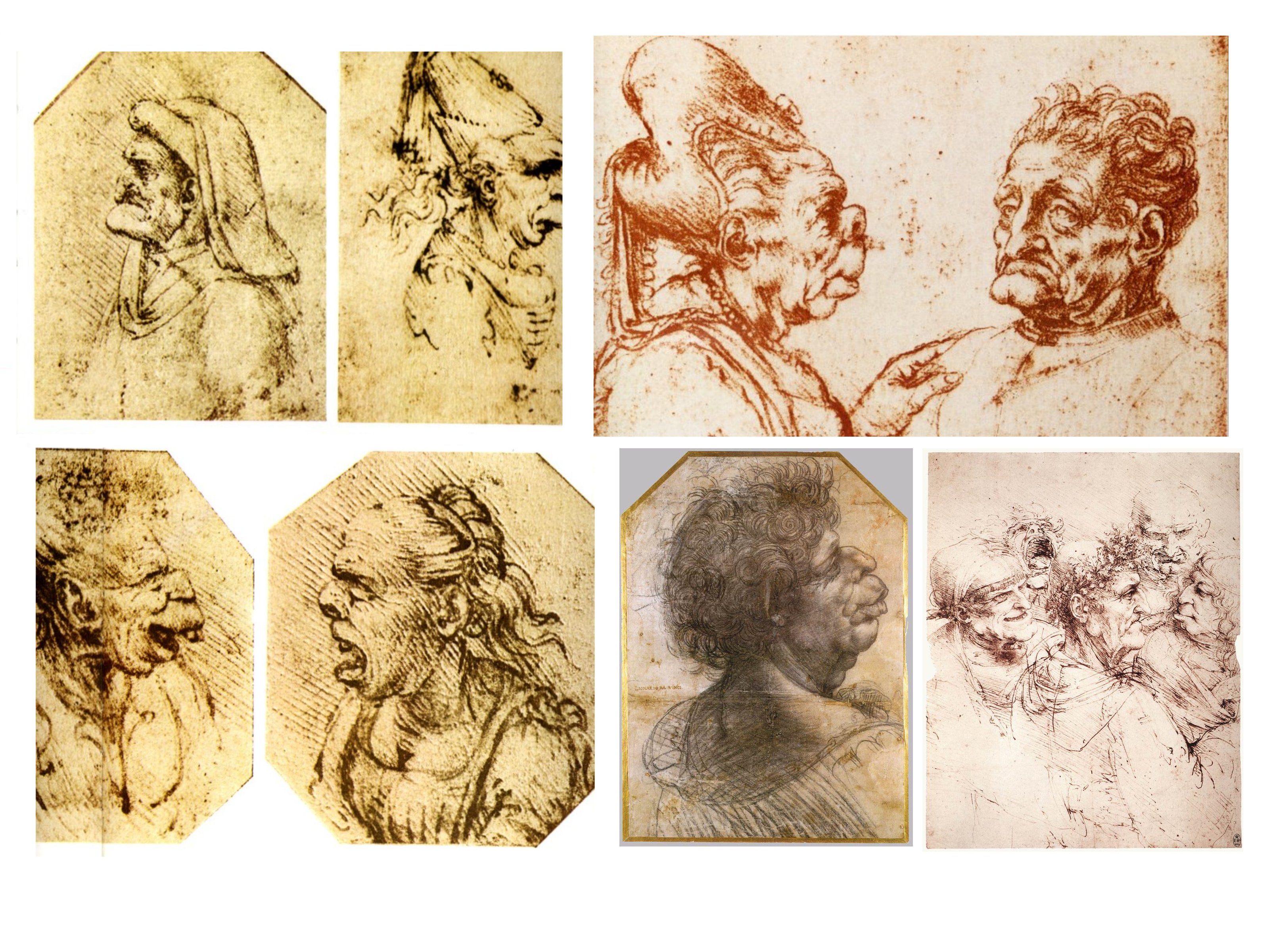Les grotesques et les caricatures, sont souvent le fruit d’explorations des limites de l’humanité, de ses excès, de sa proximité avec l’animalité, de ses frontières physiques et mentales (vieillesse, folie).