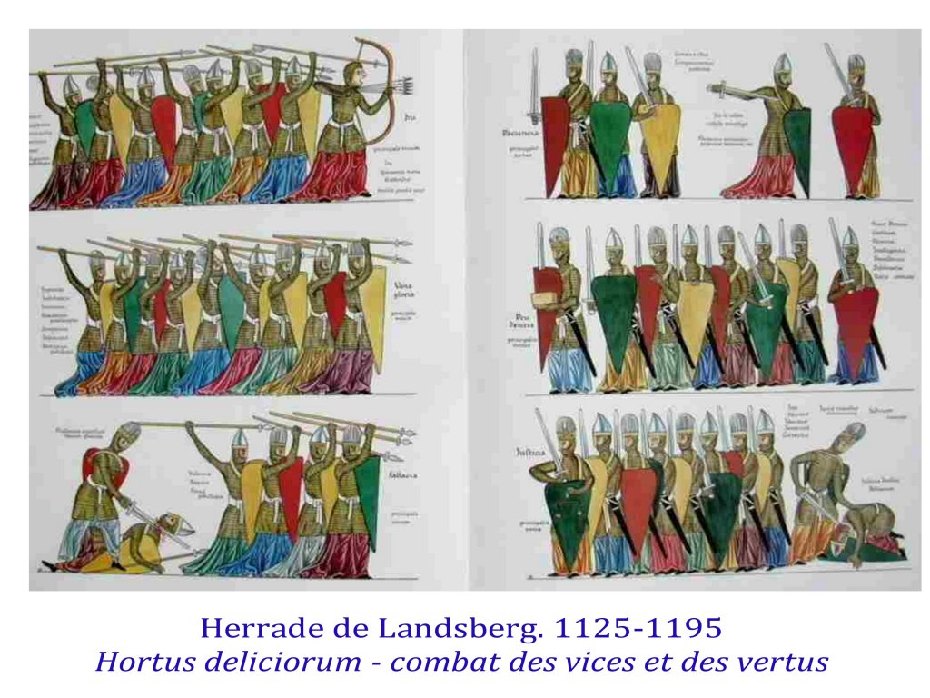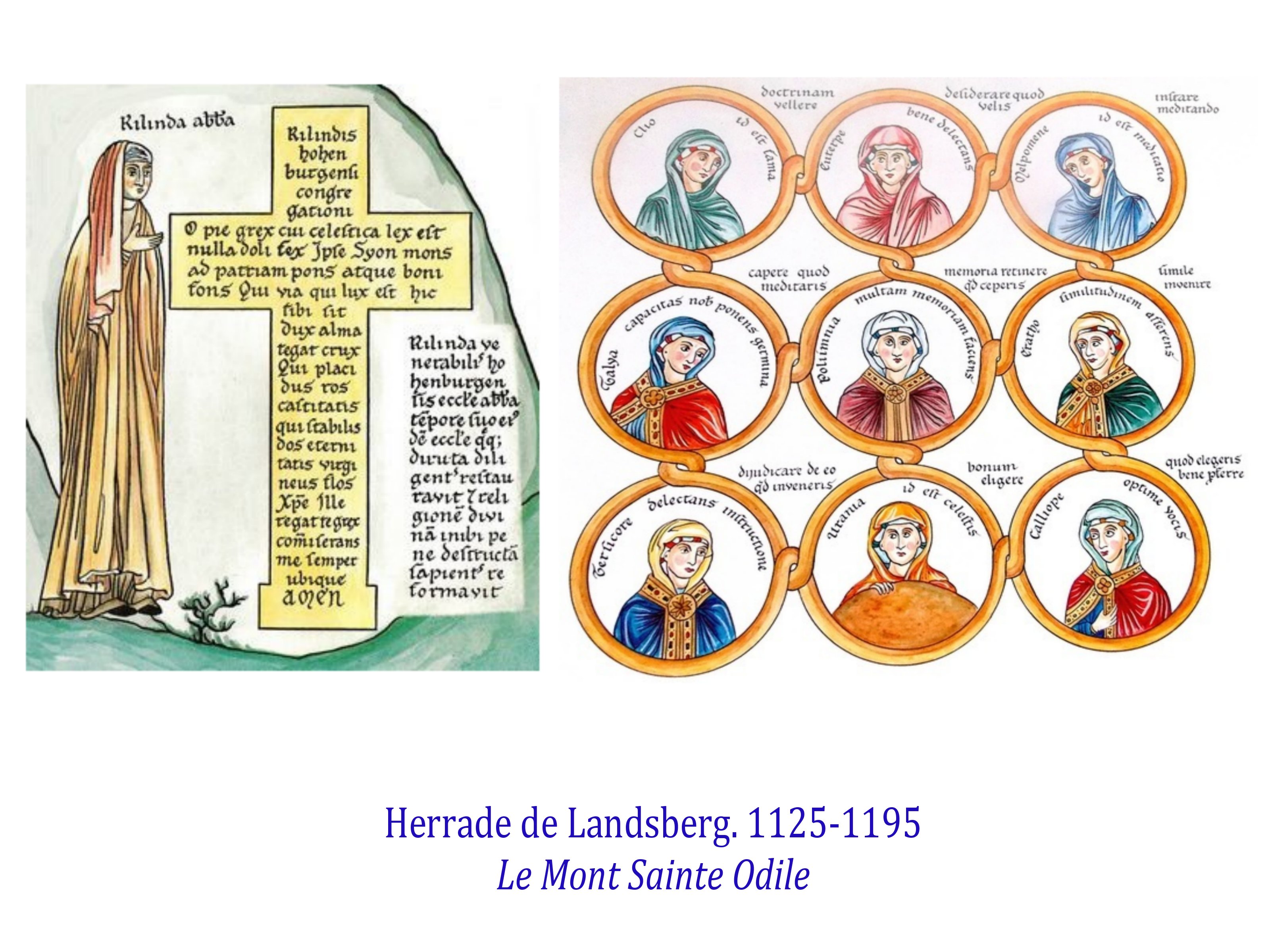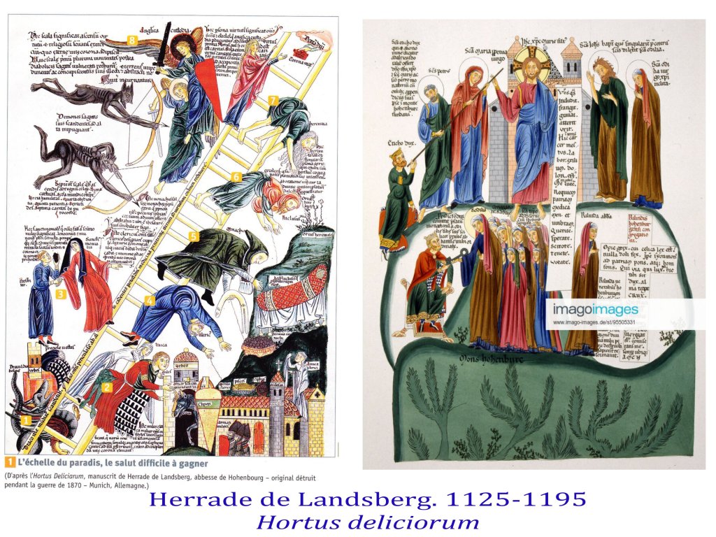 Progressivement sont sauvées de l’oubli de trés nombreuses femmes autrices, poétesses et/ou théologiennes, ainsi qu’illustratrices. Hildegarde de Bengen, Herade de Lansberg par exemple, ainsi que Marie de France.