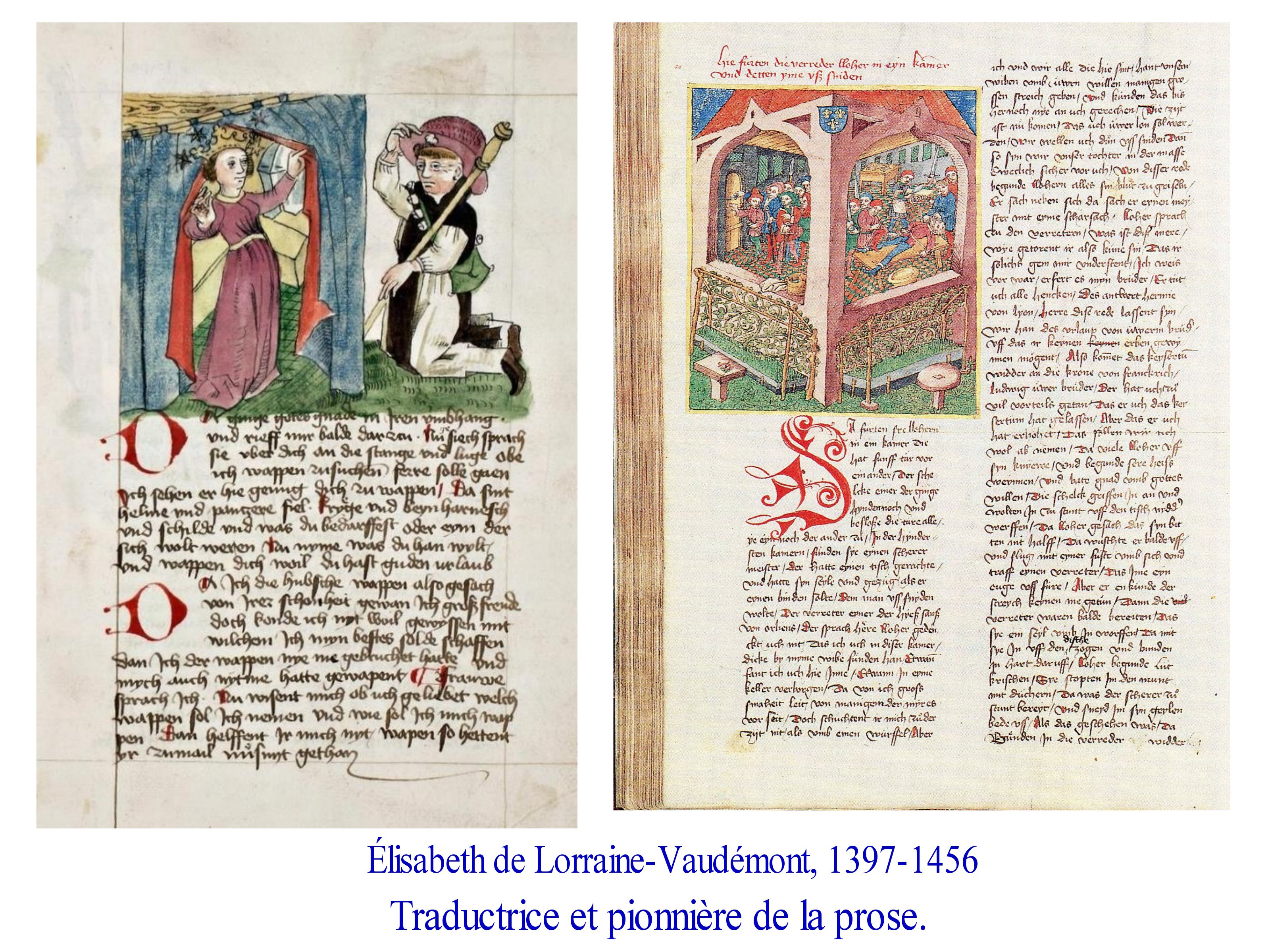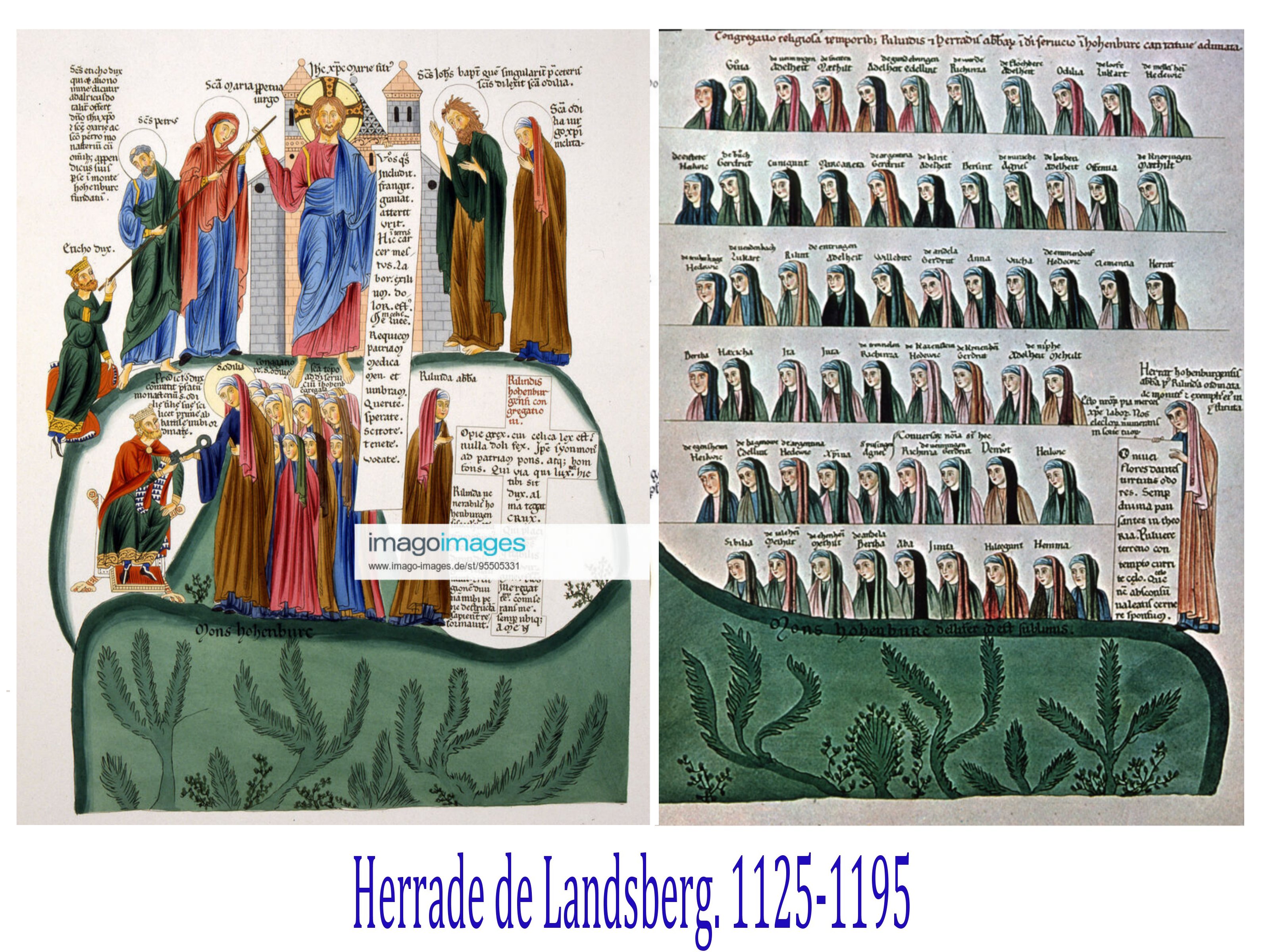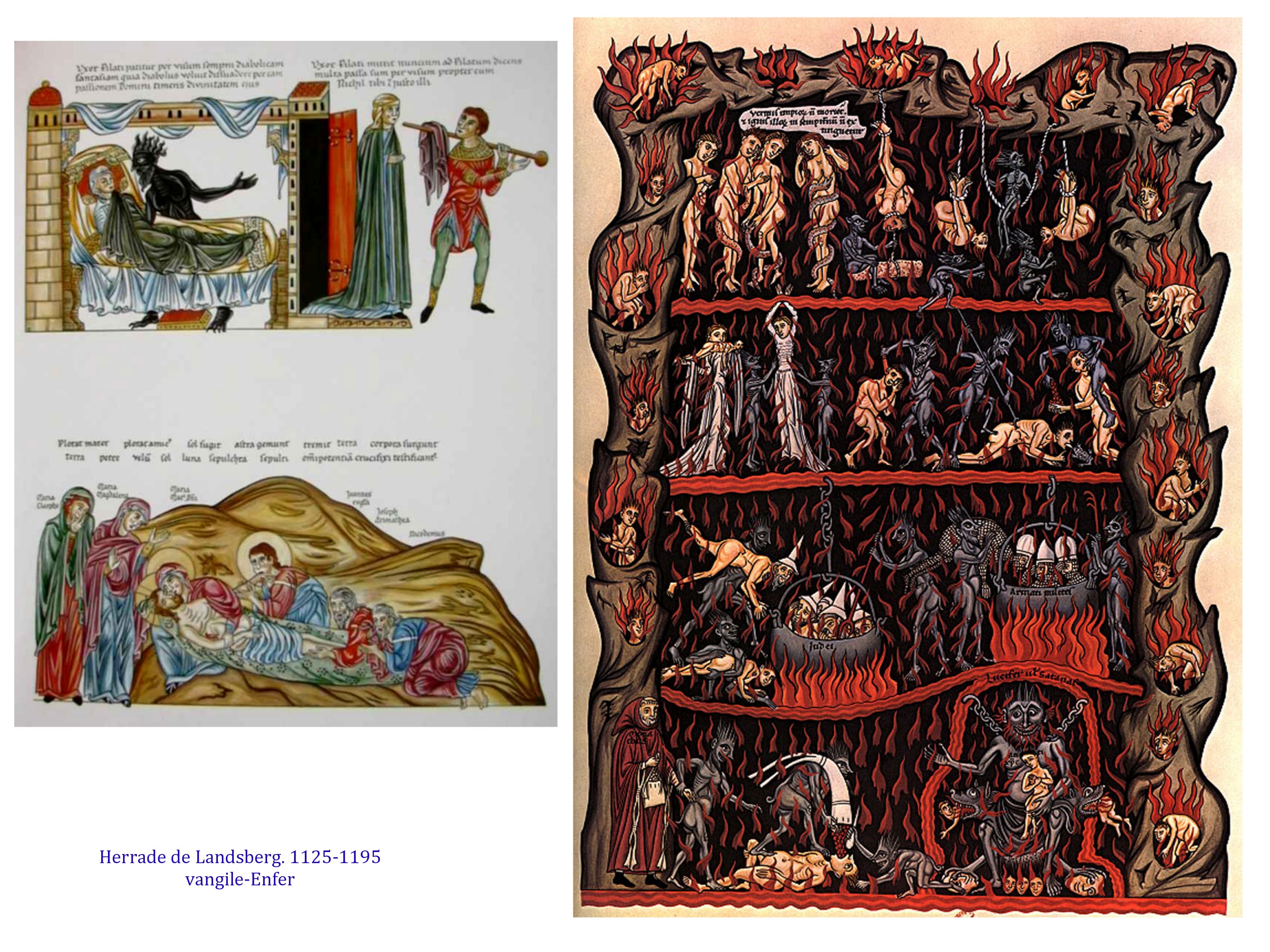 Progressivement sont sauvées de l’oubli de trés nombreuses femmes autrices, poétesses et/ou théologiennes, ainsi qu’illustratrices. Hildegarde de Bengen, Herade de Lansberg par exemple, ainsi que Marie de France.