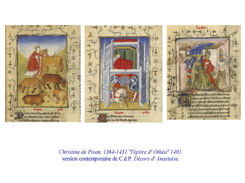 Quand elle écrit « l Épître d’ Othéa », c’est un livre de conseils et d’éducation pour le dauphin ; « le chemin de longue estude » relate une initiation par le savoir faite par une déesse, pour une femme..