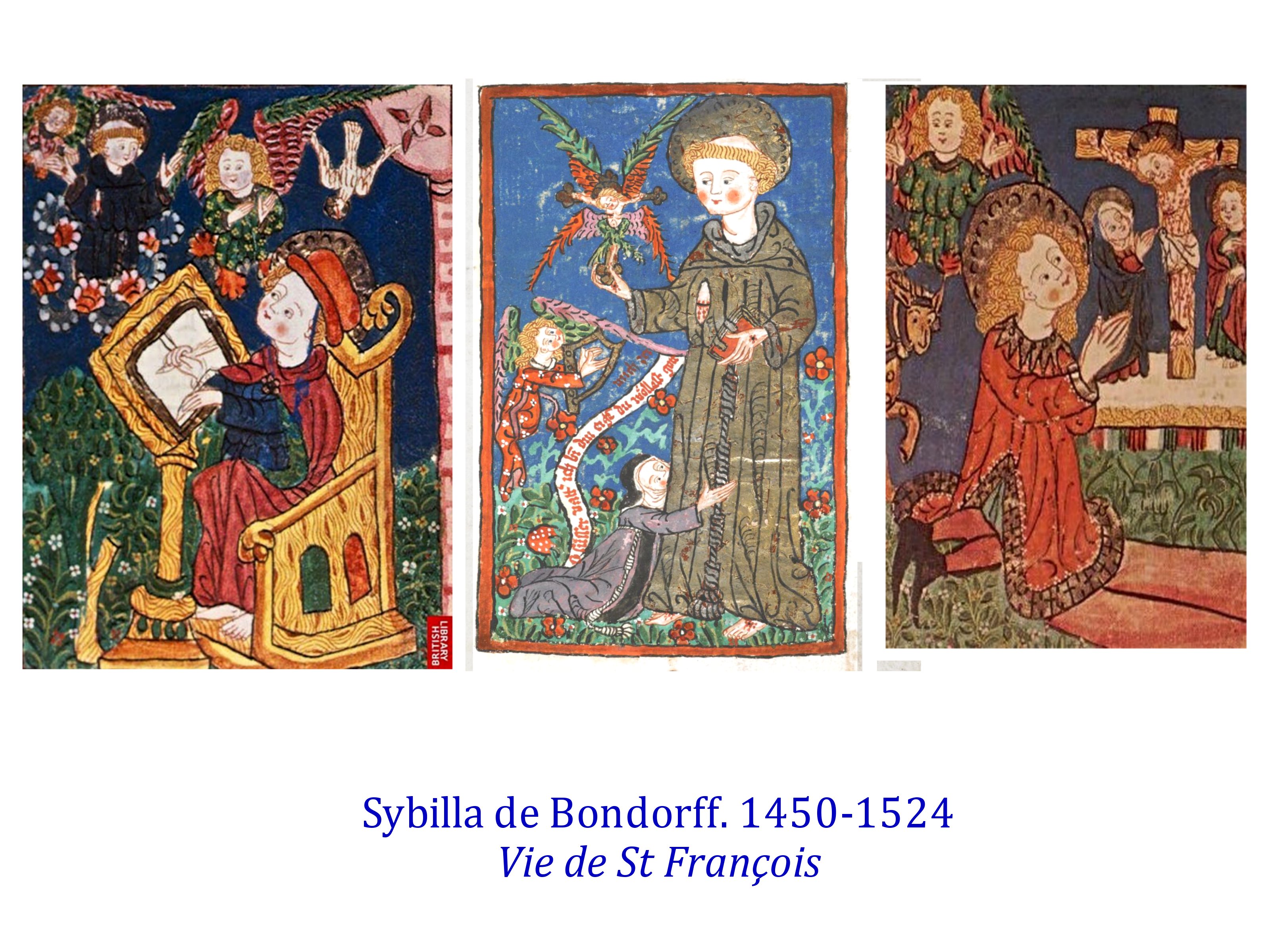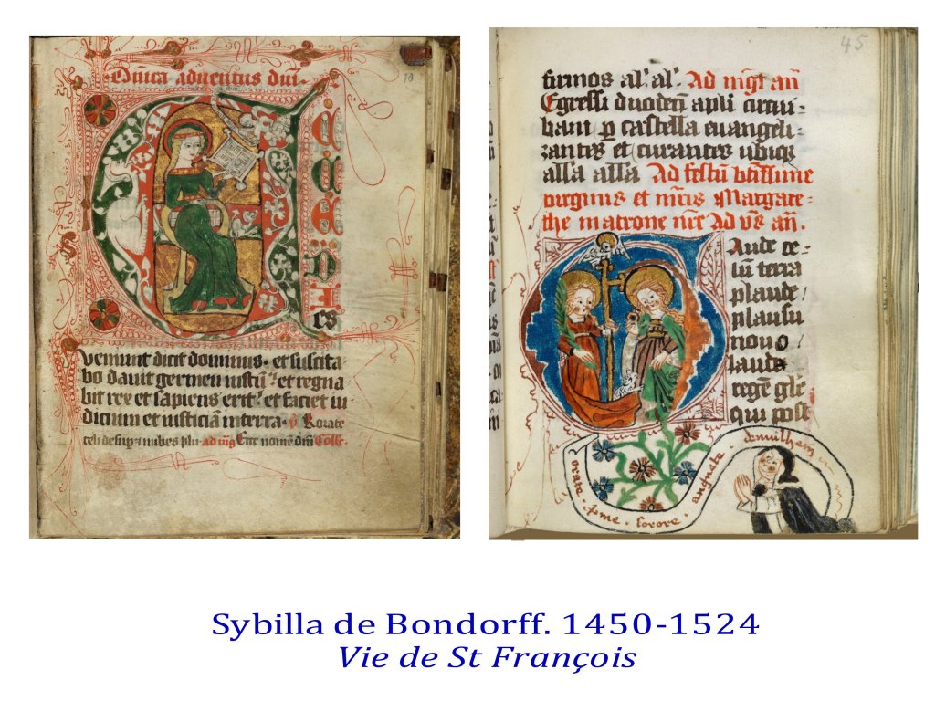 De même on commence à pouvoir retracer les œuvres de femmes artistes, comme Claricia, Ende, Sybilla de Bondorff..