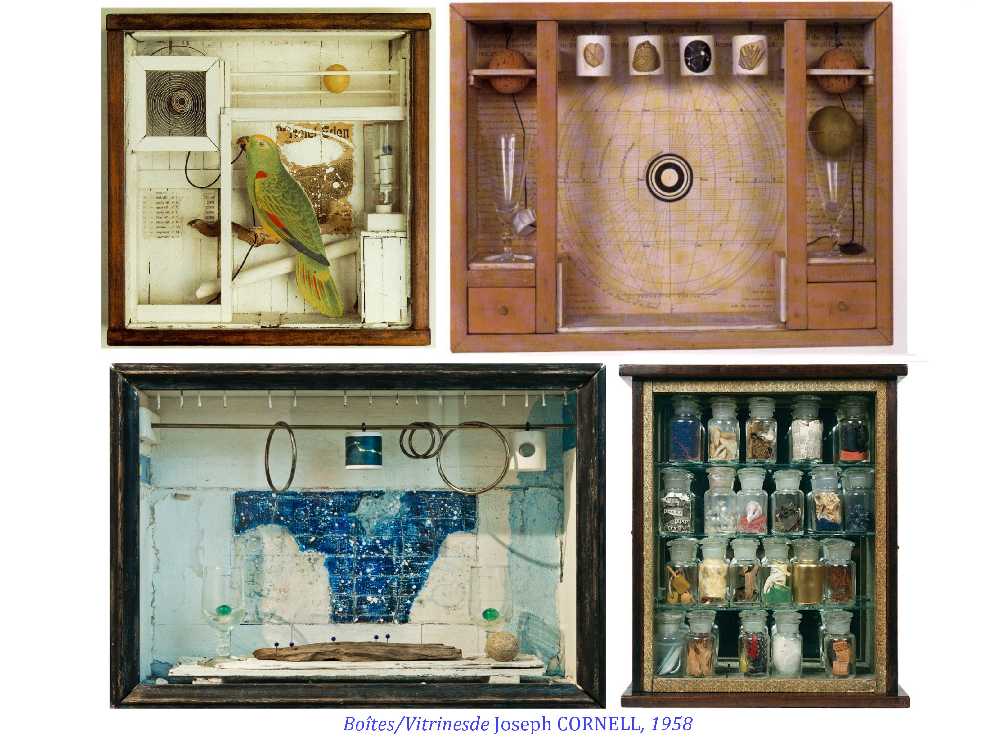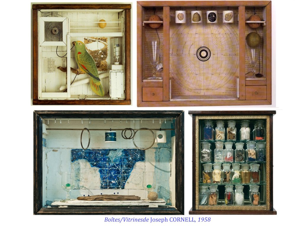 Des artistes vont aussi travailler à la rencontre et l’assemblage d’objets, suggérant ainsi une narration, un dialogue. On retrouve ces pratiques chez les surréalistes.Jean COCTEAU, électron libre. André Breton ayant théorisé subtilement le déclic de la « rencontre » comme déclenchement poétique.