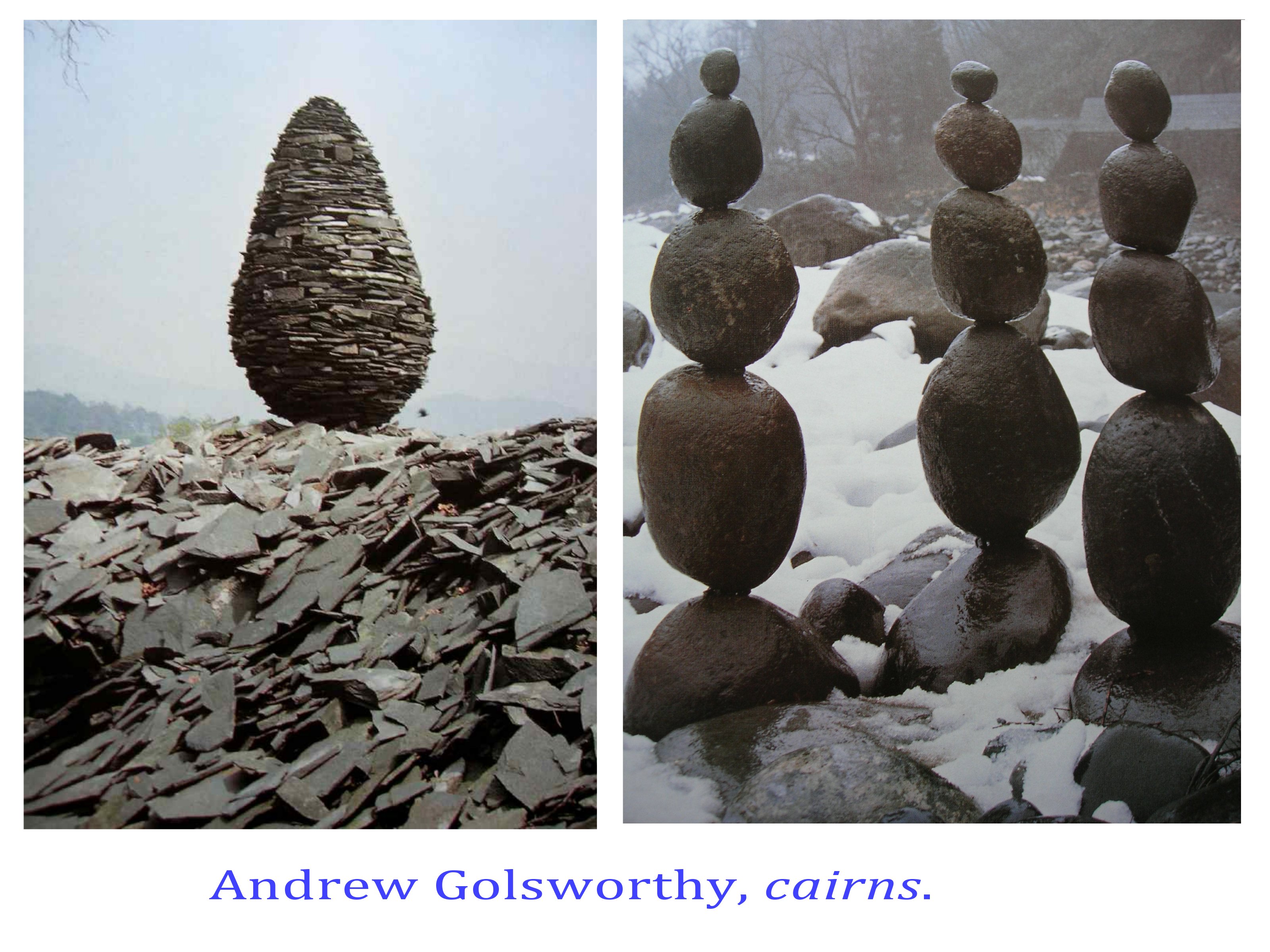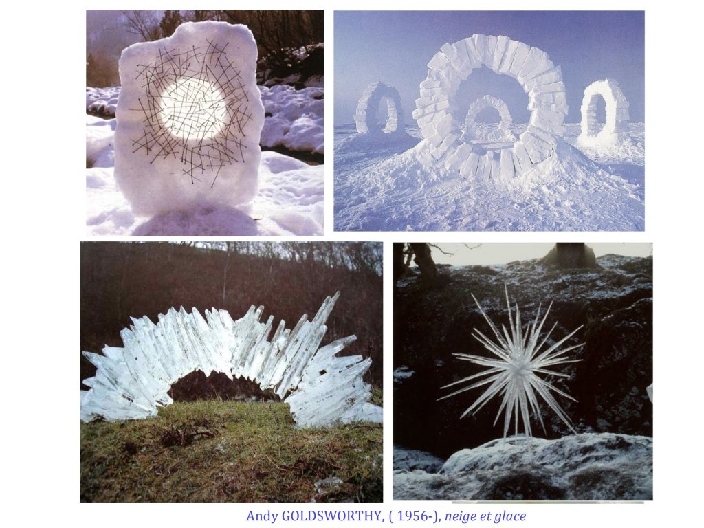 . La sculpture ayant souvent joué un rôle de monument et/ou de repère dans l’espace public ou naturel, il n’est pas surprenant de voir des artistes aborder la question du paysage. De même, si les sculptures étaient de matériaux durs et pérennes, défiant le temps, de nombreux artistes travaillent sur l’éphémère et l’ usure, comme réalité naturelle.