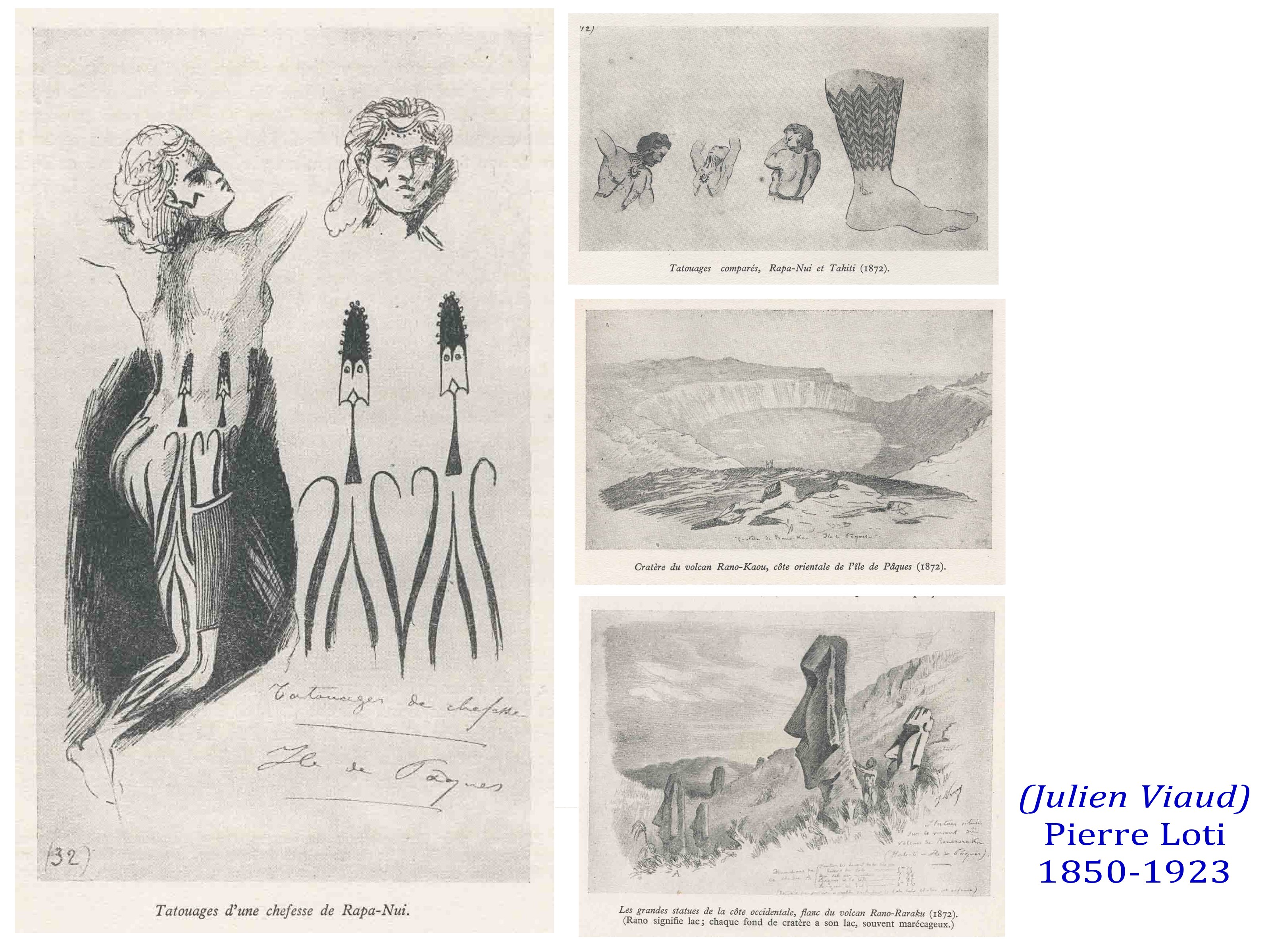 Loti qui de correspondant de guerre, envoyant des dessins, va se tourner vers l’écriture, estimant que ses dessins ne relatent pas suffisamment ses expériences. Victor Segalen, grand découvreur, qui relève des empreintes de stèles chinoise. Evidemment Melville et Stevenson, qui eux auront peu de relis picturaux, mais ferons gamberger des générations entières ; leurs récits, quasiment autobiographiques sont comme des carnets de route.