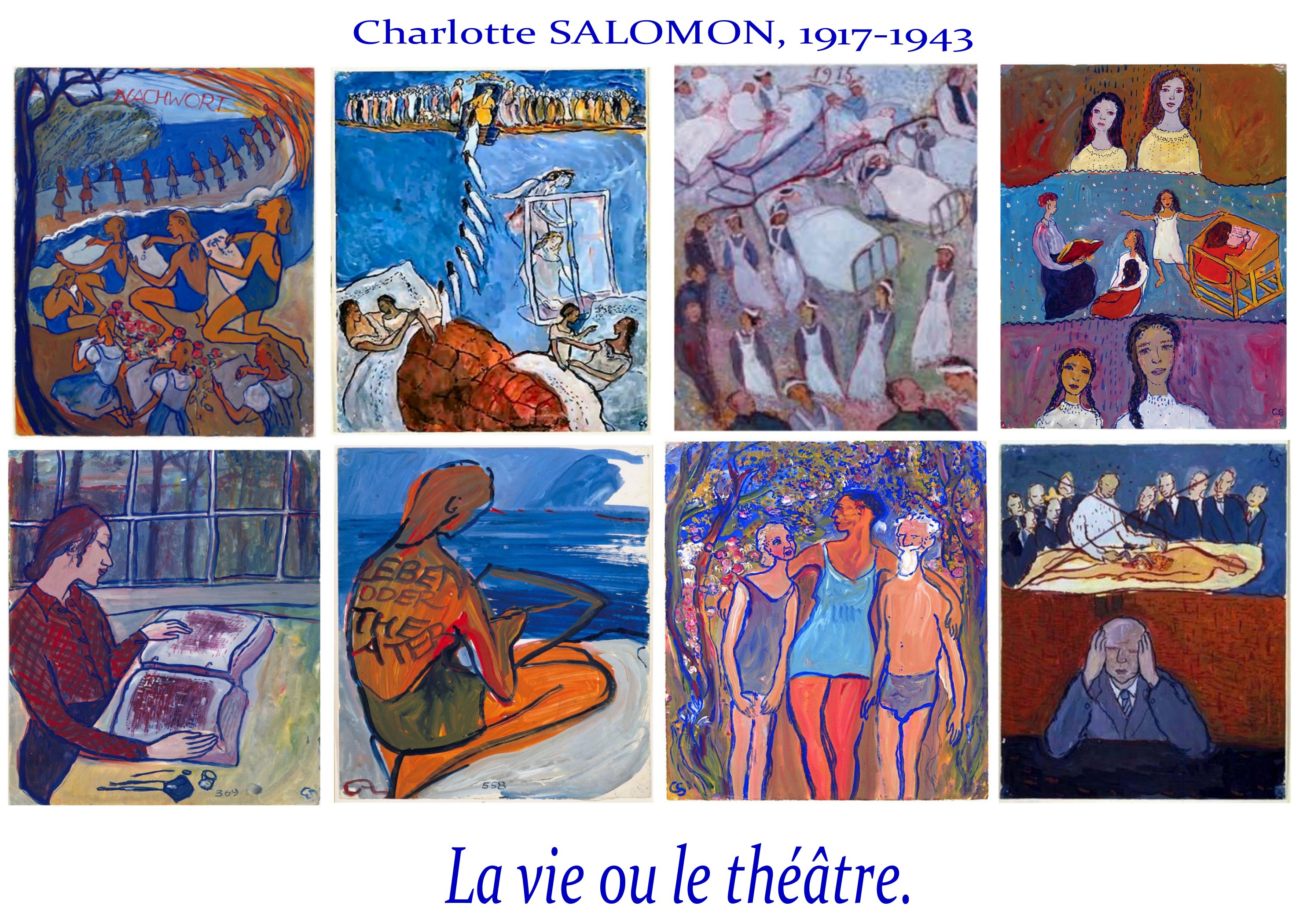 reste le plus extraordinaire carnet/journal intime, celui de Charlotte Salomon, jeune artiste allemande, qui finit assassinée en déportation et qui confia son œuvre à un ami, pressentant sans doute la catastrophe. Elle mêle magnifiquement écriture et figuration avec une invention très novatrice de l représentation de l’espace et de la durée, réunies par de savantes harmonies colorées.
