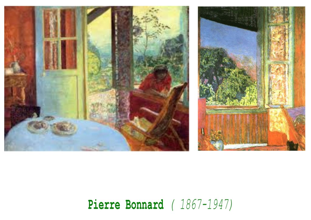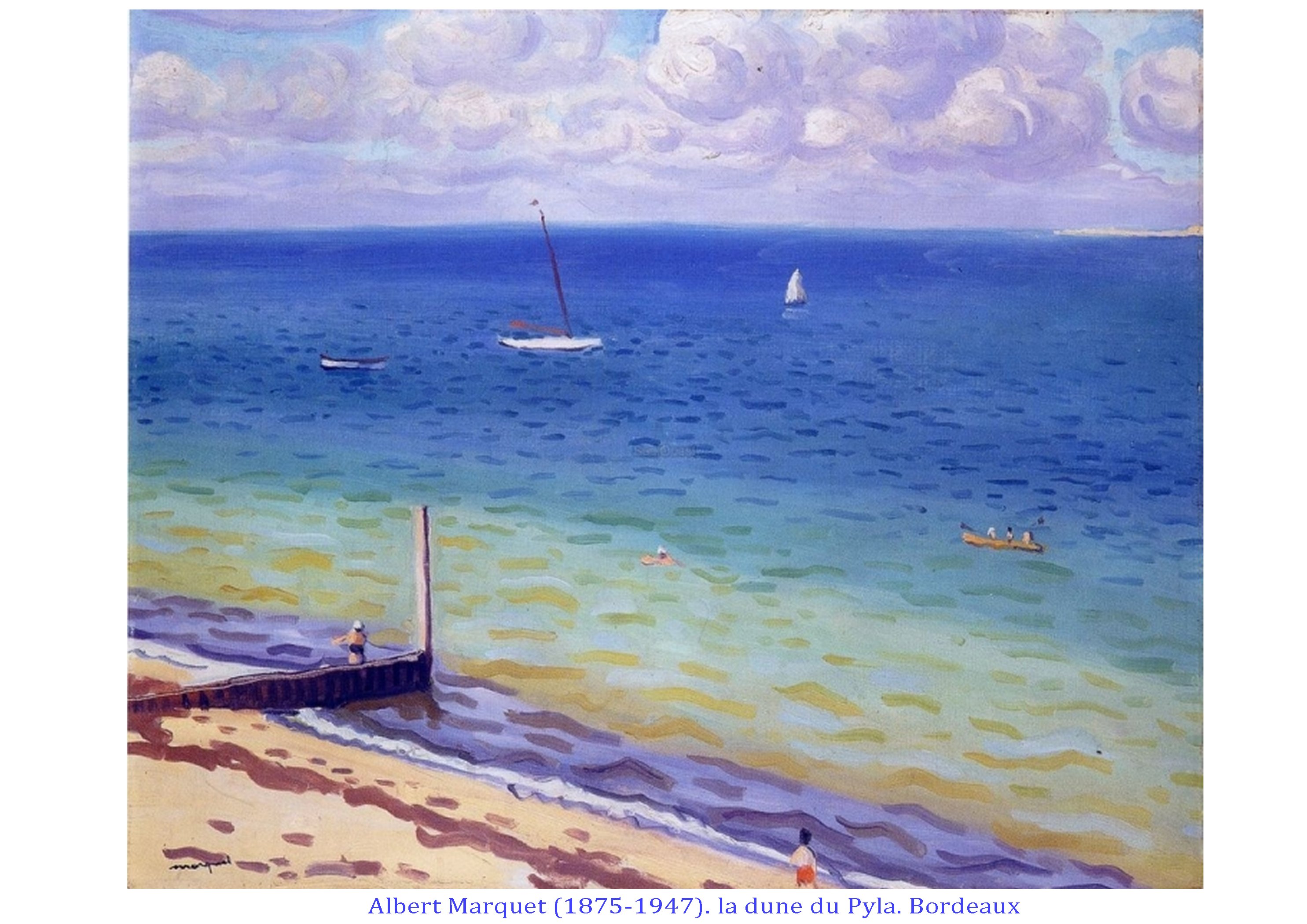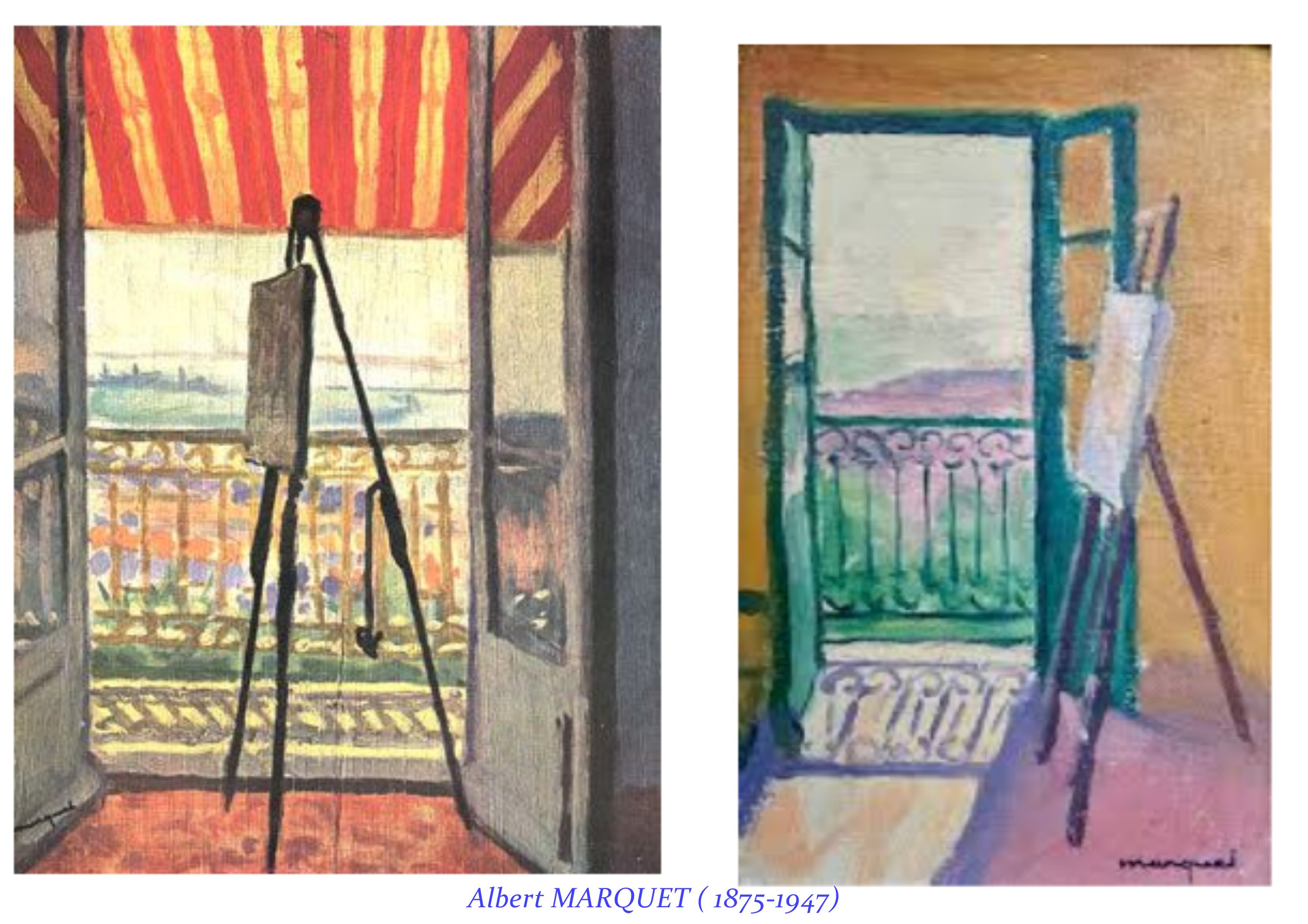 D’un point de vue pictural, Marquet comme Hopper et même De Stael continuent et explorent le regard de Corot Les chemins de COROT, la lenteur, les touches larges et satinées et même une ceraine distance d’avec le sujet. De même, Vuillard et Bonnard sont incontestablement des explorateurs post impressionnistes, étant d’ailleurs à peine plus jeunes que Van Gogh et Lautrec par exemple ; mais ils s’inscrivent plutôt dans le regard de Morisot, Renoir, Monet.Berthe MORISOT, sur la véranda.