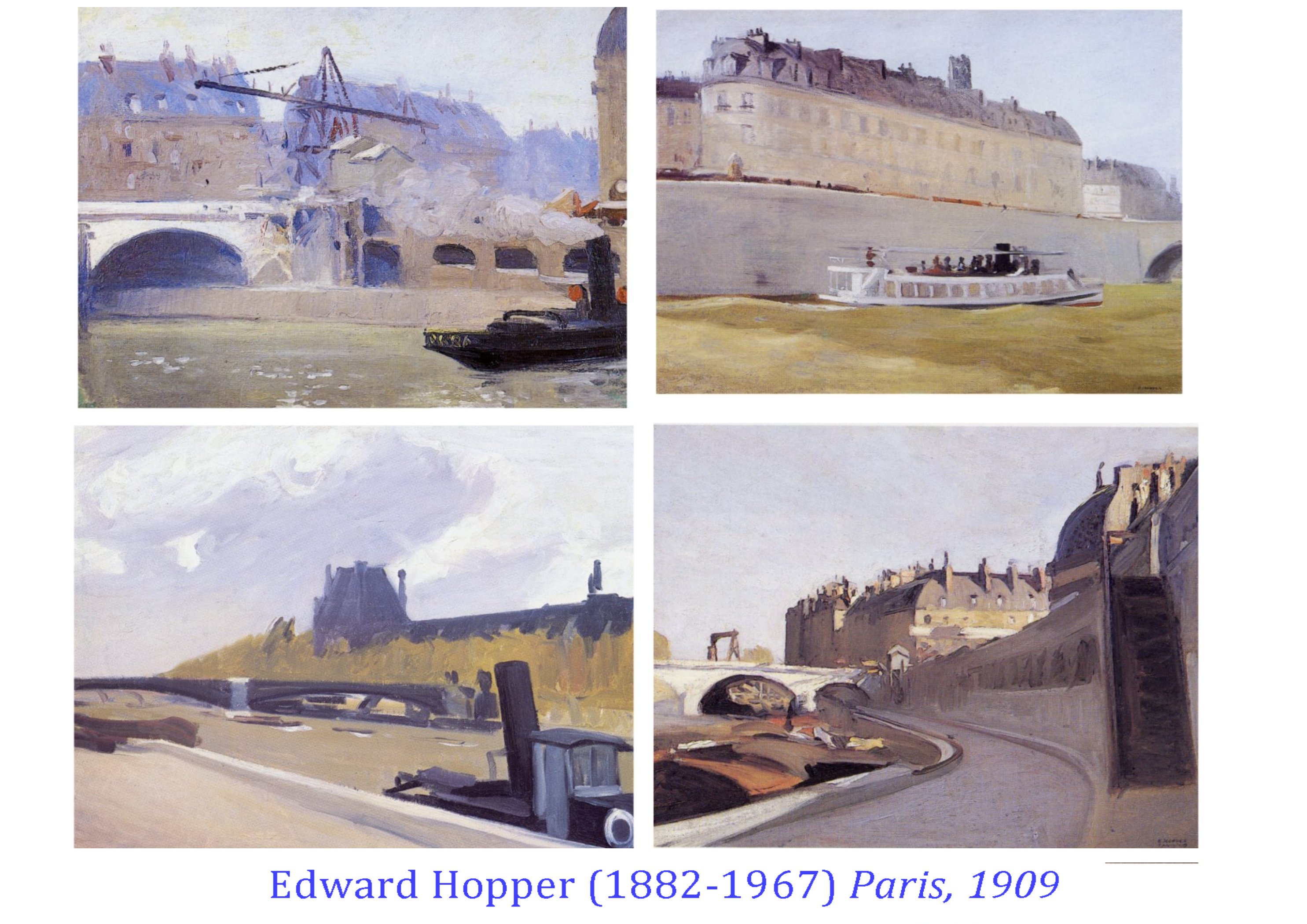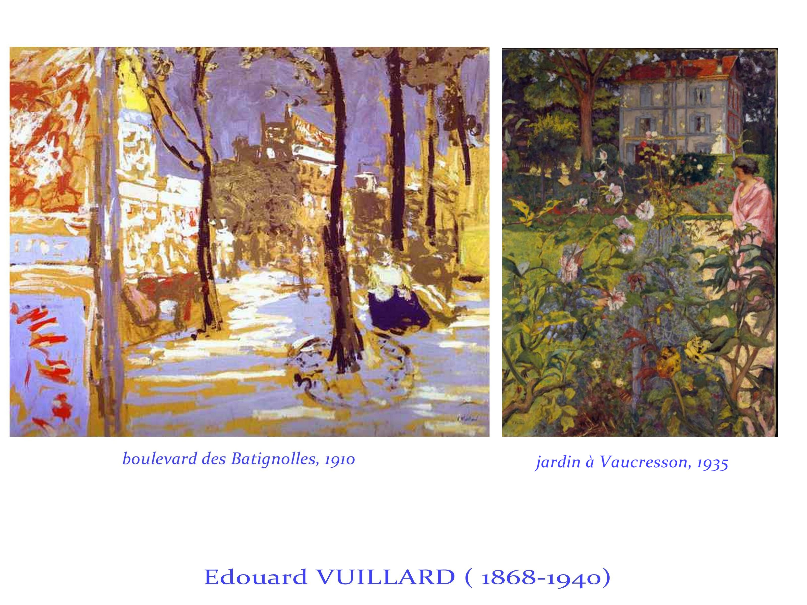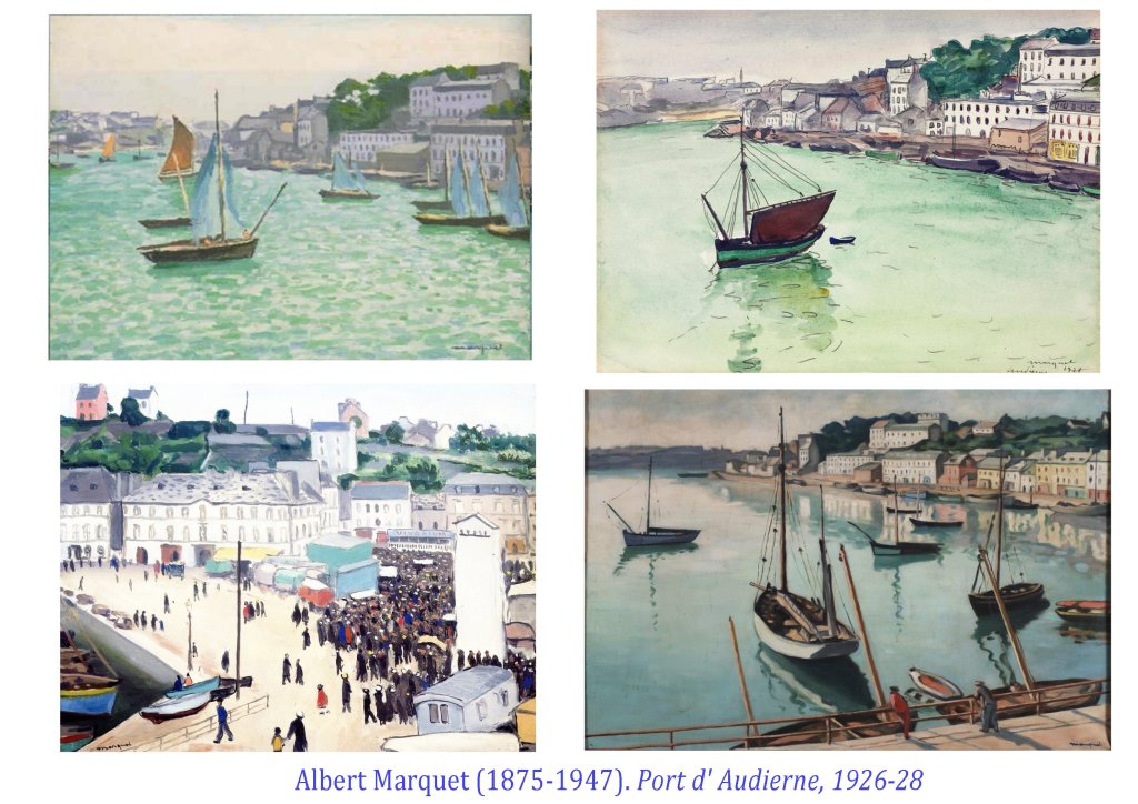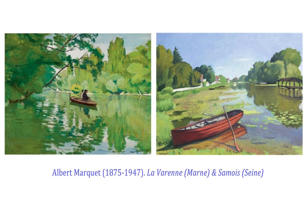 D’un point de vue pictural, Marquet comme Hopper et même De Stael continuent et explorent le regard de Corot Les chemins de COROT, la lenteur, les touches larges et satinées et même une ceraine distance d’avec le sujet. De même, Vuillard et Bonnard sont incontestablement des explorateurs post impressionnistes, étant d’ailleurs à peine plus jeunes que Van Gogh et Lautrec par exemple ; mais ils s’inscrivent plutôt dans le regard de Morisot, Renoir, Monet.Berthe MORISOT, sur la véranda.