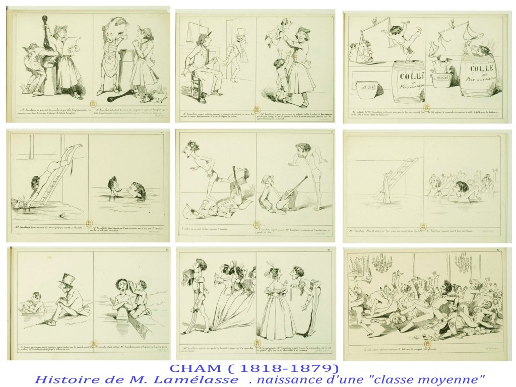 Assez longtemps, il y a un « style » caricatural, assez stéréotypé, ( Gill, Cham per exemple et même Daumier). réalisé par des artistes ayant fréquenté les académies, brillants dessinateurs, maîtrisant la ligne, l’anatomie, les modelés, la perspective, le travail de gravure et/ou de lithographie.