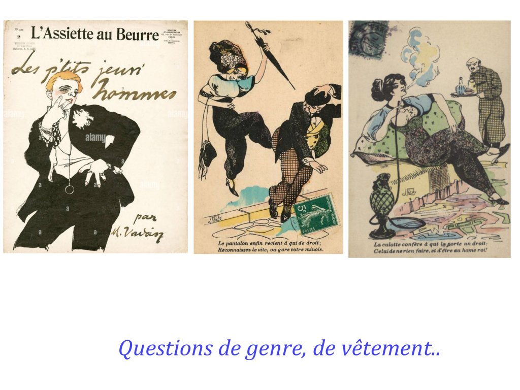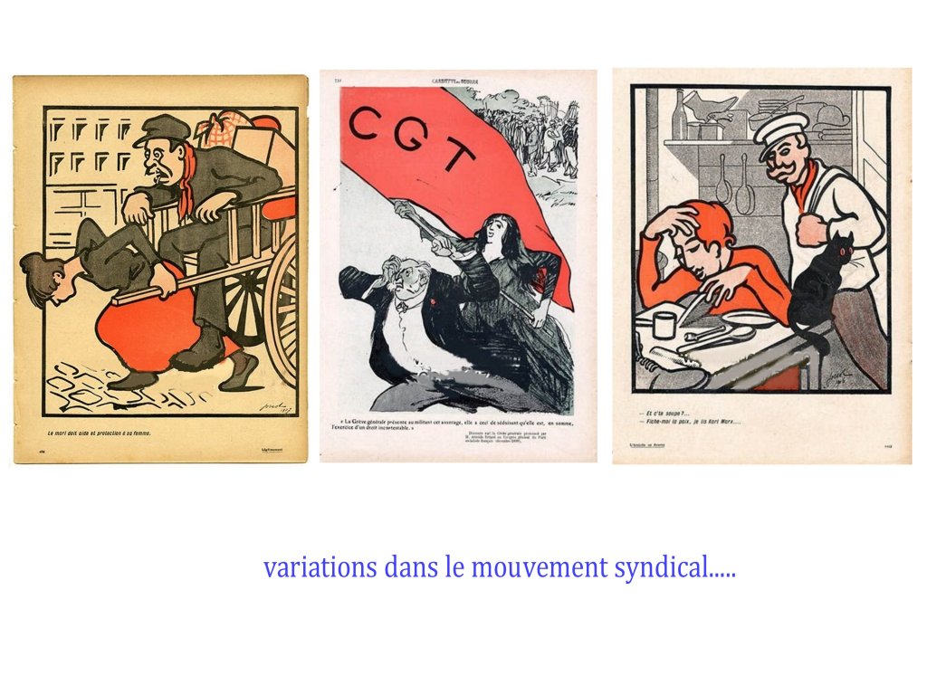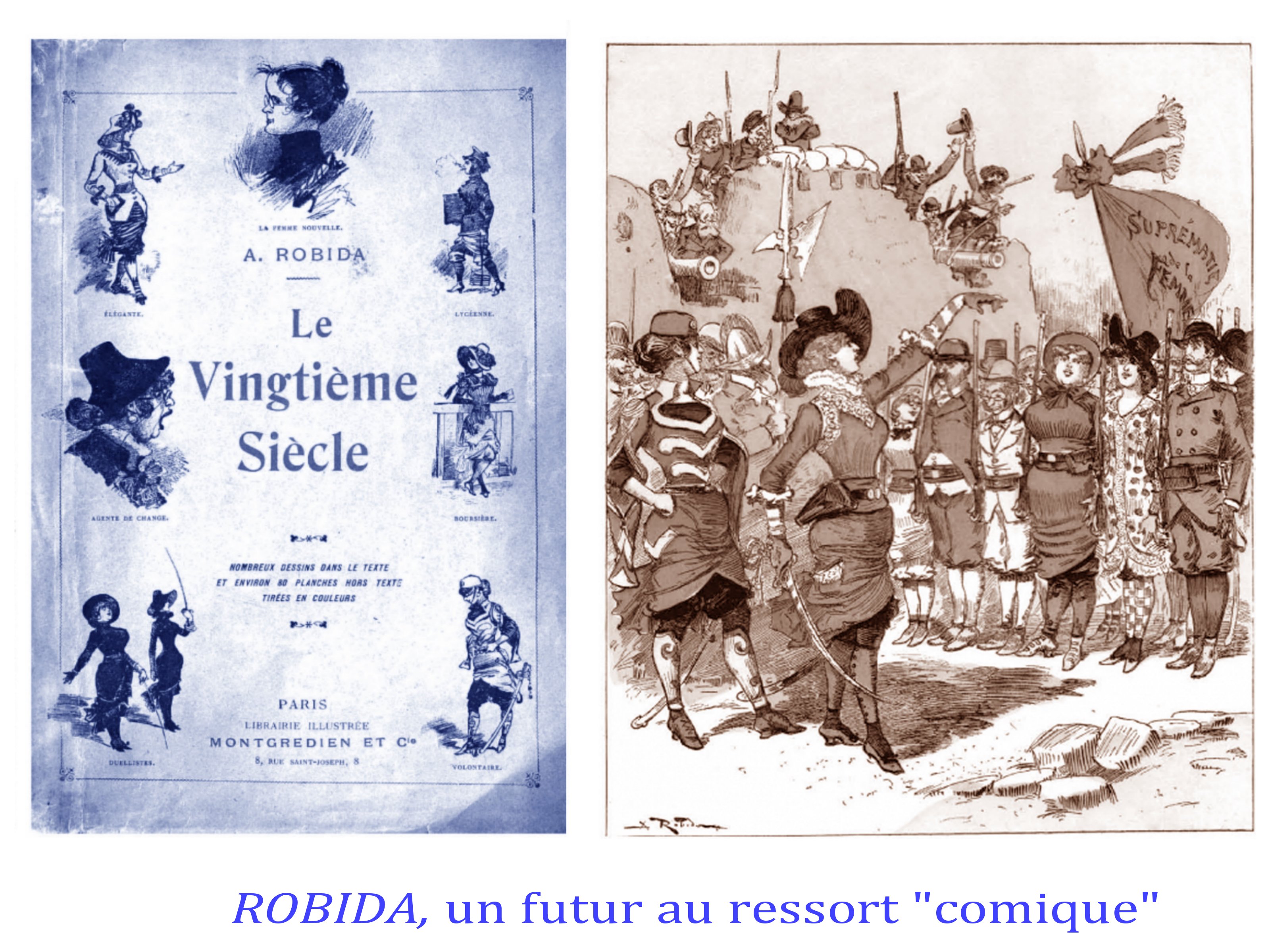 Certains caricaturistes sont plus détachés et envisagent un « grand remplacement », qui serait l’avenir étonnant et curieux , fruit de la victoire des droits des femmes, par exemple les caricatures des « Vésuviennes » ( totalement oubliées!), femmes combattantes de la République de 1848, dessinées de façon flatteuses, la caricature s’exerçant plus sur le « comique » de situation, jusqu’aux visions du futur par Robida, comme émoustillé, par les situations nouvelles où des femmes pourraient faire valoir leurs compétence et leur physique.
