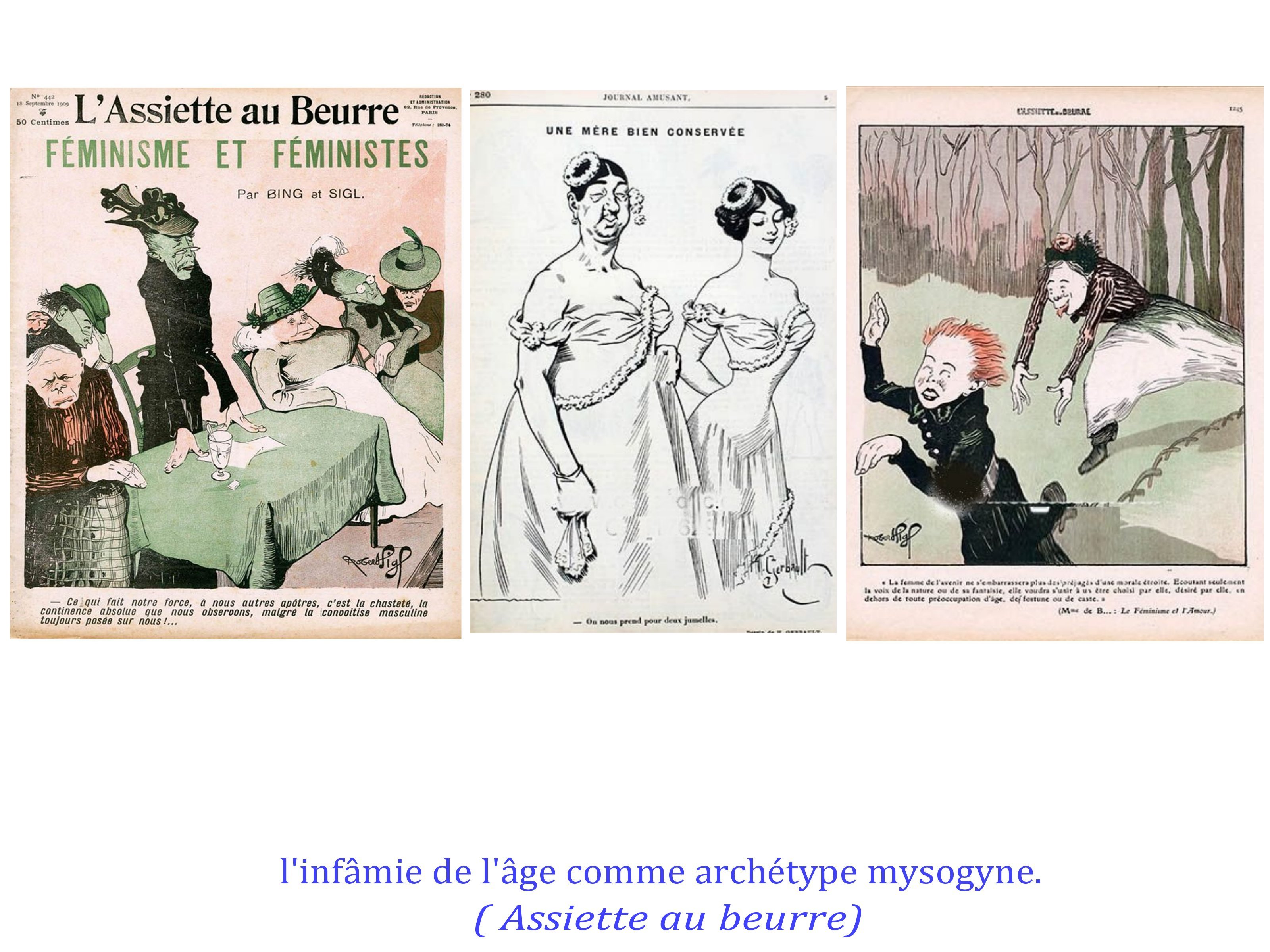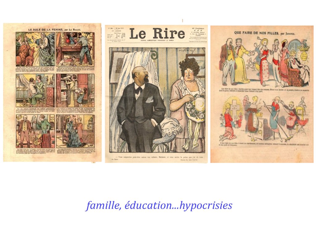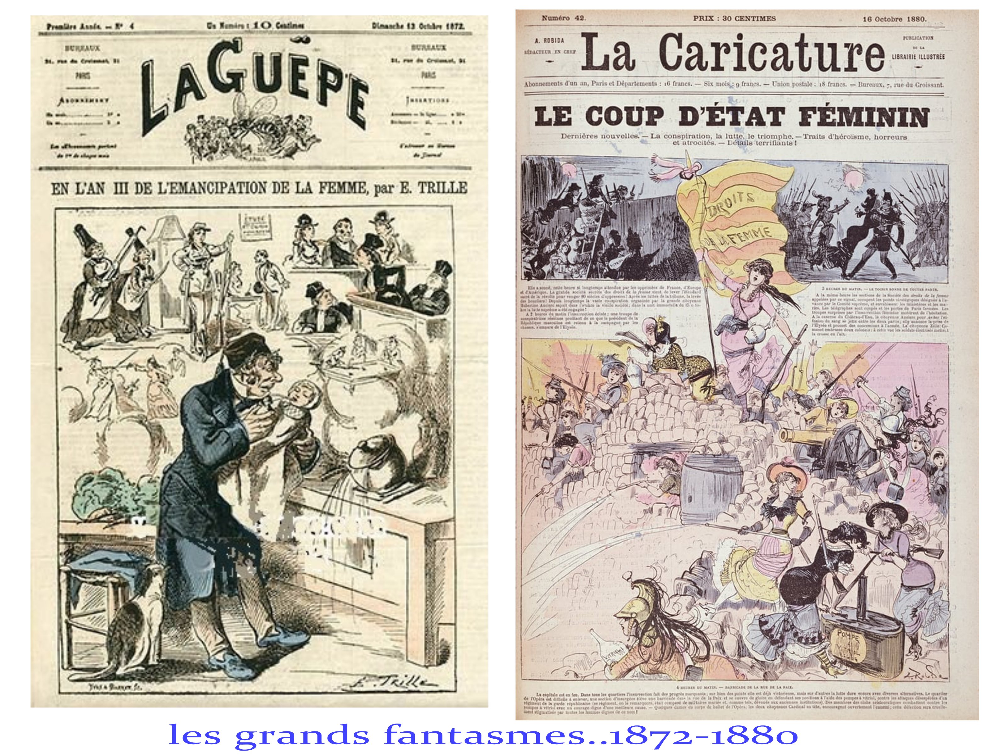 le pouvoir des femmes et leurs revendications est vu comme grotesque, inconcevable, dérogeant aux rôles et aux carcans imposés par un patriarcat millénaire et renforcé, à la fois par le Code Napoléon et la main-mise des St Sulpiciens sur l’éducation des enfants et l’encadrement religieux des femmes au 19e siècle.