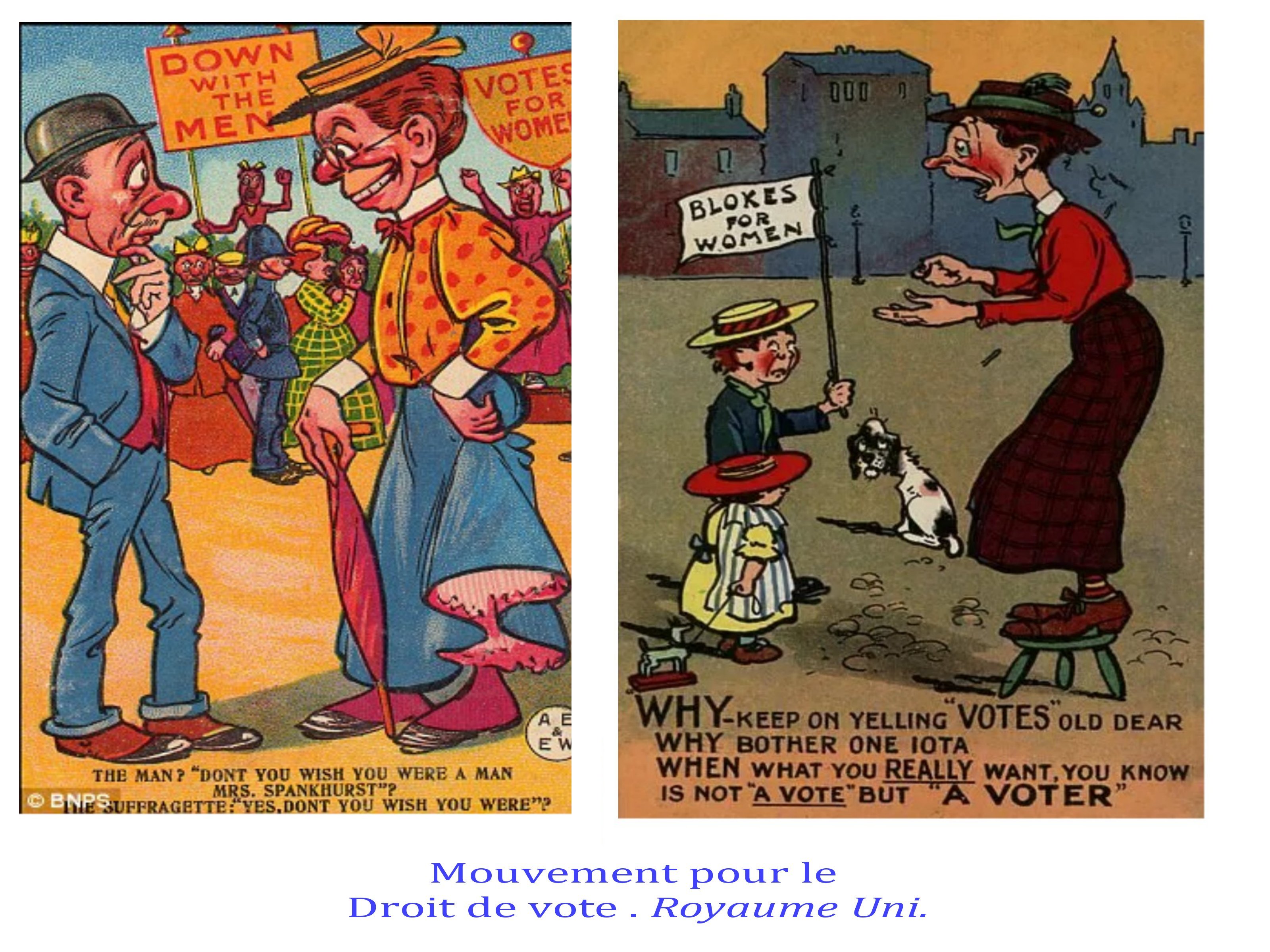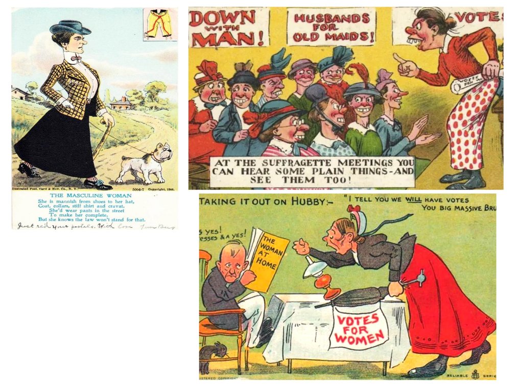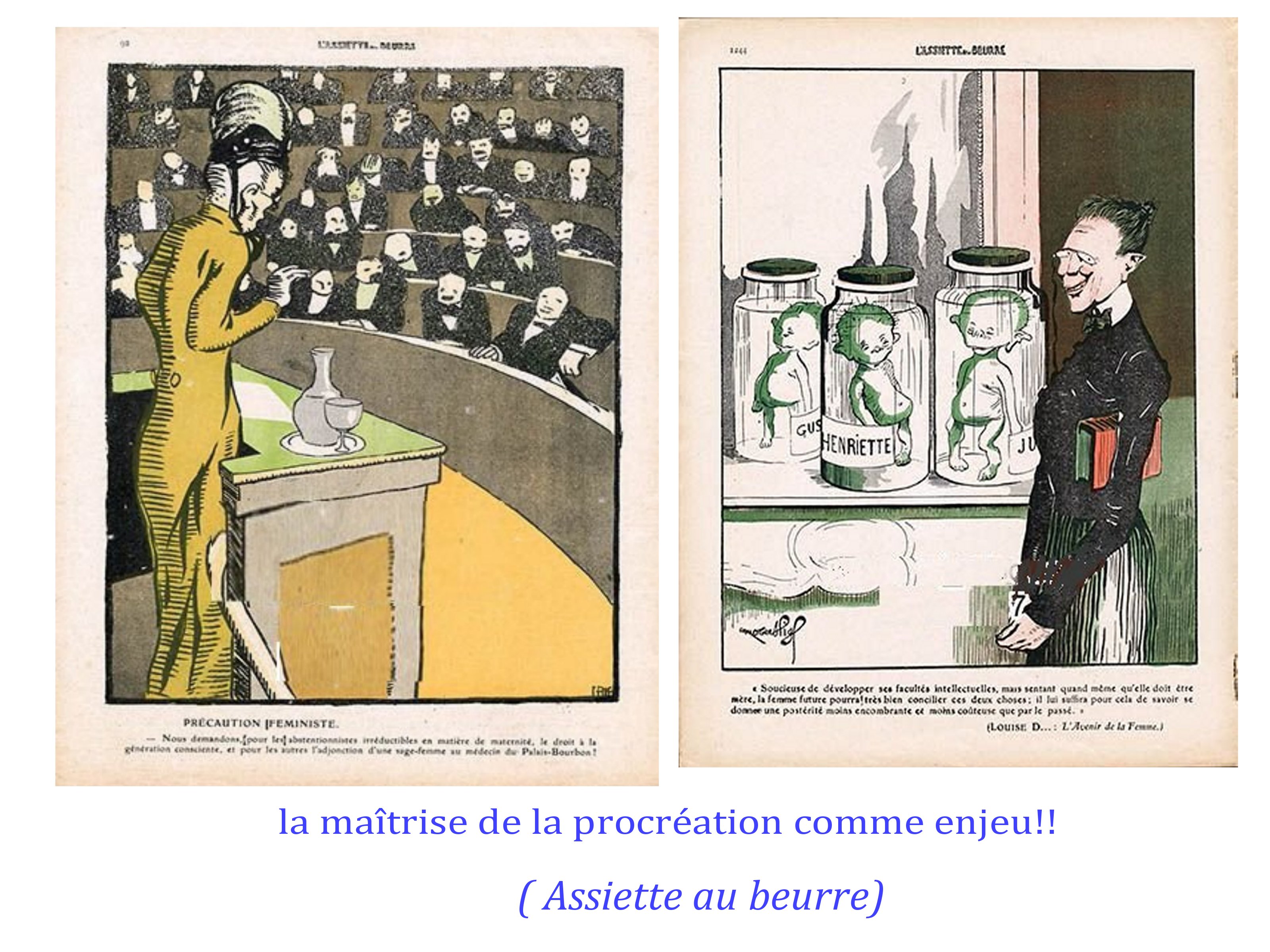 le pouvoir des femmes et leurs revendications est vu comme grotesque, inconcevable, dérogeant aux rôles et aux carcans imposés par un patriarcat millénaire et renforcé, à la fois par le Code Napoléon et la main-mise des St Sulpiciens sur l’éducation des enfants et l’encadrement religieux des femmes au 19e siècle.