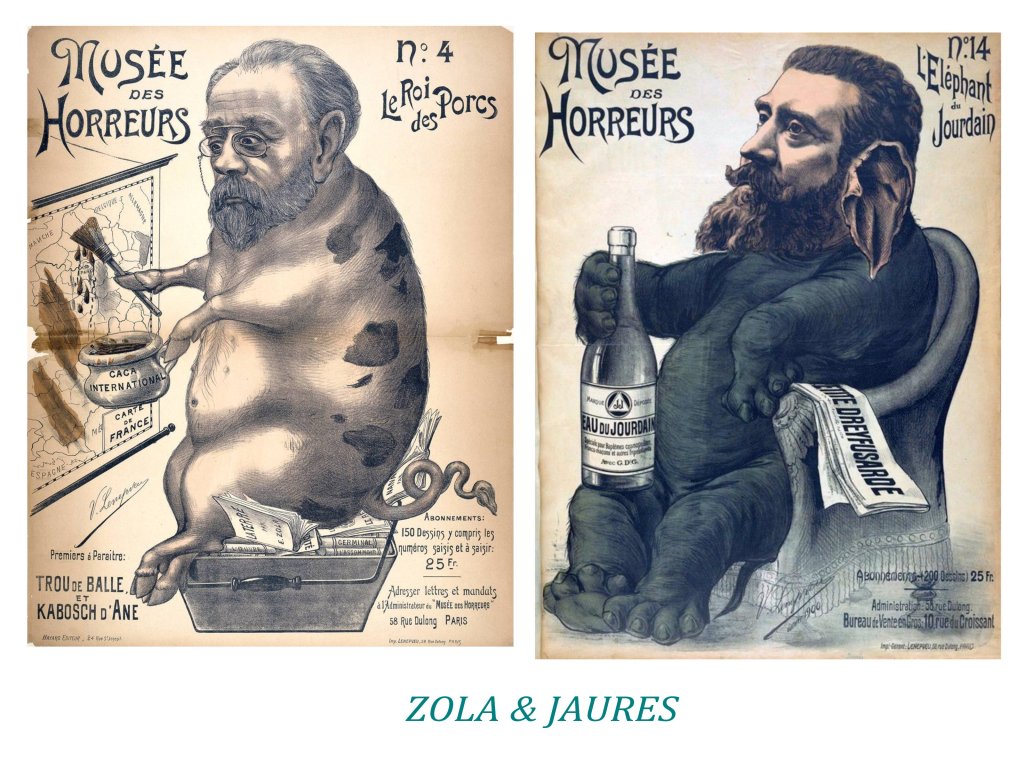 Grands mais souvent immondes. Sexisme et misogynie, antisémitisme suintant du côté des républicains, des catholiques comme des anti-cléricaux. Racisme envers les colonisés. La virtuosité des artistes est au service de causes malodorantes, mais hélas aux relents contemporains.