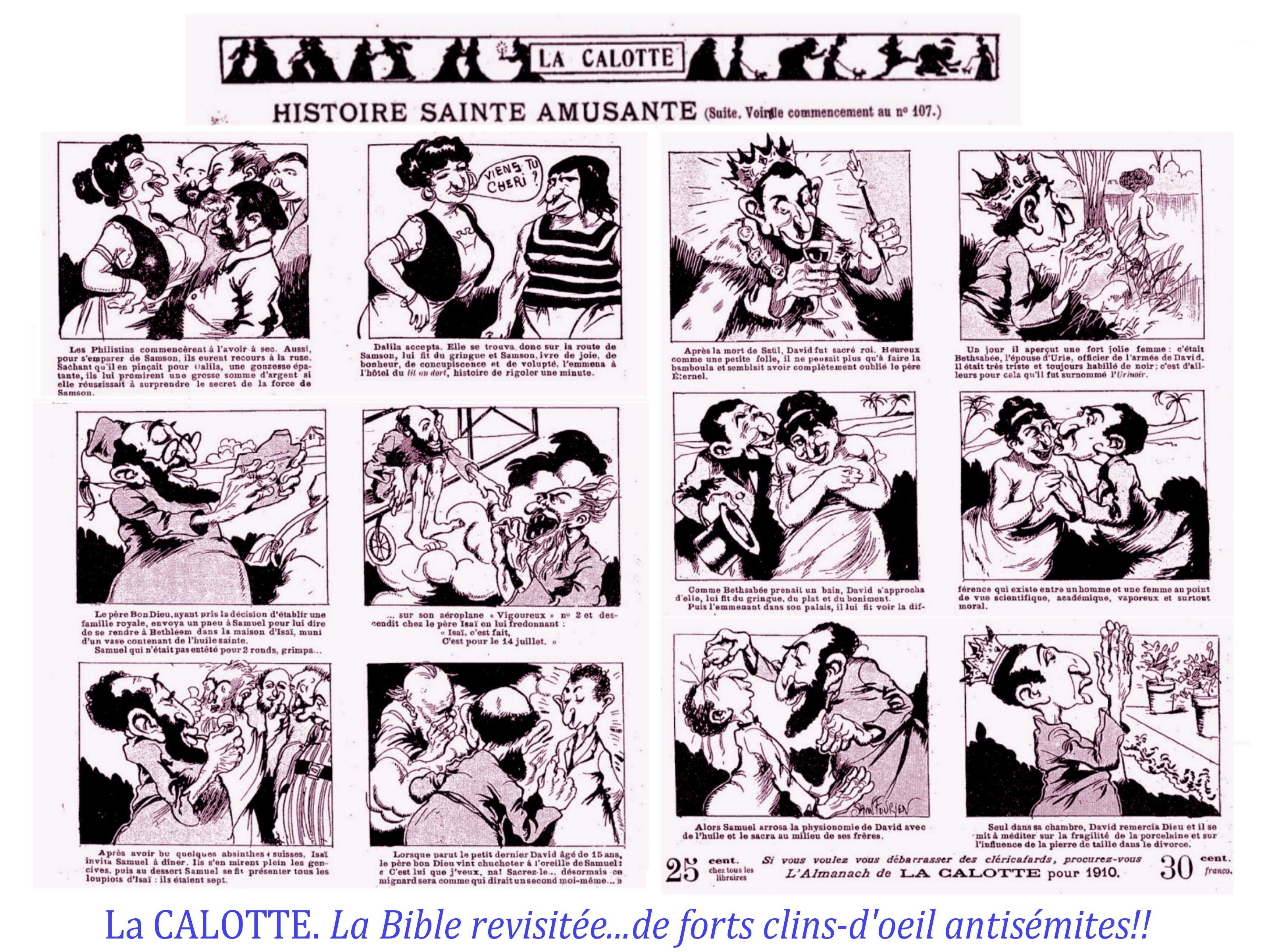 Mais il glisse vite vers un sexisme douteux et une gaudriole peu subtile et même vers un antisémitisme débridé, quand il s’agit de se moquer de la Bible…..une histoire de « juifs ».