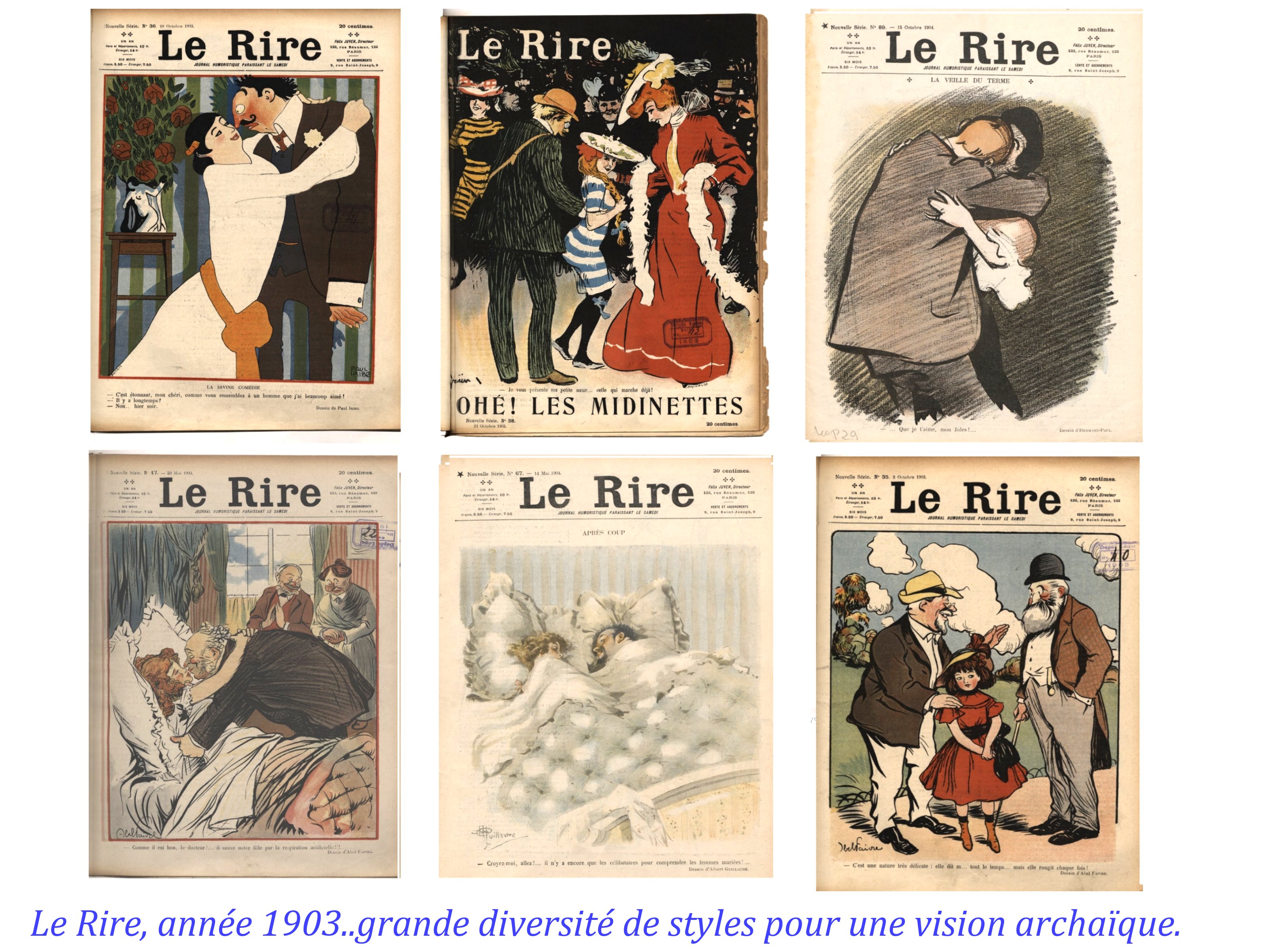 La diversification des formations, comme des moyens ; la possibilité de la couleur, l’influence des lithographies de Lautrec par exemple, incite certains caricaturistes à se distinguer et à opter vers l’épure et un certain minimaliste. Même l’odieux Caran Dache s’y exerce.