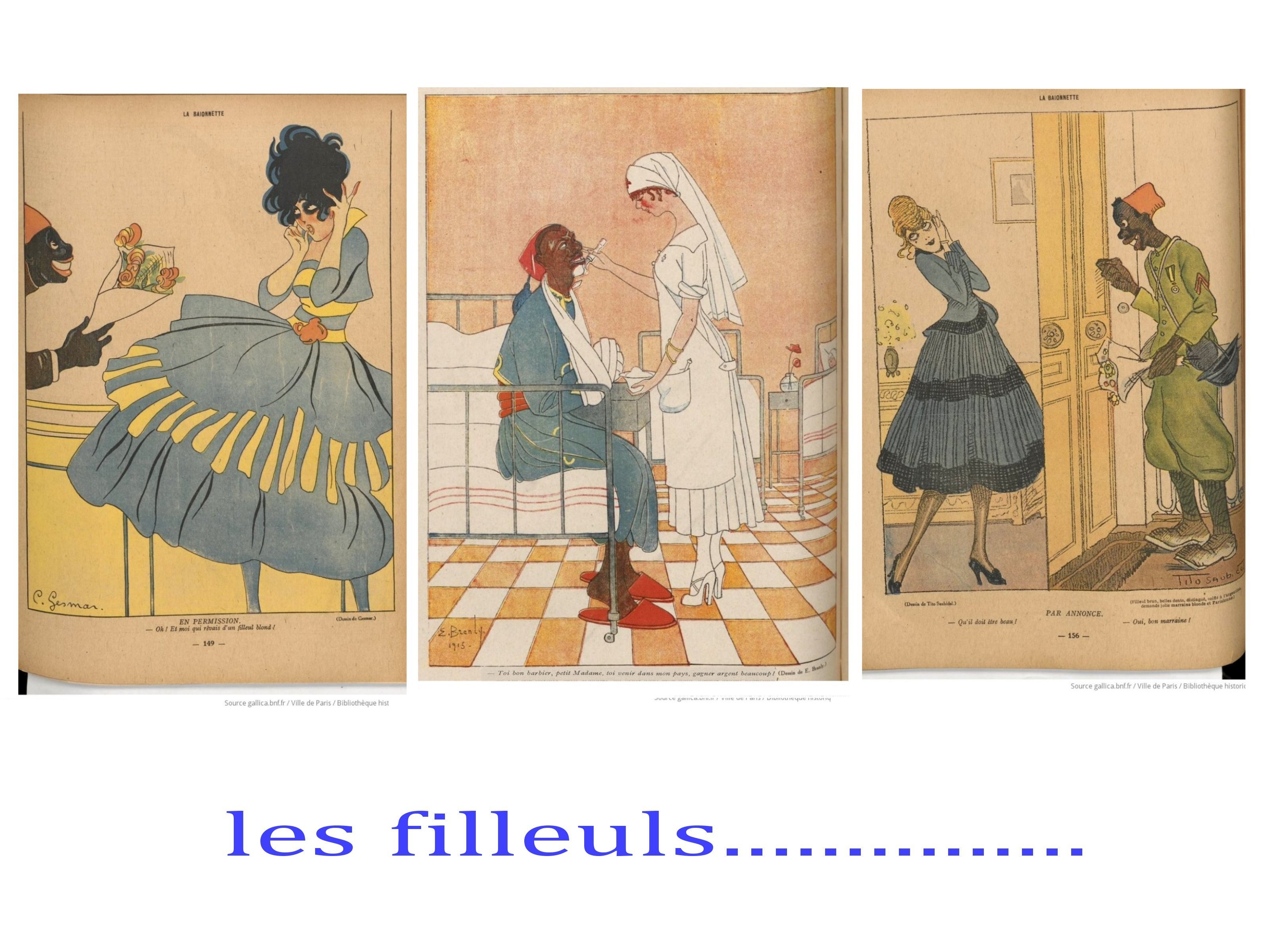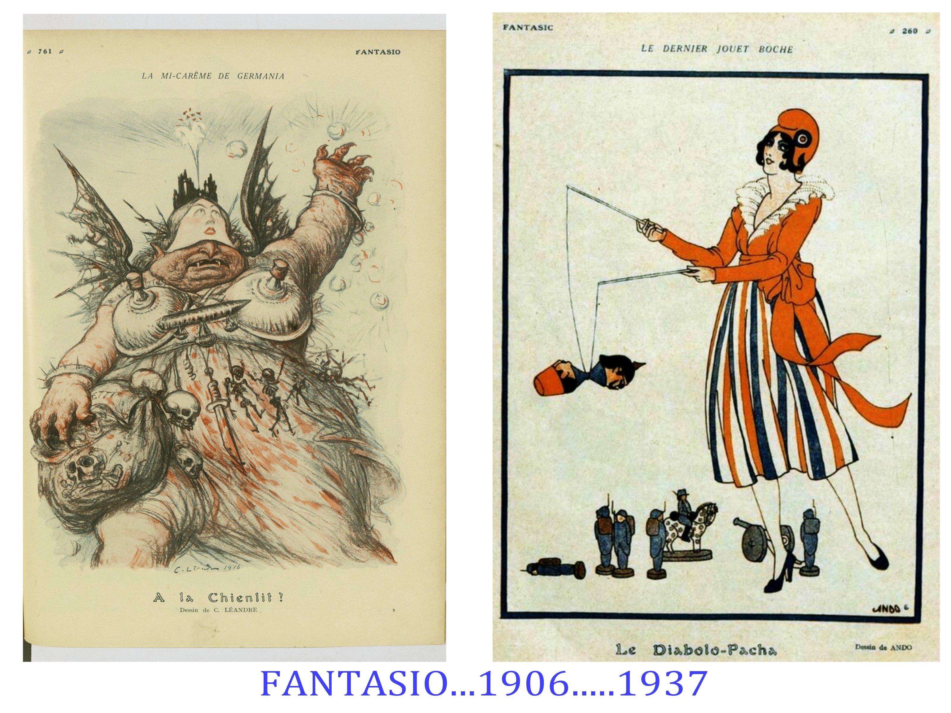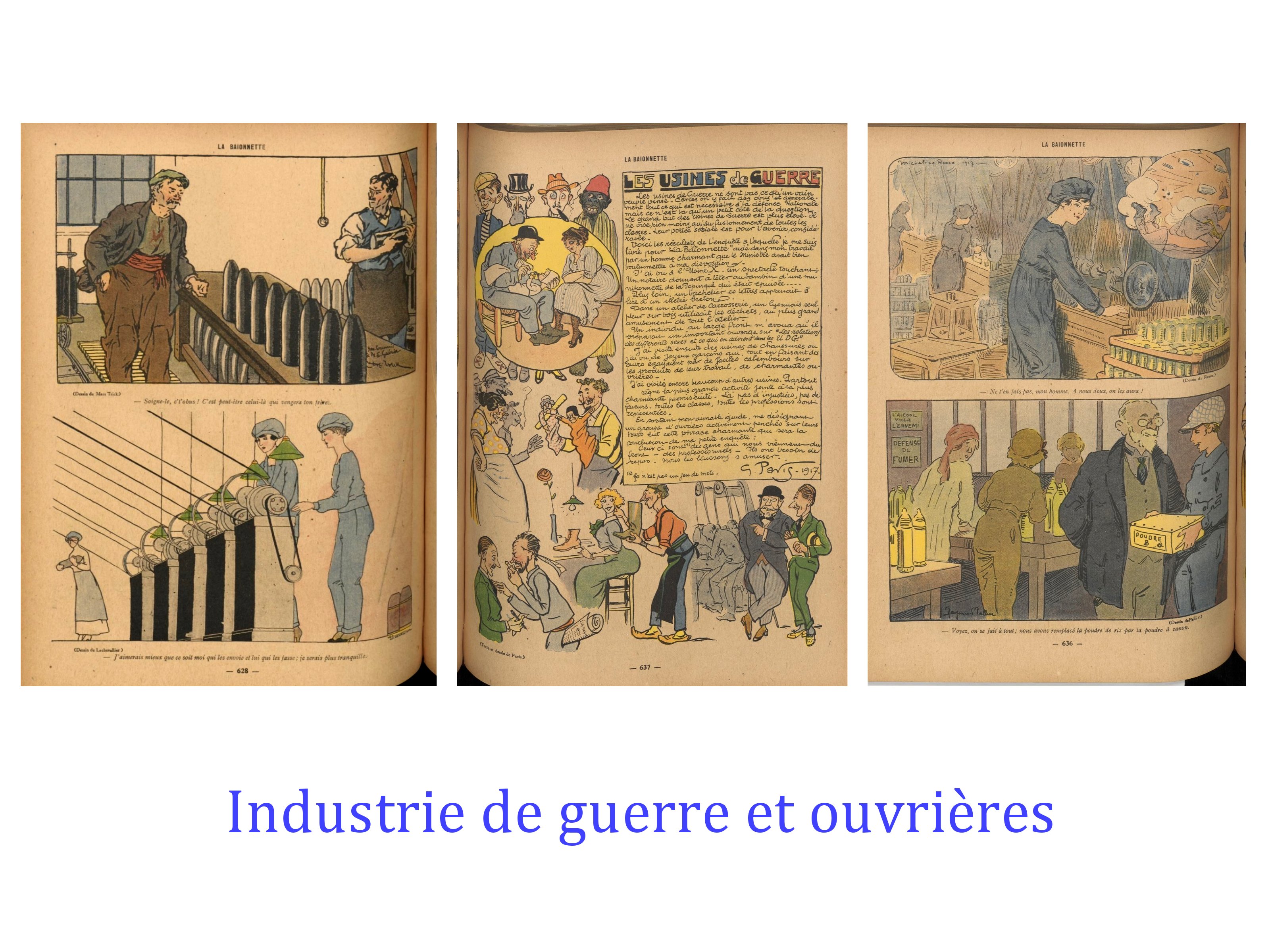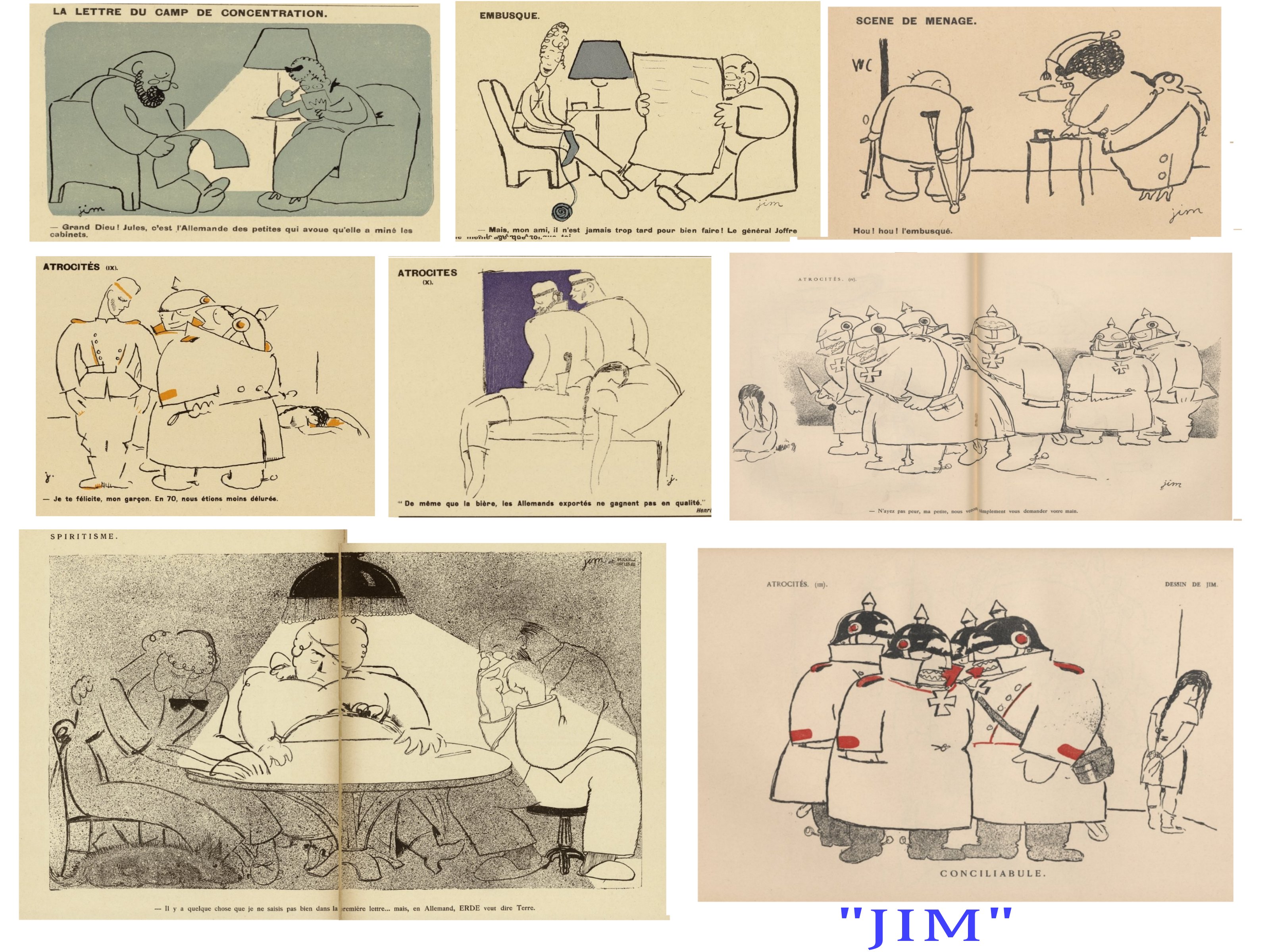Moins diverse et plus sombre est « la Grimace », quand, » le Régiment » et « Fantasio », sont clairement plus « léger » et lourds à la fois dans le registre du sexisme. Le public est ici, non pas l’ensemble de la société ( front et arrière), mais surtout les soldats, voire les officiers ( Fantasio). Hypothèses à vérifier.
