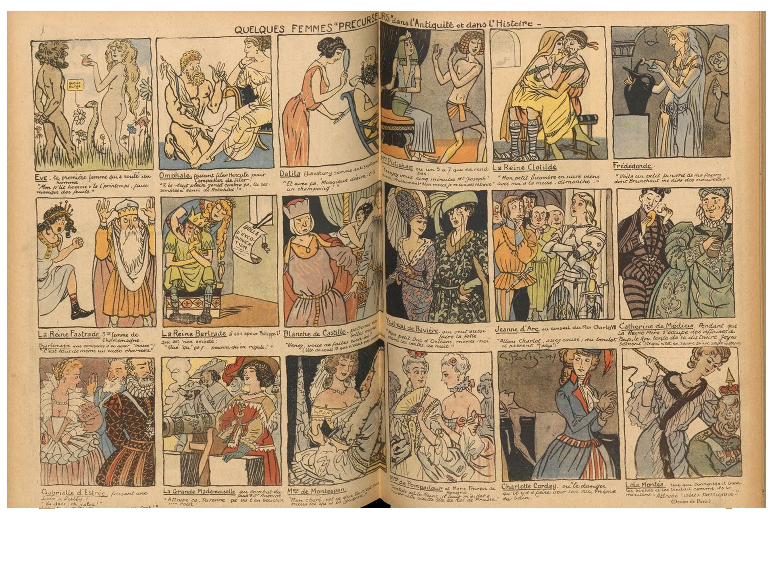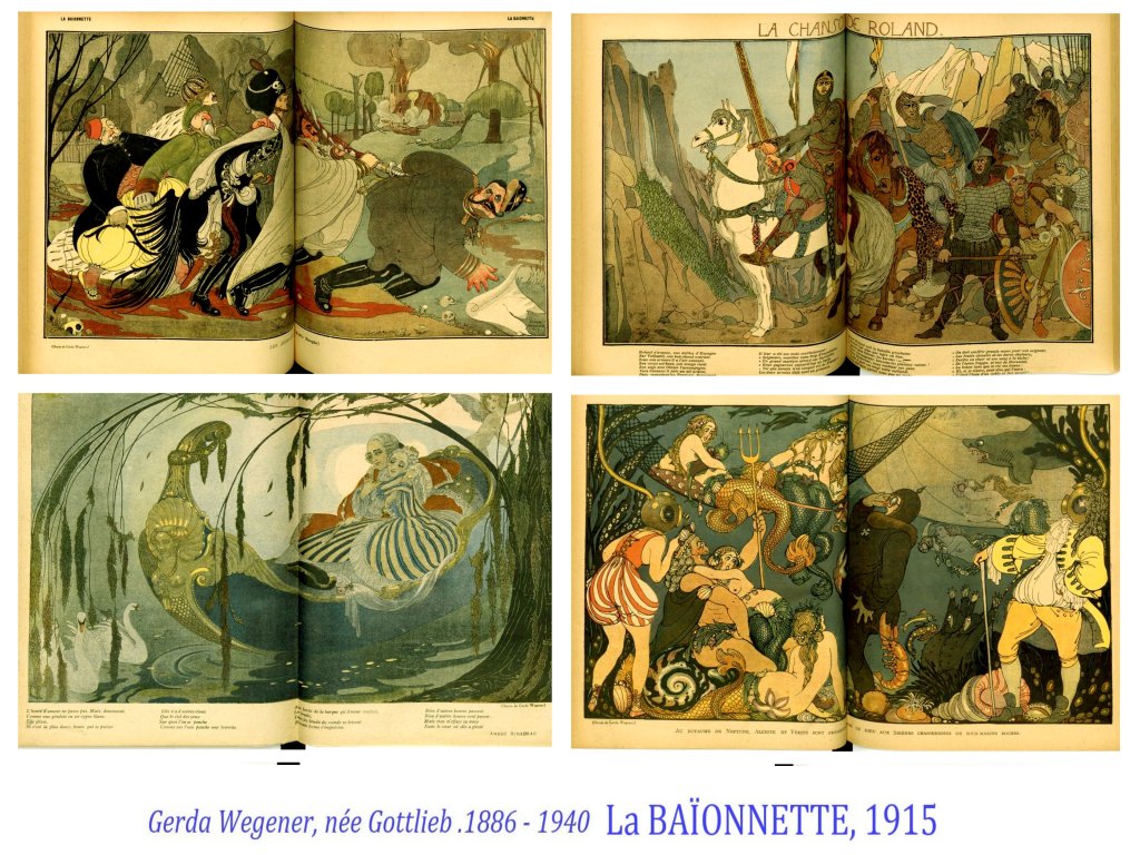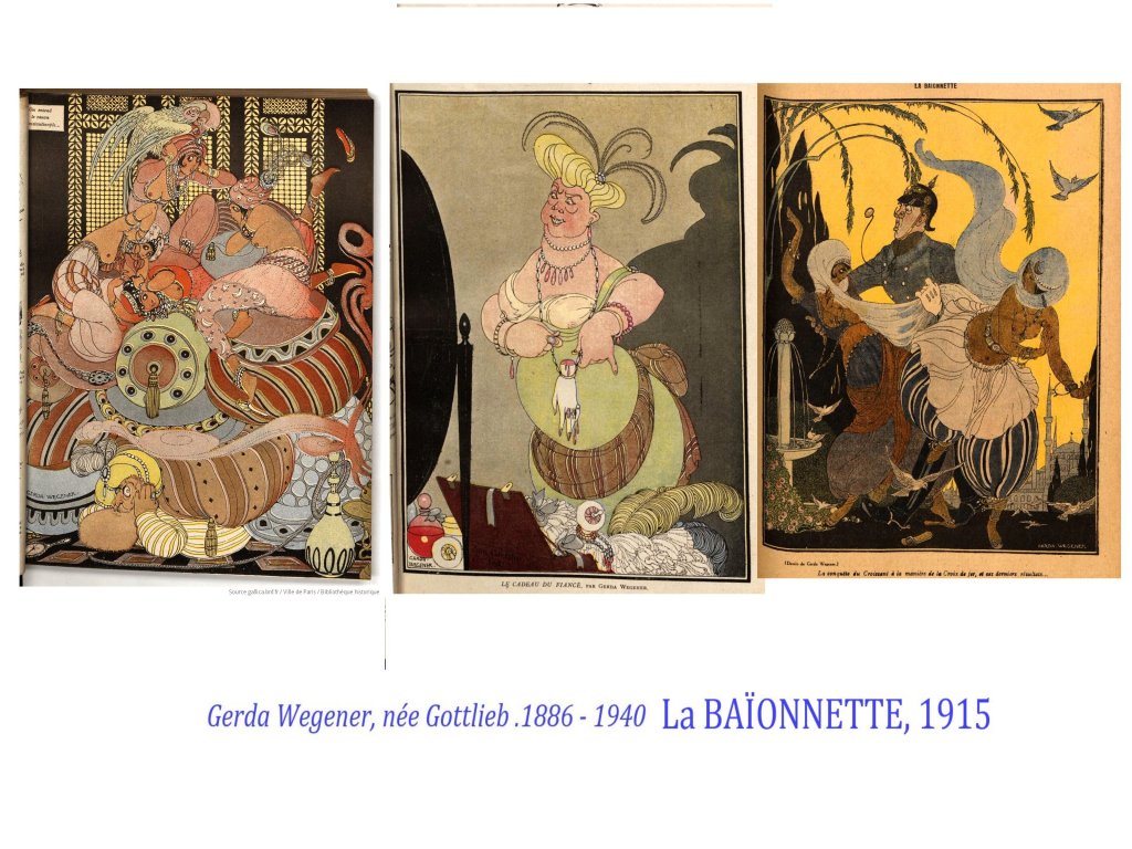 Même si bien entendu, on retrouve les vieux réflexes sexistes, voire racistes et misogynes dans certains dessins, une place asses importante est faite à certaines femmes chroniqueuses ( Colette) et illustratrices comme Gerda Wegener.