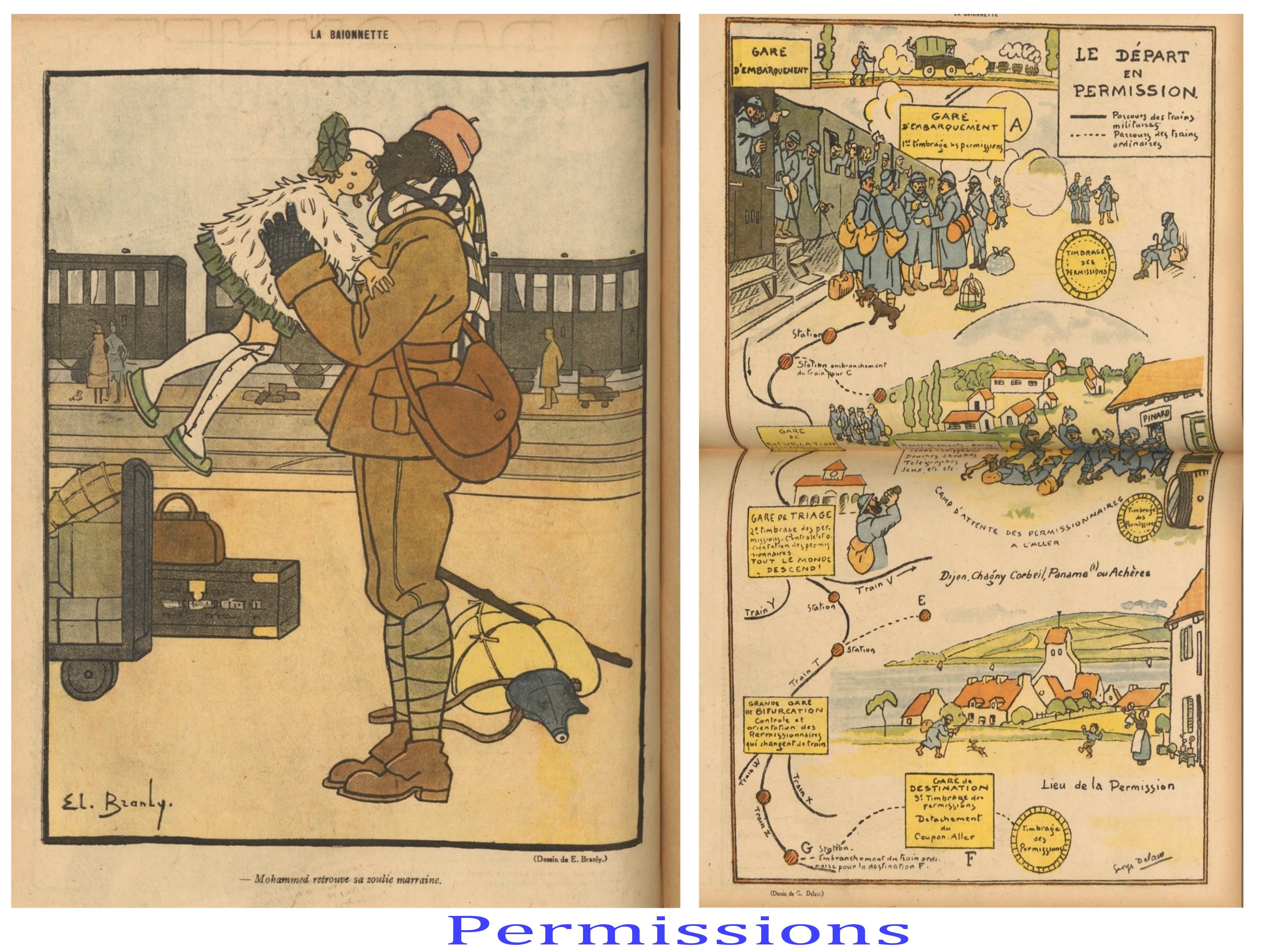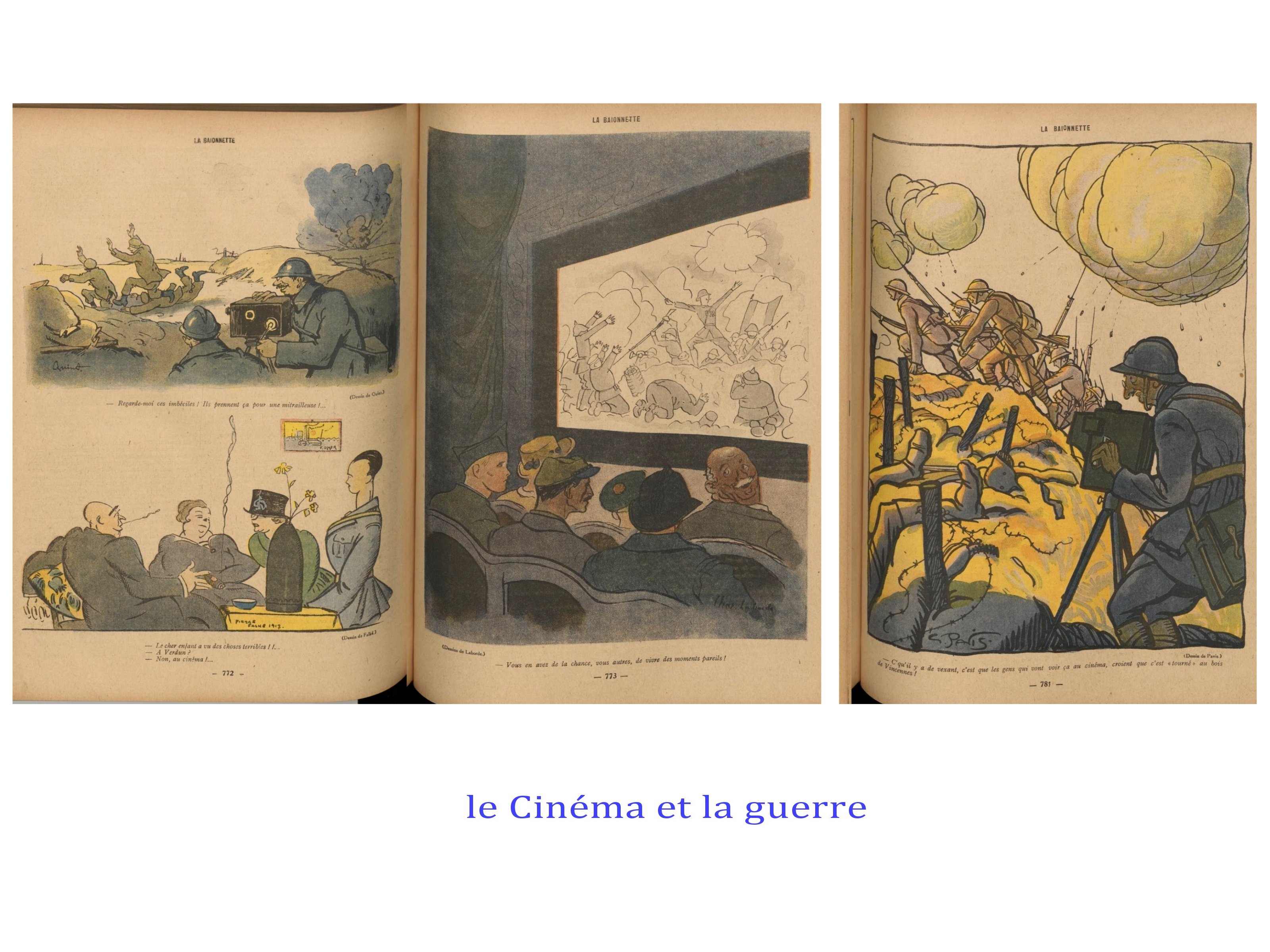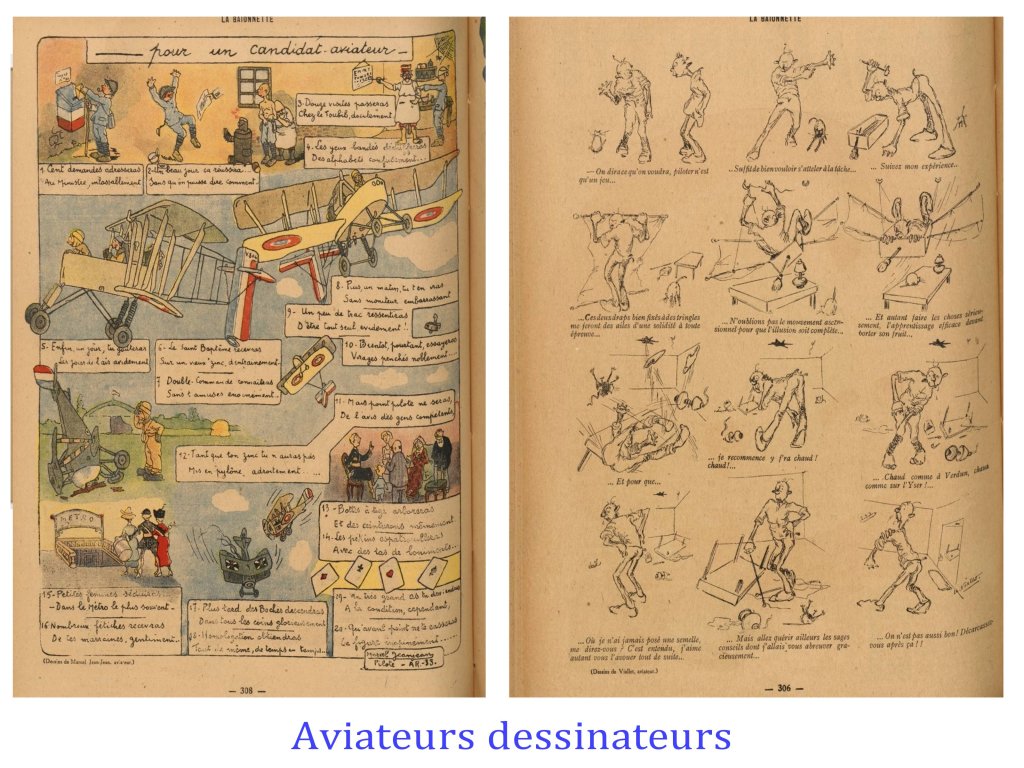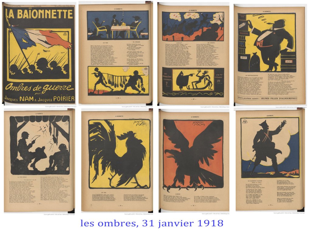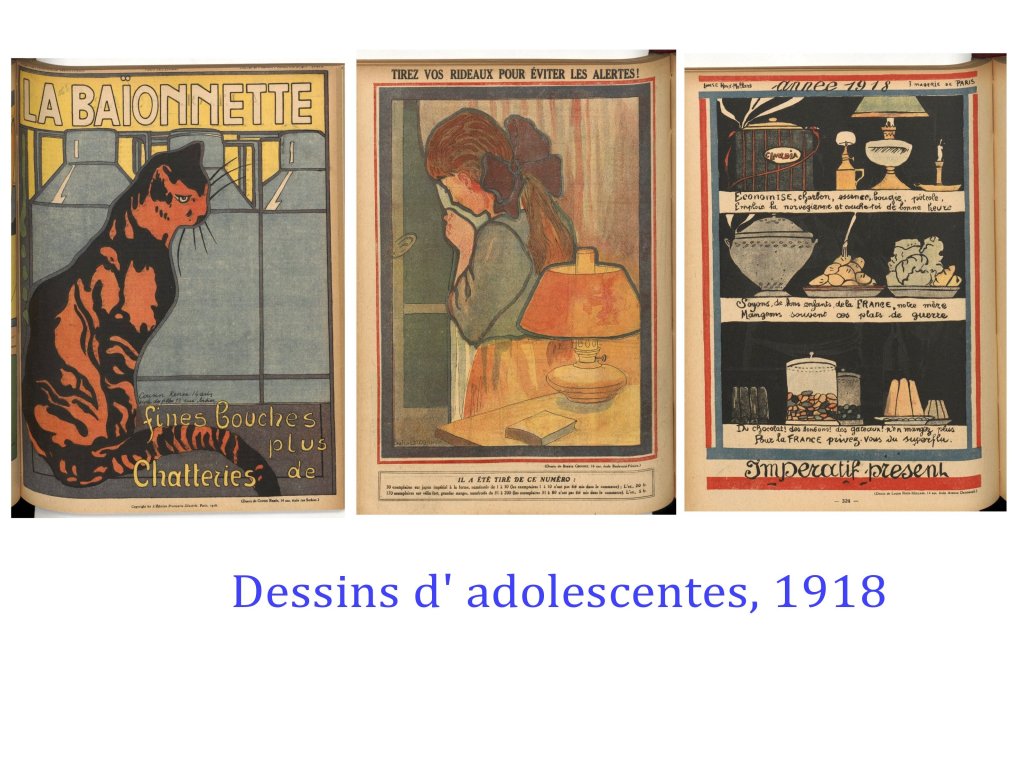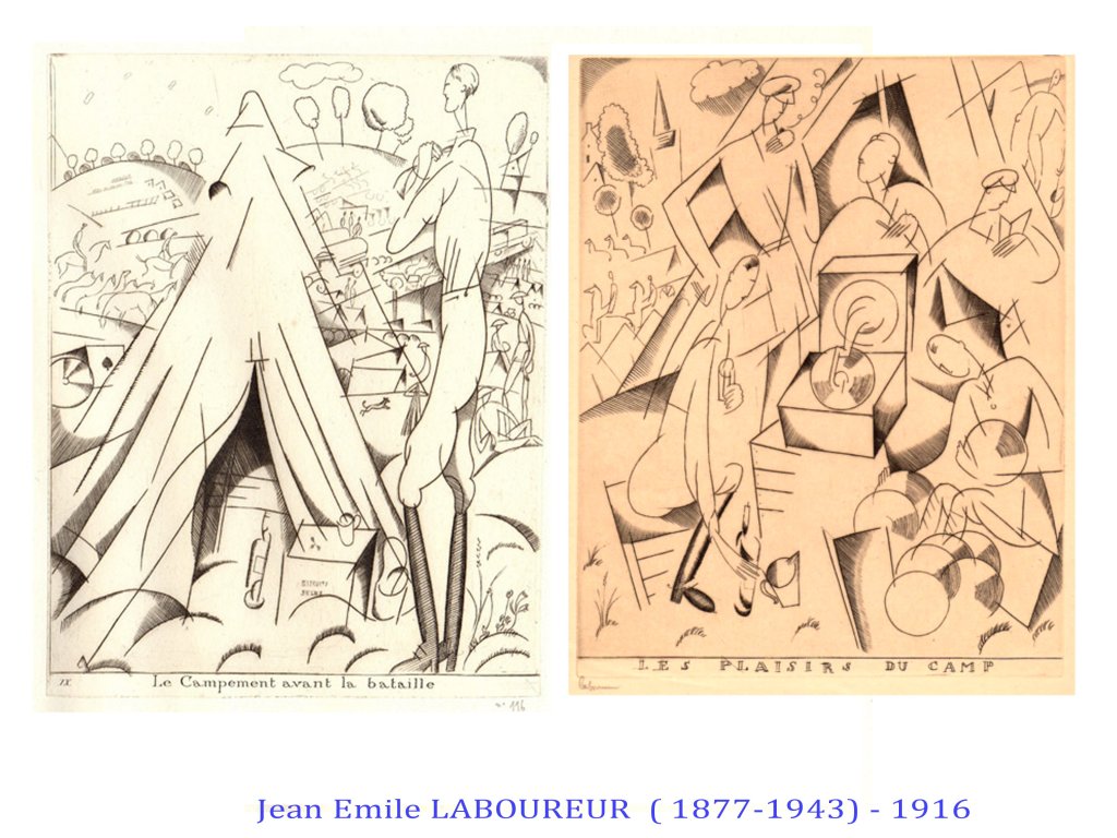 Pendant la guerre de 14-18, de nombreux artistes s’exilent aux USA et en Suisse ( les dadaïstes), pendant que les autres, bon ou mal gré, participent à l’élan « patriotique », soit au front, soit dans les revues destinées aux soldats comme à « l’arrière ».