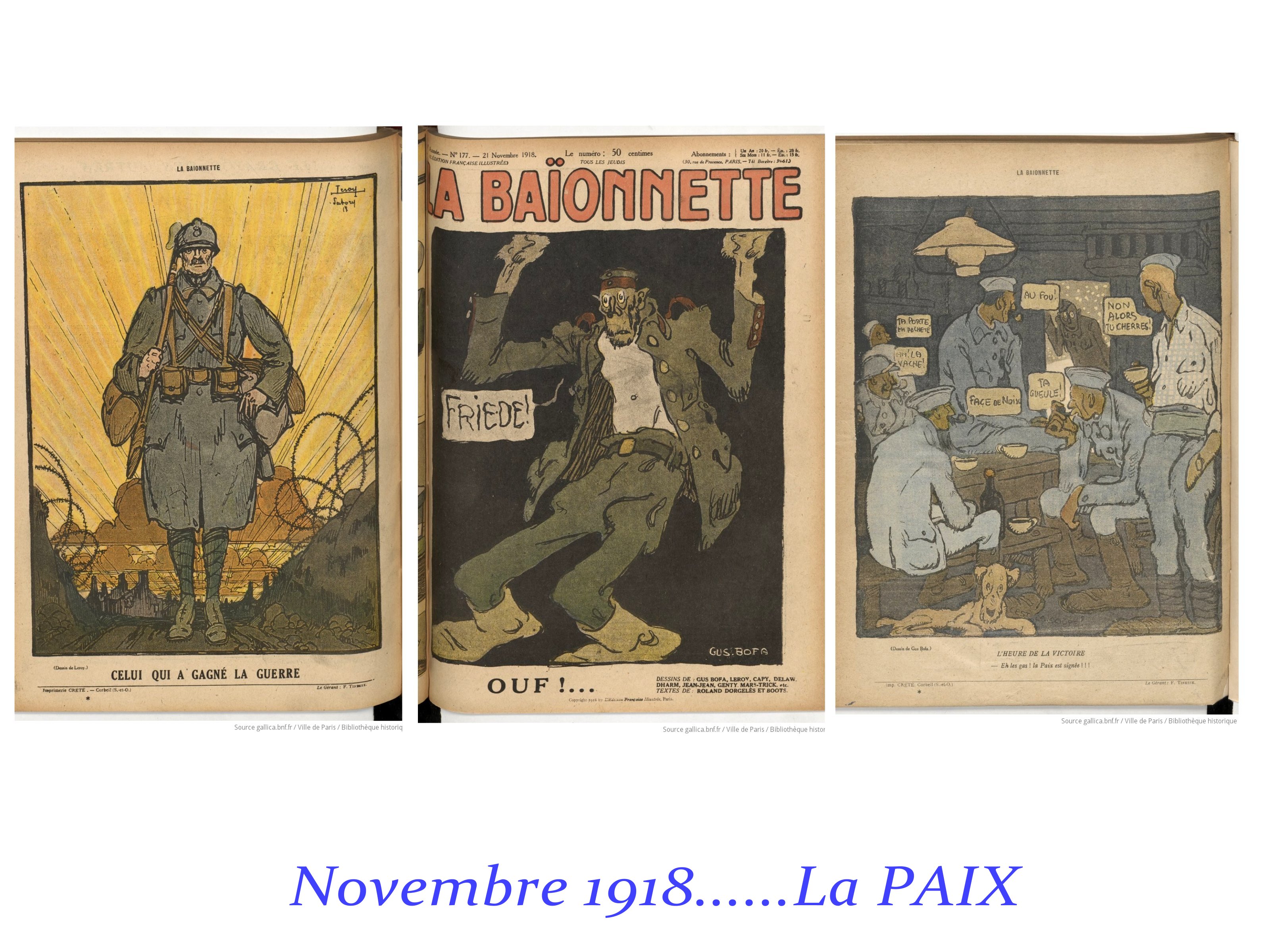 La richesse et la diversité incroyable d’une revue comme « La Baïonnette » est significative de la diversité des publics concernés. C’est pourquoi on y retrouve tus les styles, tous les sujets et ceci avec une grande qualité d’impression, de mise en page ; utilisation généreuse des couleurs, interactions avec les lecteurs et lectrices.