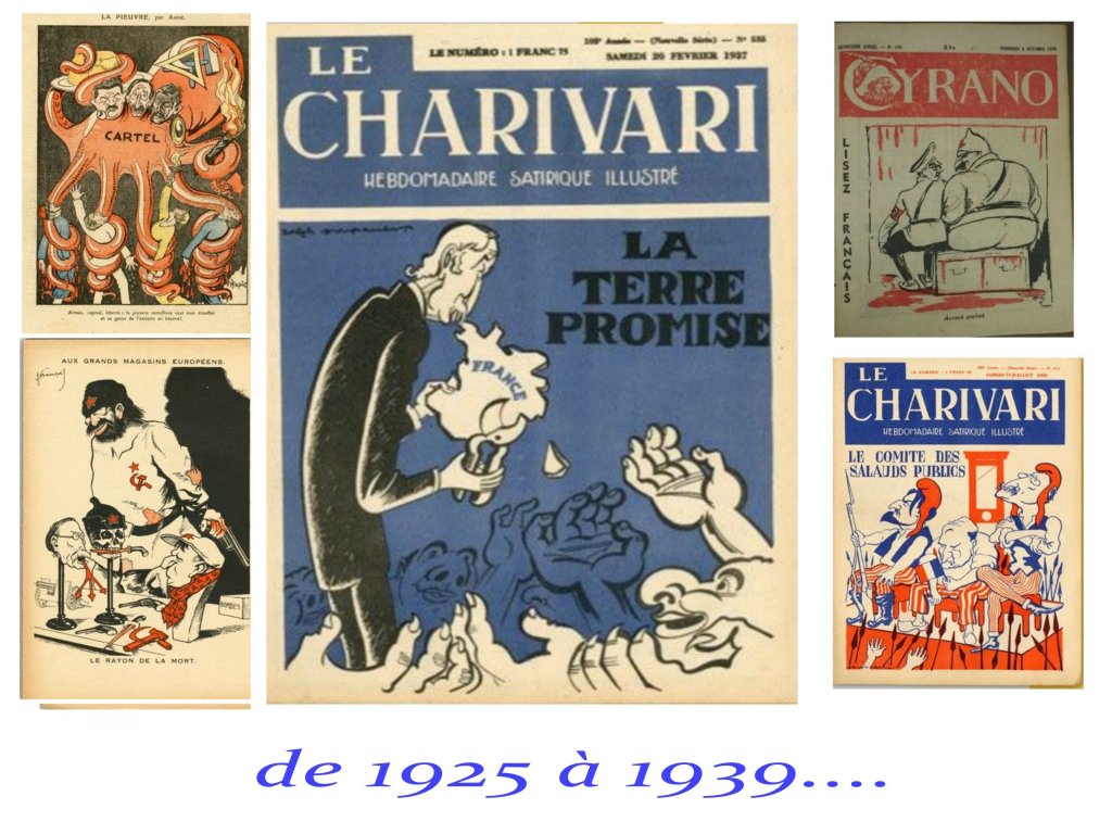 Peu de dessins dans l’entre 2 guerres, peu de réactivité face aux dangers fascistes, nazis ou staliniens ; sinon, parfois, là où on ne les attendait pas ( Fantasio). Evidemment le pire antisémitisme ressurgit, préparant le terrain à une collaboration enthousiaste de certains.