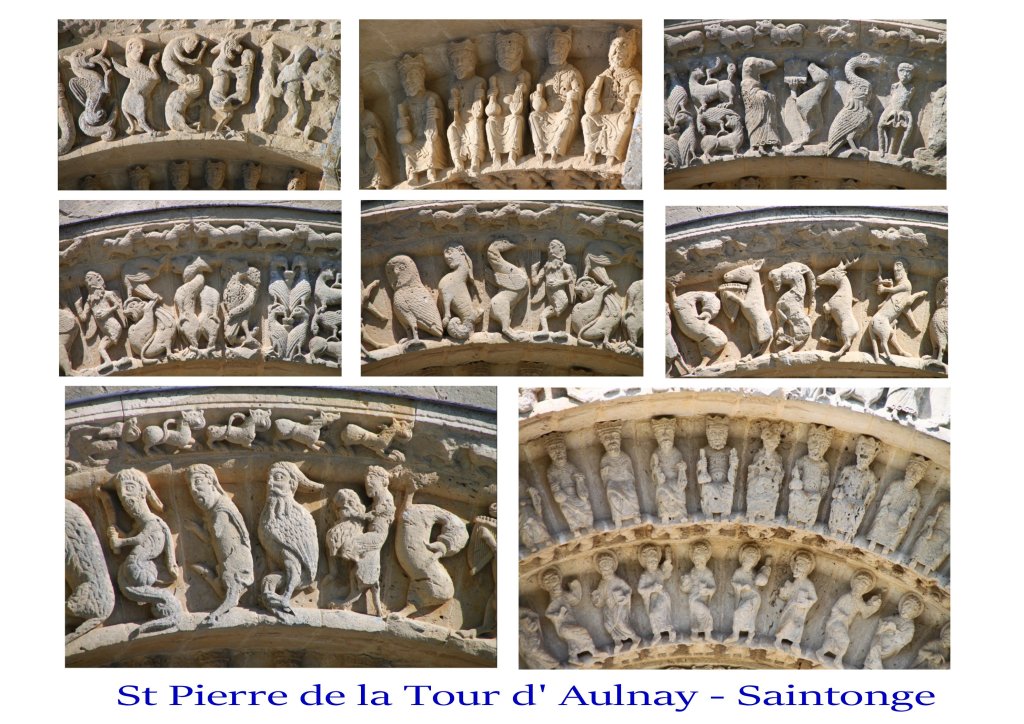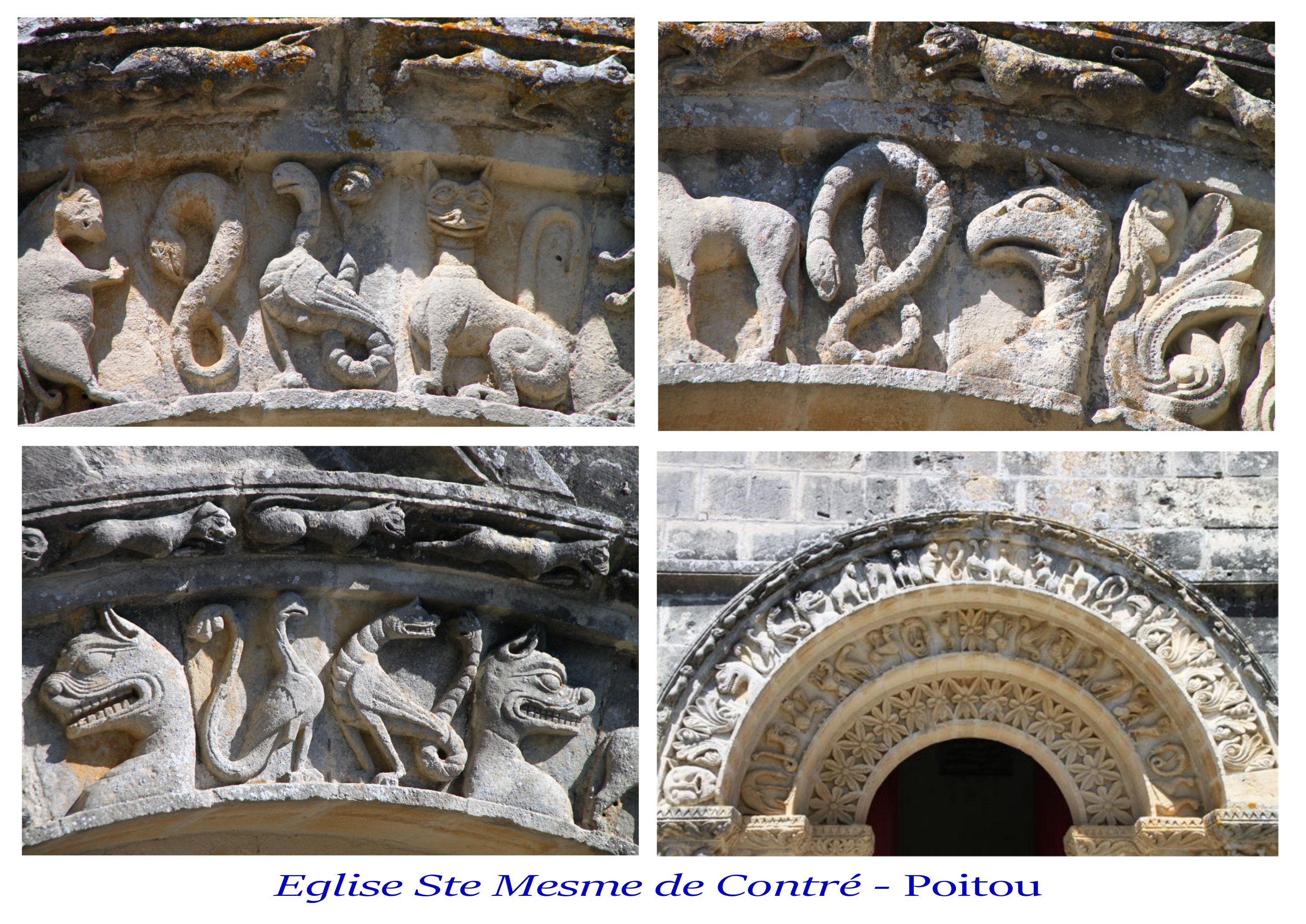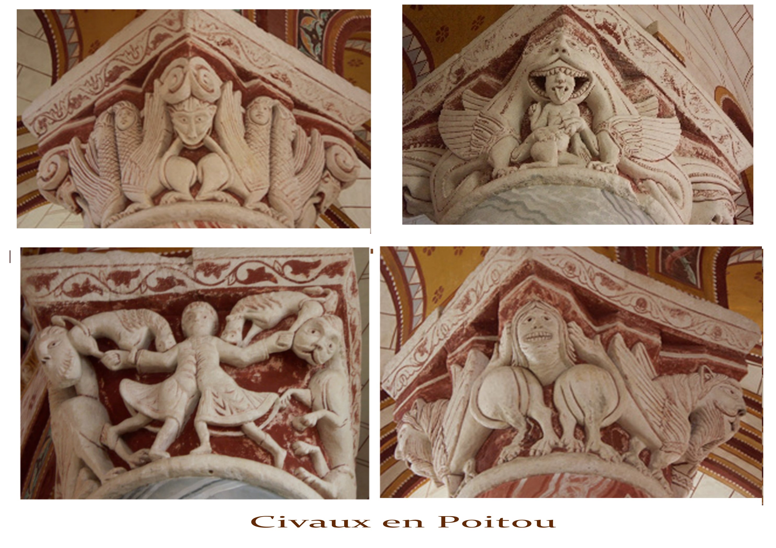 Ainsi, sont intégrés dans les églises, sur les tympans, sur les chapiteaux, à la fois les animaux du quotidien, mais encore, les monstres, chimères et figures fantastiques, héritées de mythes variés et anciens.