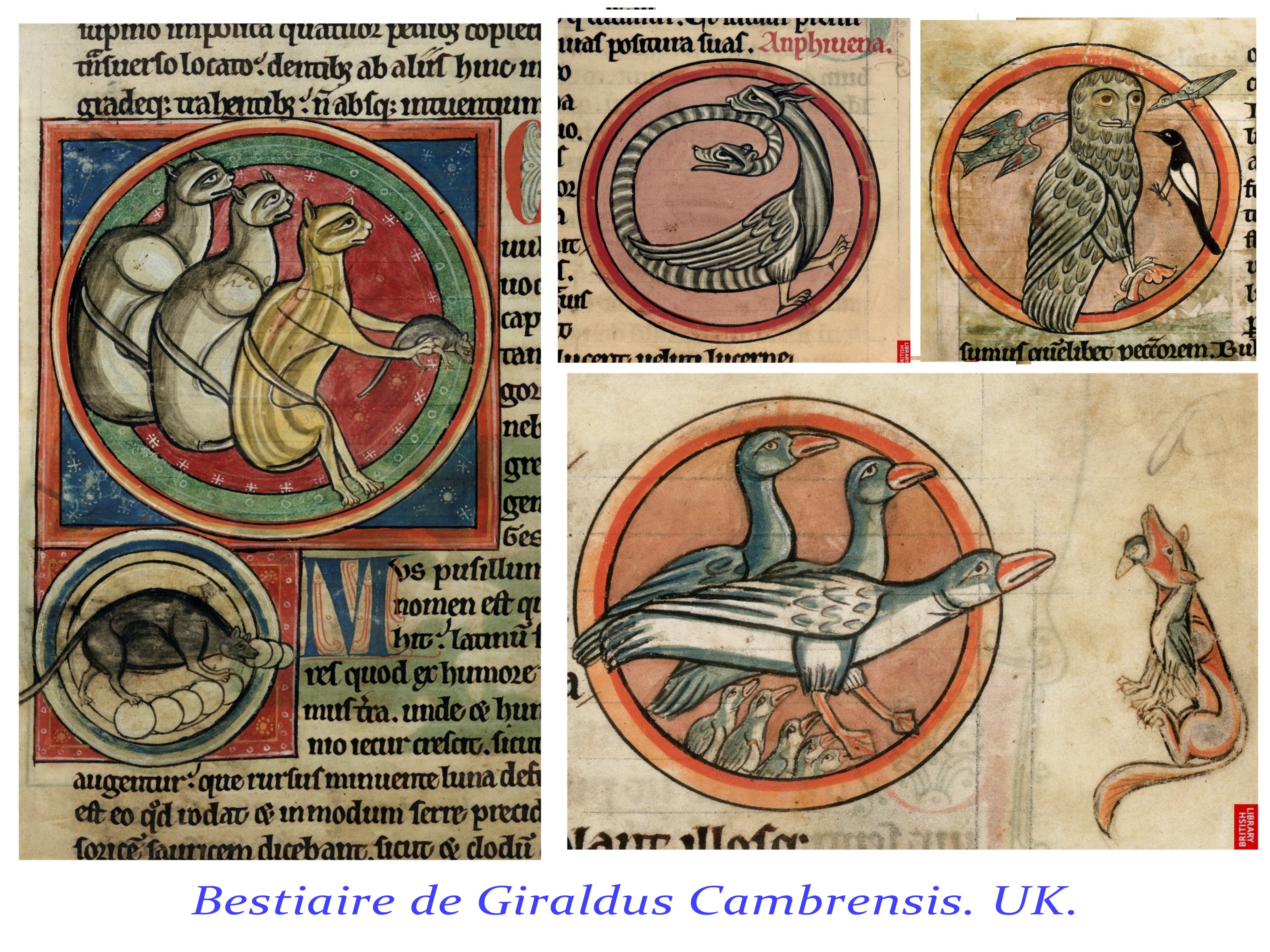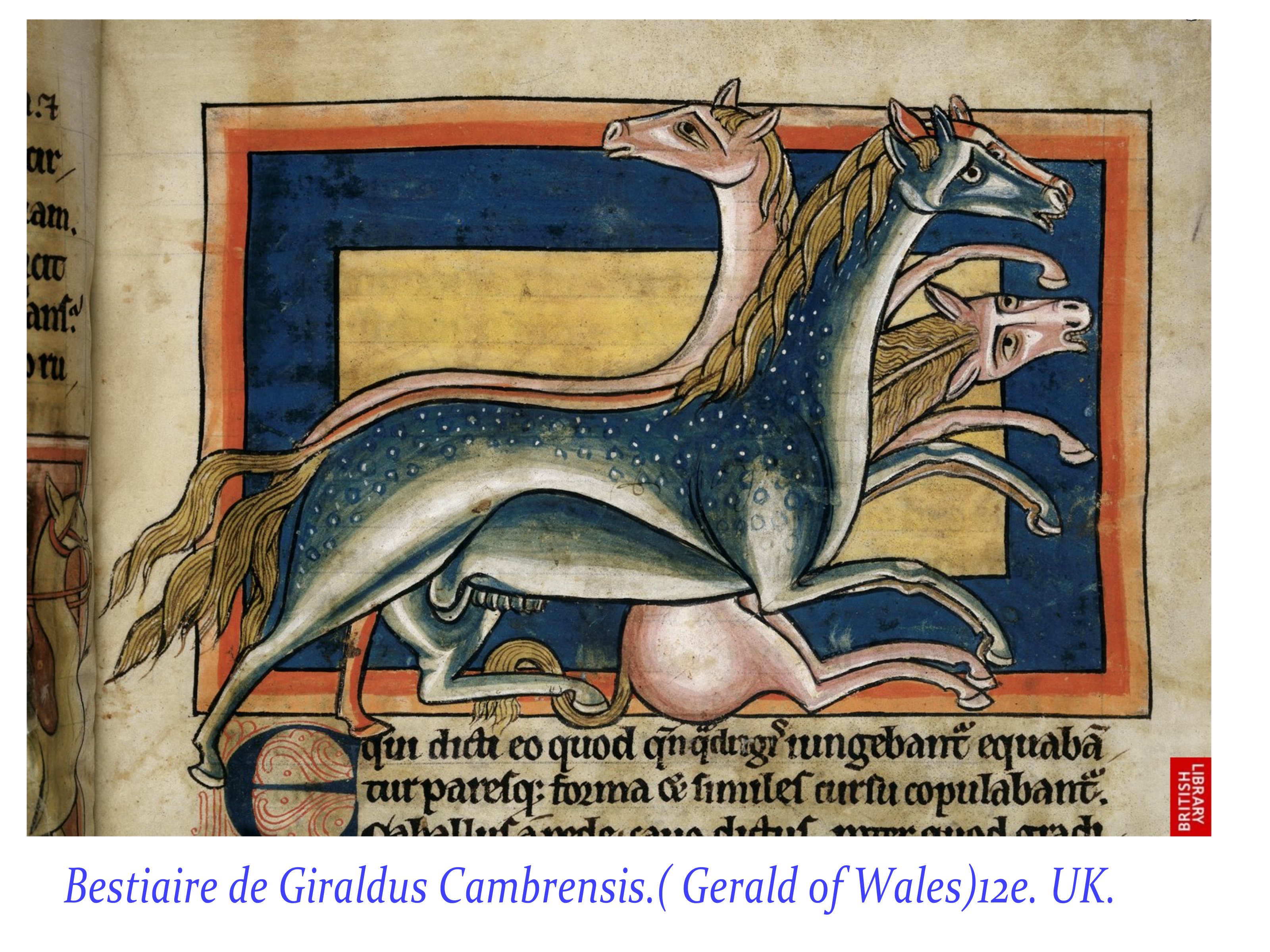 Le monde animal, reste partagé en plusieurs catégories ( voir l’article précédent), les animaux domestiqués et utiles, les animaux sauvages, puissants et fascinants, et les animaux chimériques, invisibles mais bien réels d’après les voyageurs ( Alexandre, Brendan, Marco Polo, Ulysse)( Hybrides, sirènes, sphynx, griffons, dragons, licornes, manticores etc) et les racontars…..