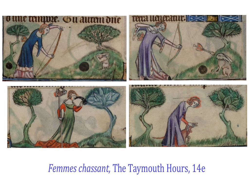 Au fur et à mesure que la société occidentale se stabilise, maîtrisant son espace, et harmonisant ses cultures et références, on s’approche de représentations plus naturalistes dans les derniers bestiaires. On trouve dans les traités de chasse ( y compris l’étonnant « traité » de femmes chasseresses – réminiscence d’ amazones?) un rapport plus prosaïque et technique. Dimension que l’on retrouve aussi dans le tacuinum sanitatisLe Tacuinum Sanitatis d’ après Ibn Butlan.