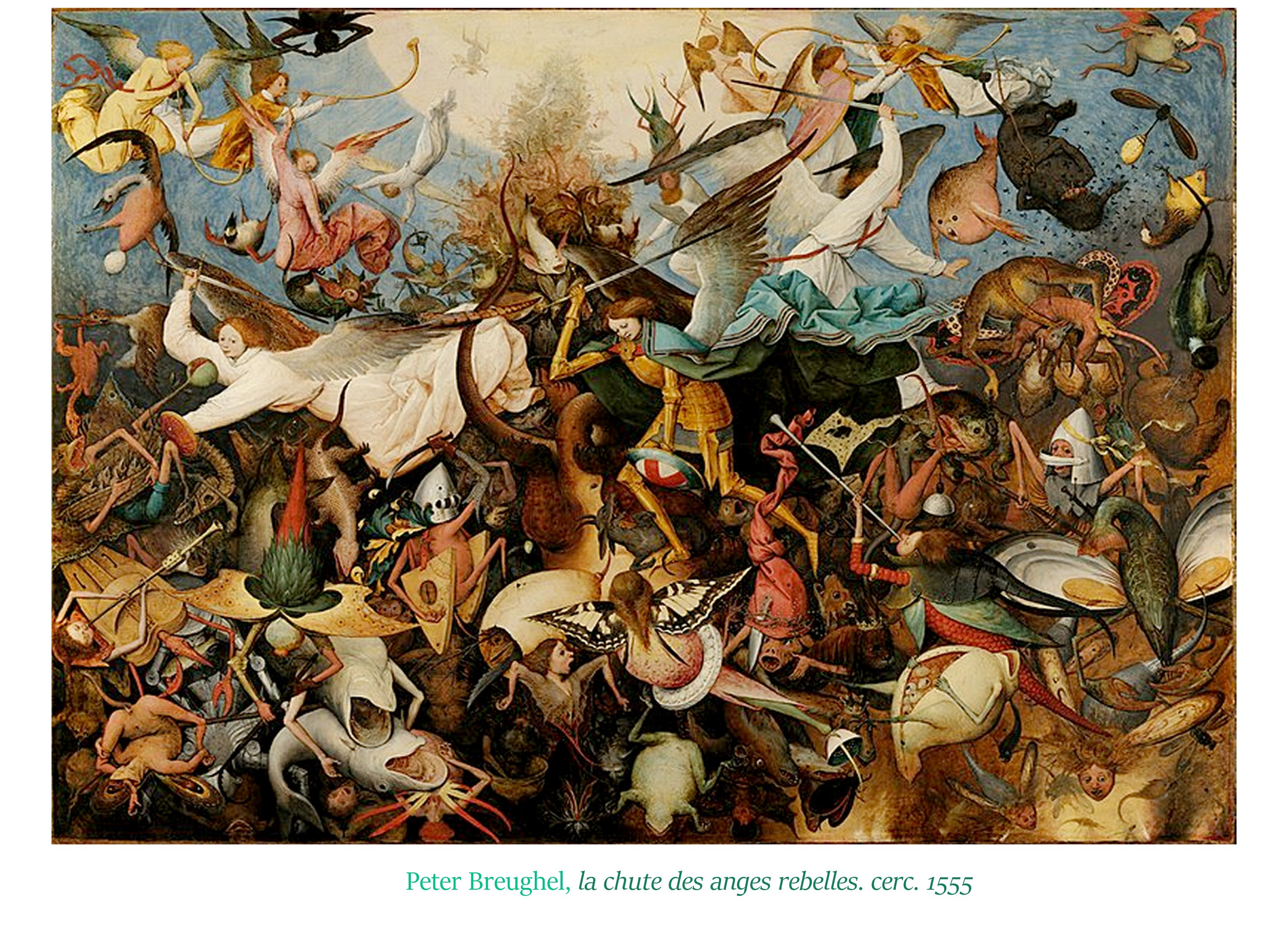 Les arts dits « médiévaux » sont les dernières pratiques artistiques populaires, accessibles à toutes les catégories sociales, du moins dans les édifices, les manuscrits étant très chers et réservés aux « élites ». Ainsi, à la renaissance, certains comme Carpaccio, représentent des animaux selon des allégories et figures érudites, souvent cryptées et difficiles à interpréter. Restent des artistes flamands, comme BoschJérôme BOSCH, puis BreughelBabel-BREUGHEL, qui d’une certaine manière, perpétuent les traditions populaires des animalités diverses, signifiant la diversité d’un monde créé et foisonnant, dans lequel, le bien et le mal, le monstrueux , le fantastique, et le positif cohabitent depuis l’origine de la création ; il reste aux humains la responsabilité et le libre arbitre pour tranche, choisir, vivre dans ce monde.