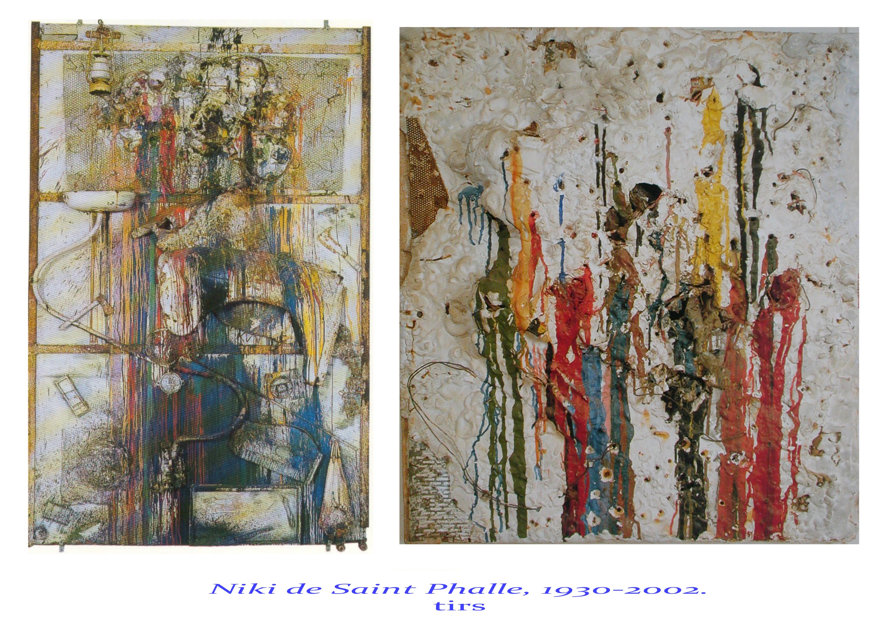 On peut se référer aux articles sur Niki de St PhalleNiki de St PHALLE, tirs. et Yves KleinYves KLEIN, piéger le vide et les réalités nouvelles ainsi qu’à celui dur RauschenbergRobert RAUSCHENBERG, combine paintings etc..