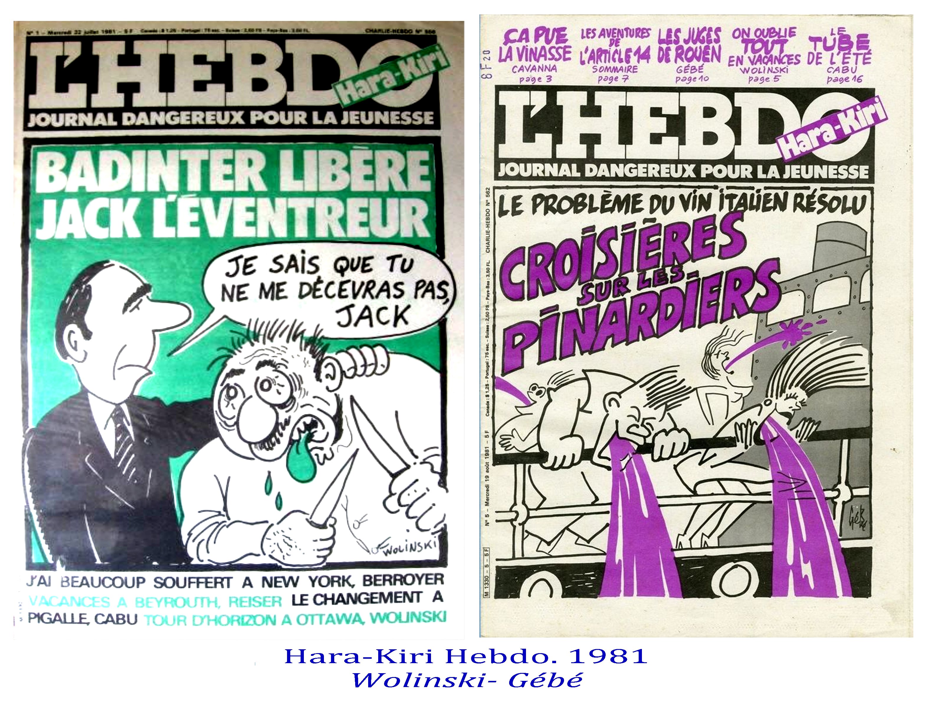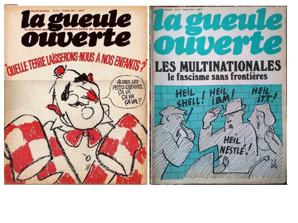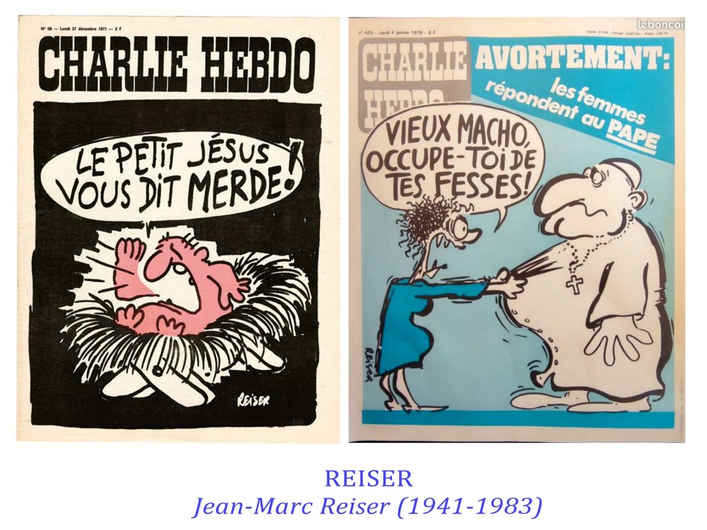 Fred, Wolinski, Gébé, Cabu, Reiser, Siné, Bretecher, Charb, Tignous, Honoré, Willem, Riss, Vuillemin, Luz, Coco, Meurisse, Sattouf, ont construit un univers mental et artistique unique combinant un humanisme désespéré ( le rire étant la politesse du désespoir) et une très grande sensibilité aux travers de notre monde.