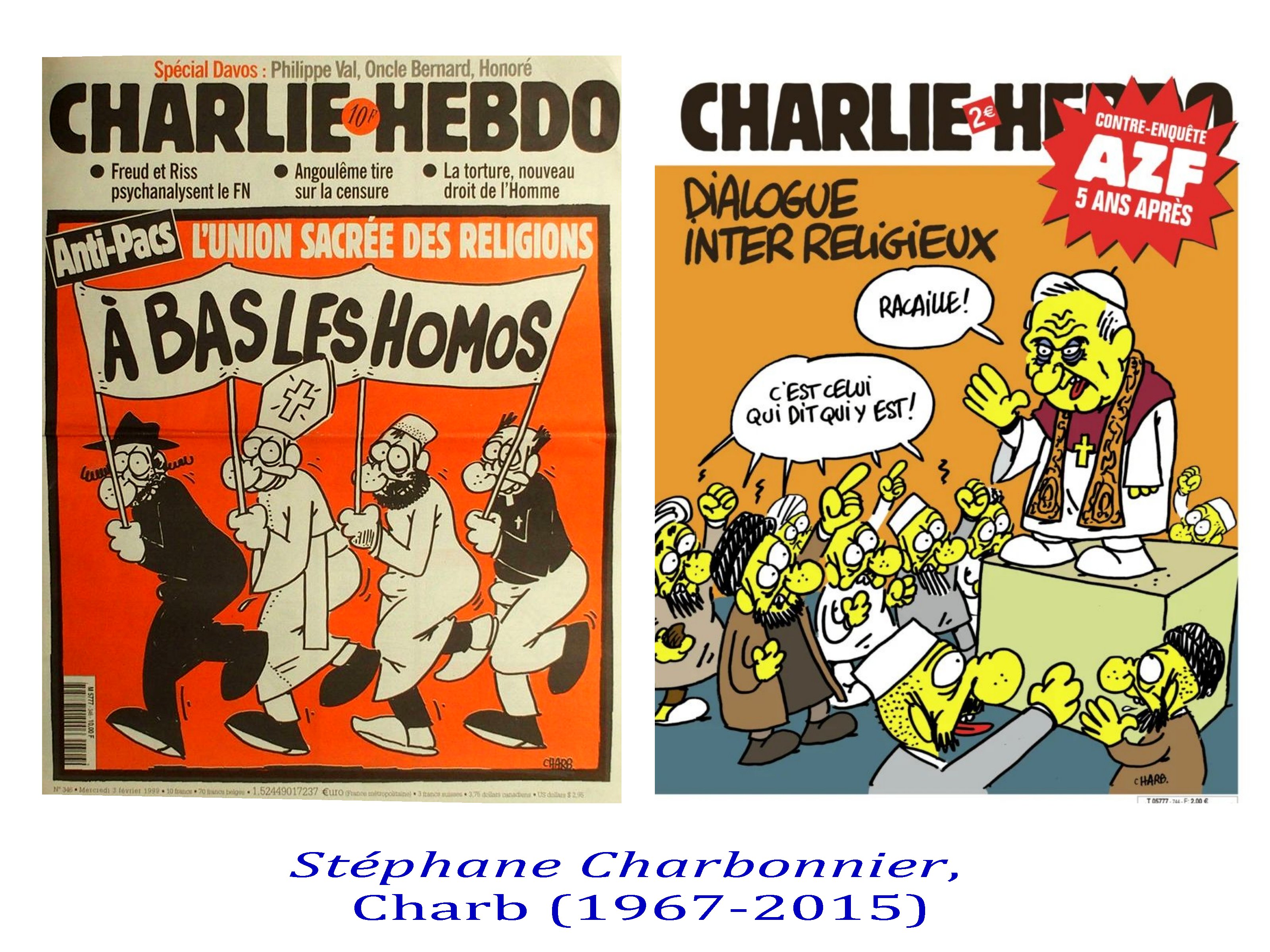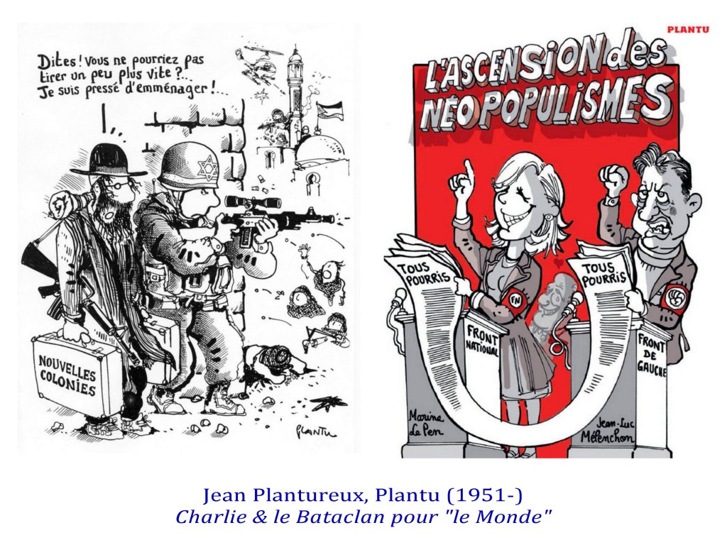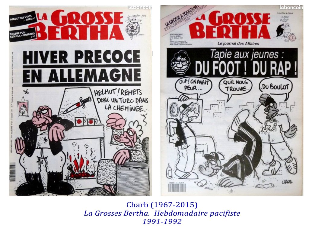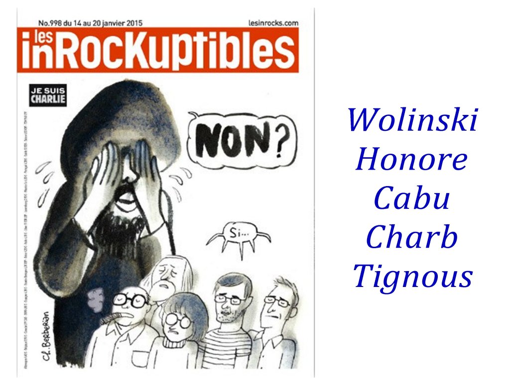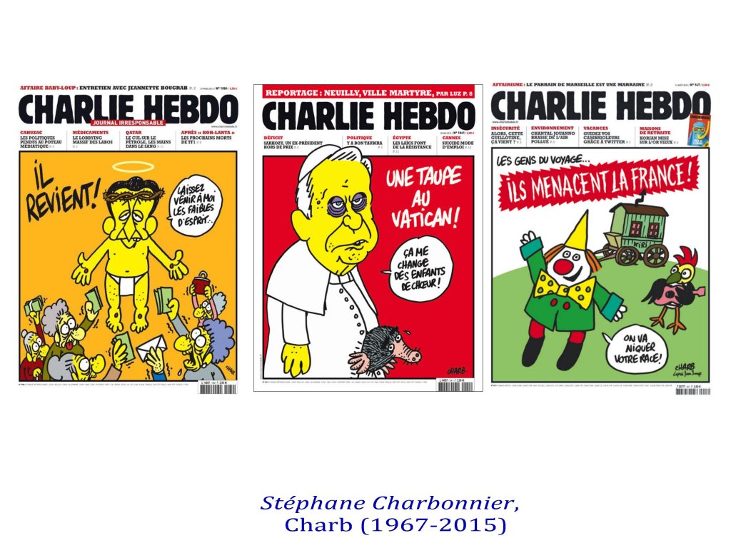 Ces caricaturistes-journalistes-chroniqueurs étaient capables d’exiger une lecture fine de leur dessins, exigeant une capacité de subtilité autour de valeurs communes, afin de ne jamais prendre leurs apparentes provocations au pied de la lettre. Les meilleurs exemples, étaient déjà deux de Gébé sur l’antisémitisme, et furent aussi ceux de Cabu, Tignous, Charb sur l’ Islam avec le fameux » c’est dur d’être aimé par des cons » de Cabu. Le présupposé de cette virulence étant que nous sommes capables de « faire société ».